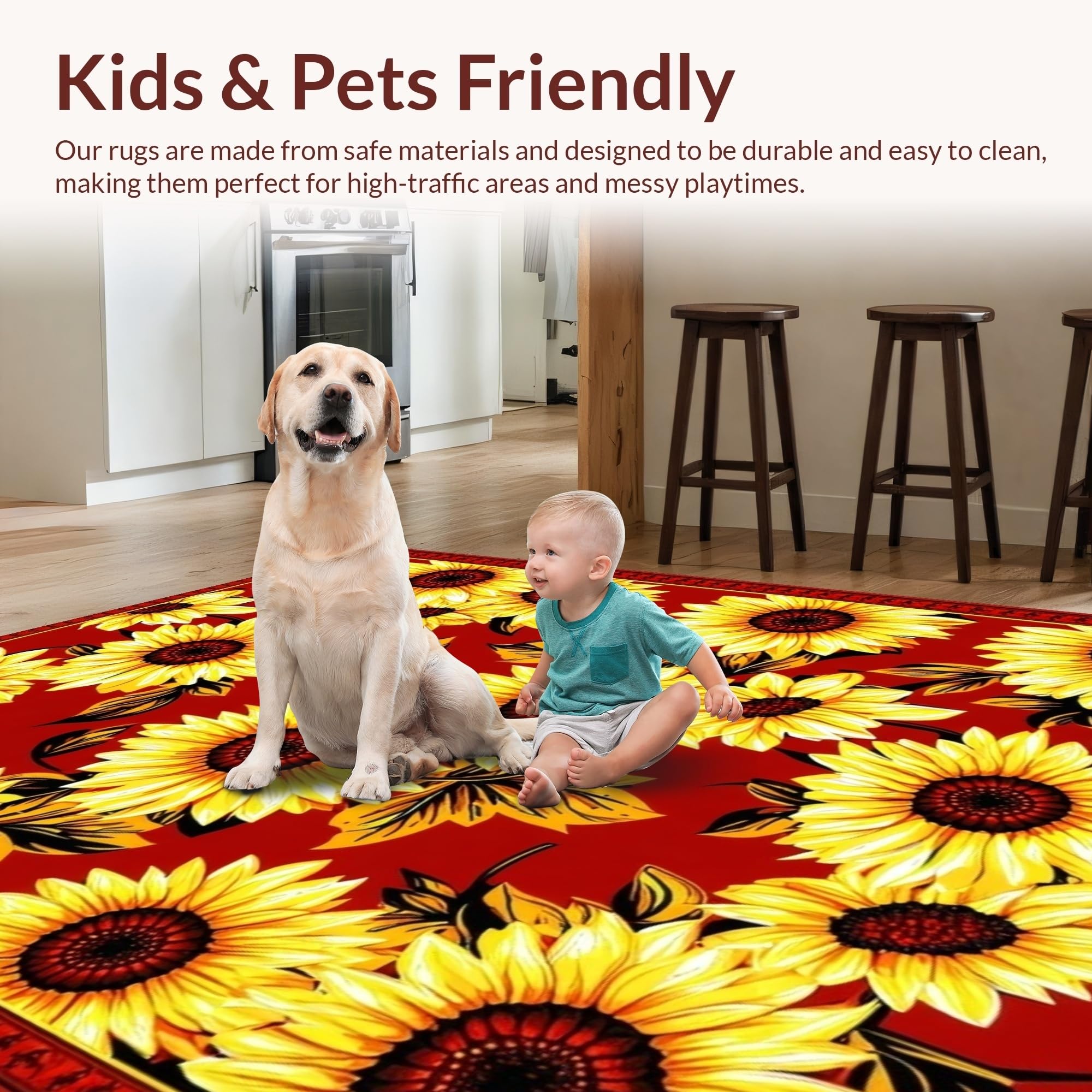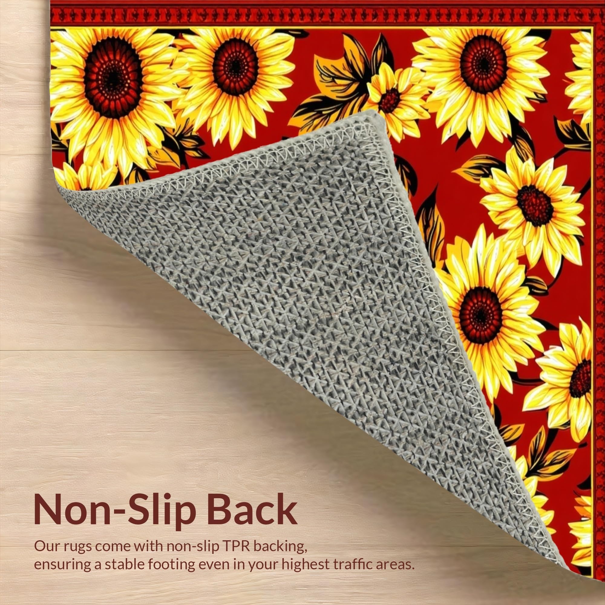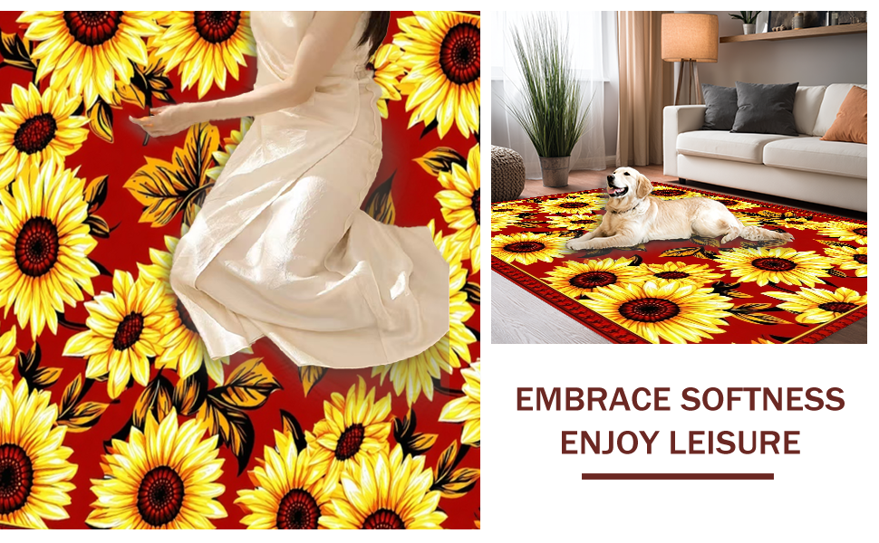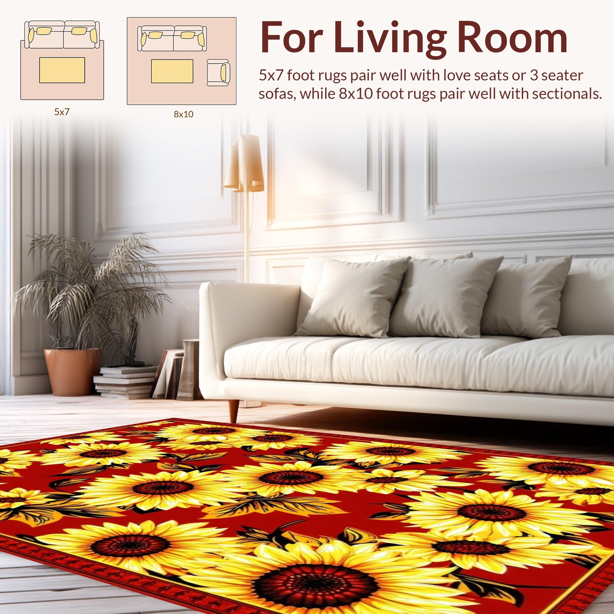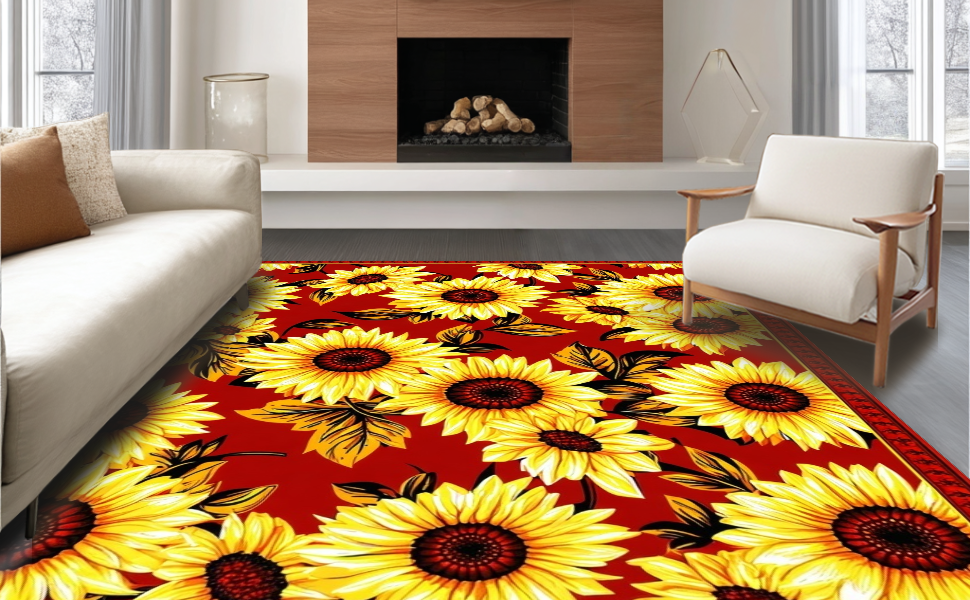 Ultra Soft Area Rug, Non Slip, Stain Resistant, Washable Area Rugs for Living Room, Bedroom, Contemporary Floral Whimsy Touch(Red) Overview: