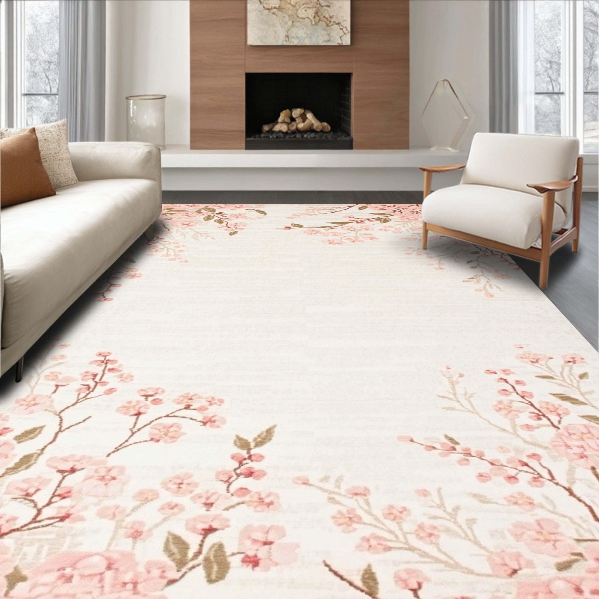 Flatwoven High Traffic Area Rug, Contemporary Floral with, Non Slip, Stain Resistant, Washable Area Rugs for Living Room, Bedroom (Pink) Overview: