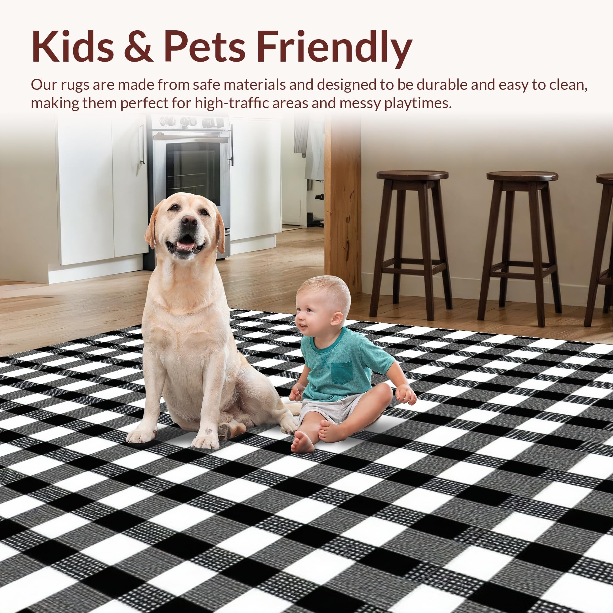 Ultra Soft Area Rug, Non Slip, Stain Resistant, Washable Area Rugs for Living Room, Bedroom, Contemporary Fluffy Tiled Design(Black) Overview: