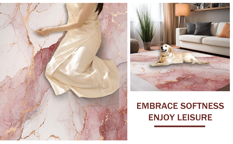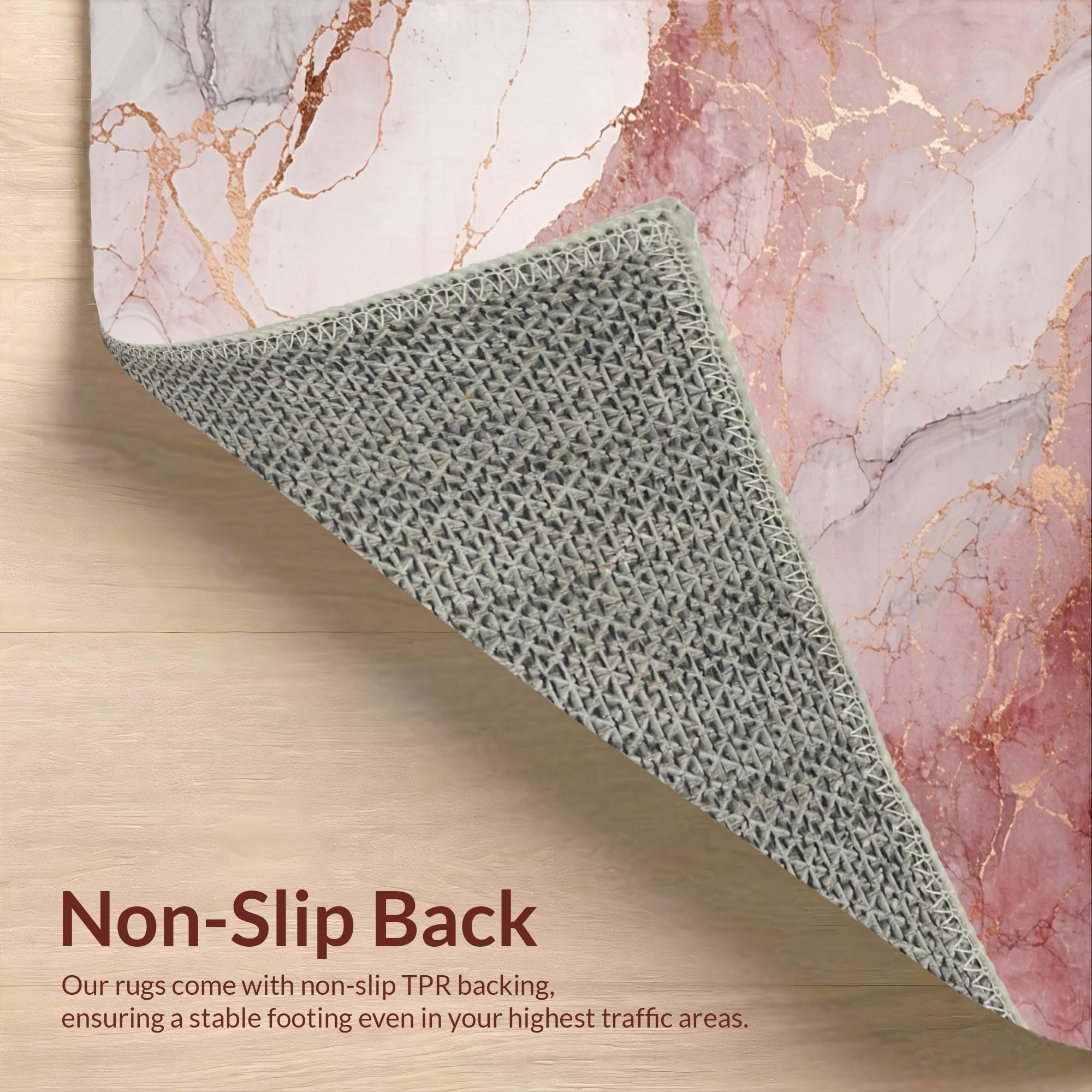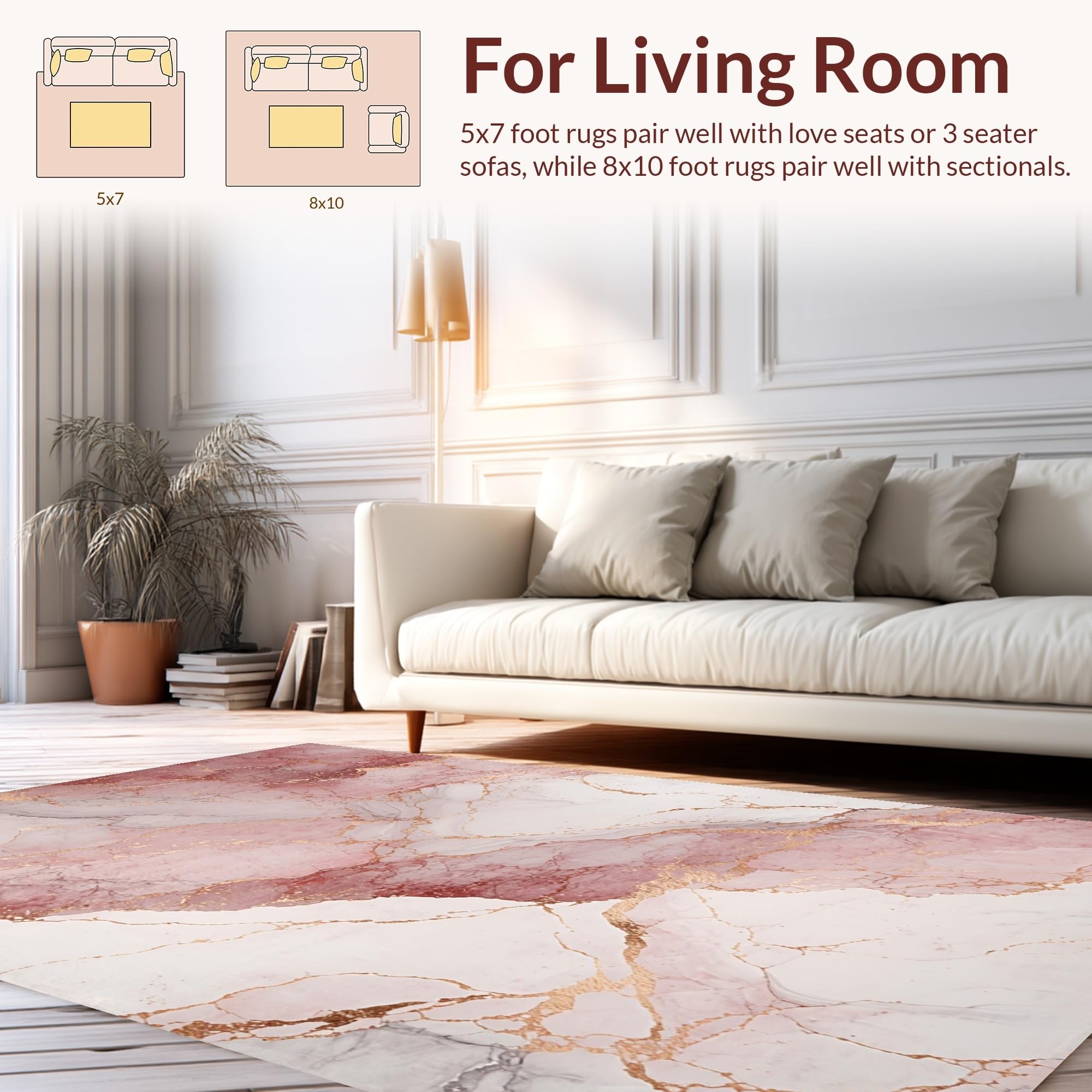 Ultra Soft Area Rug, Non Slip, Stain Resistant, Washable Area Rugs for Living Room, Bedroom, Contemporary Fluid Design with Gold(Pink) Overview: