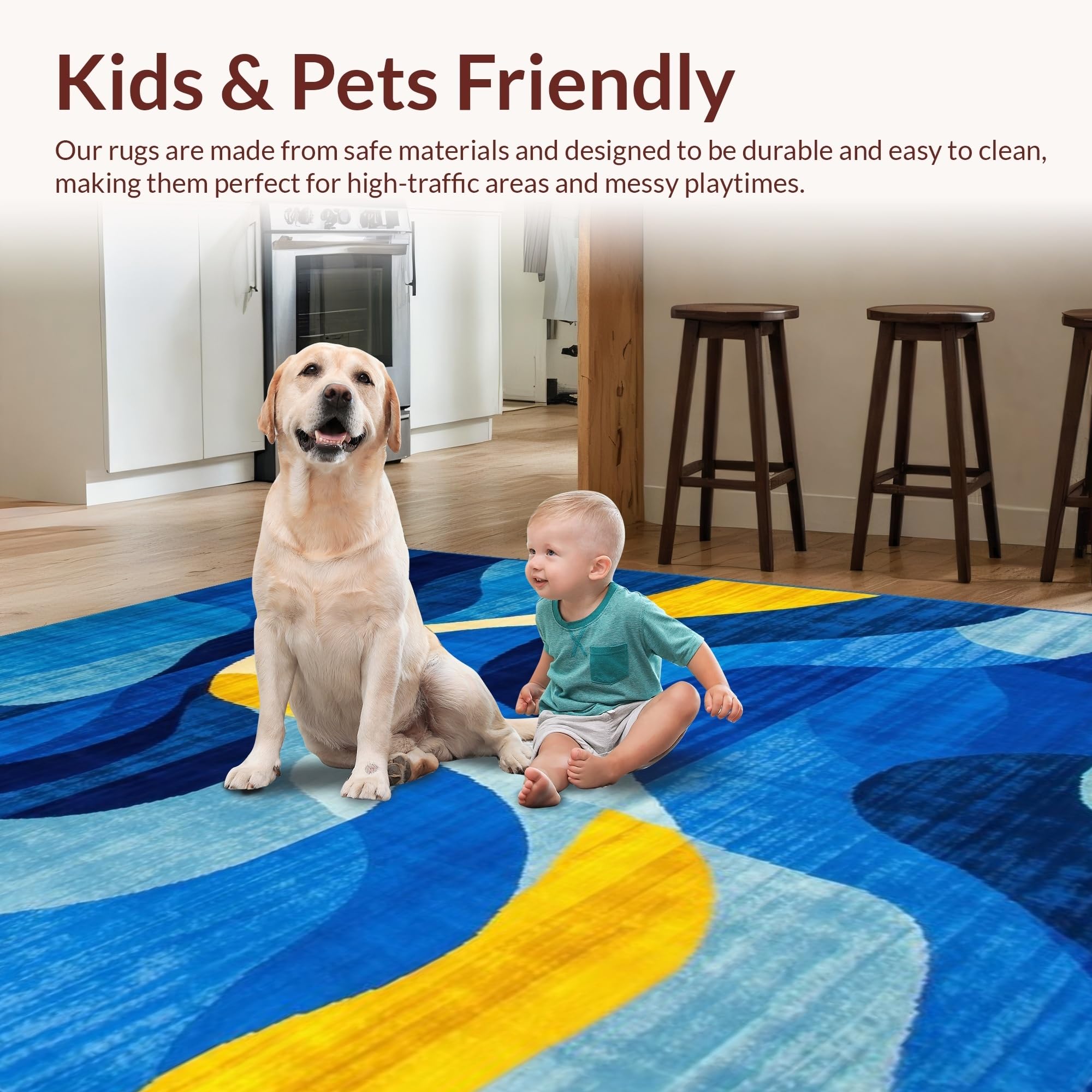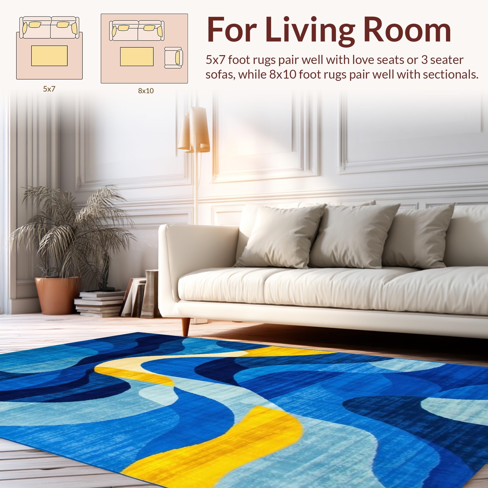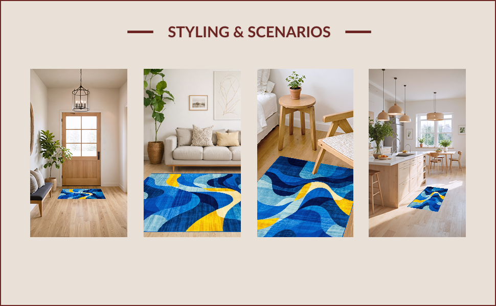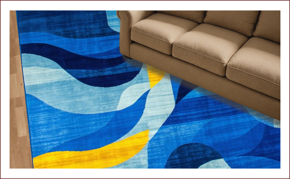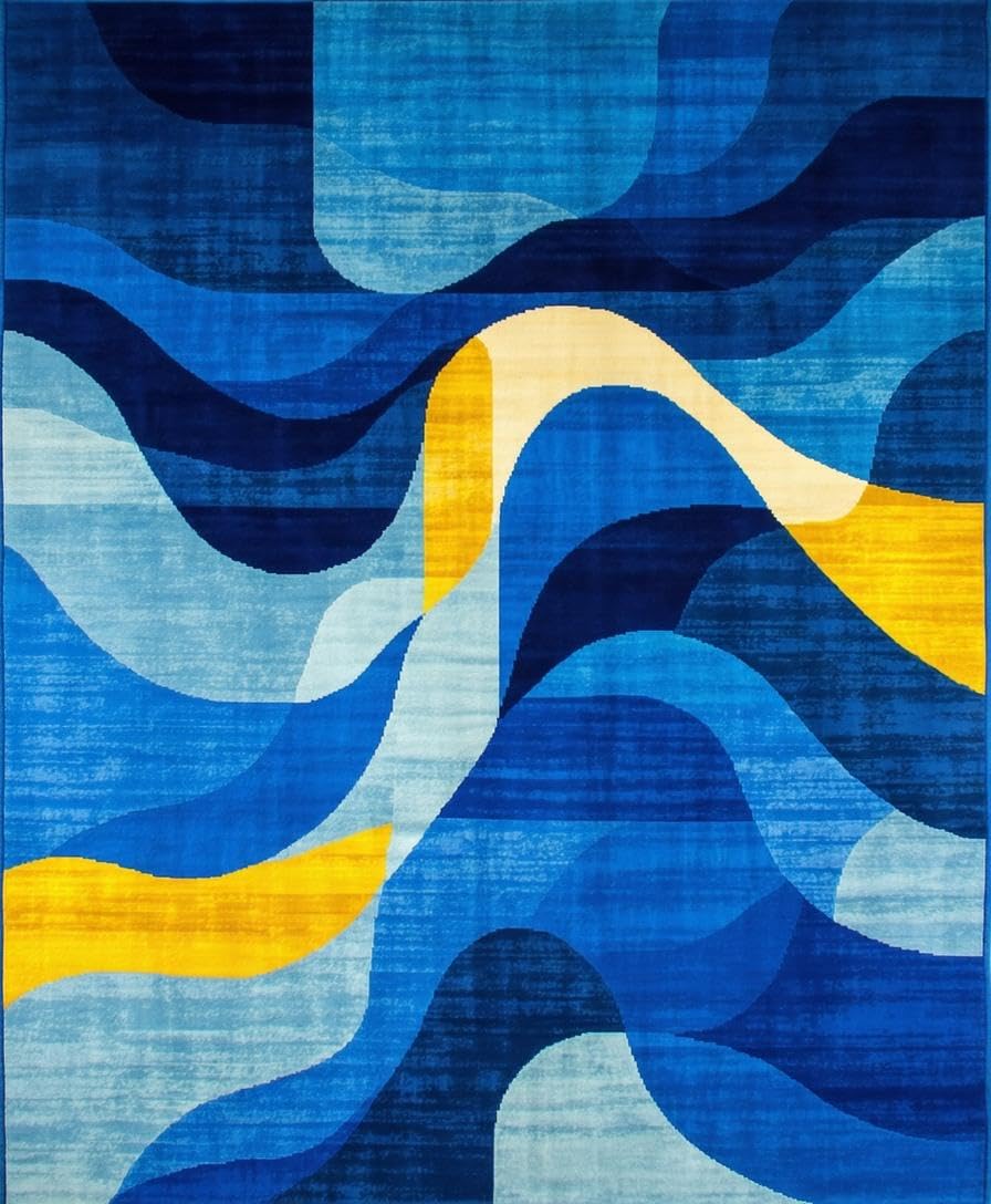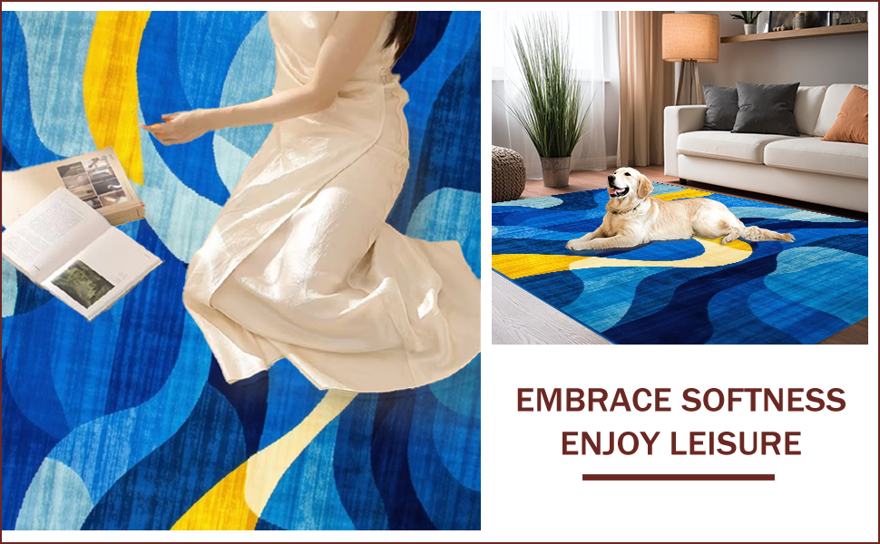 Ultra Soft Area Rug, Non Slip, Stain Resistant, Washable Area Rugs for Living Room, Bedroom, Contemporary Geometric Fusion Aesthetic(Blue) Overview: