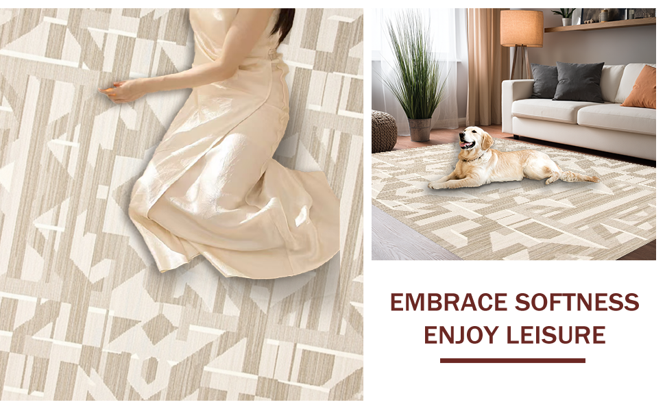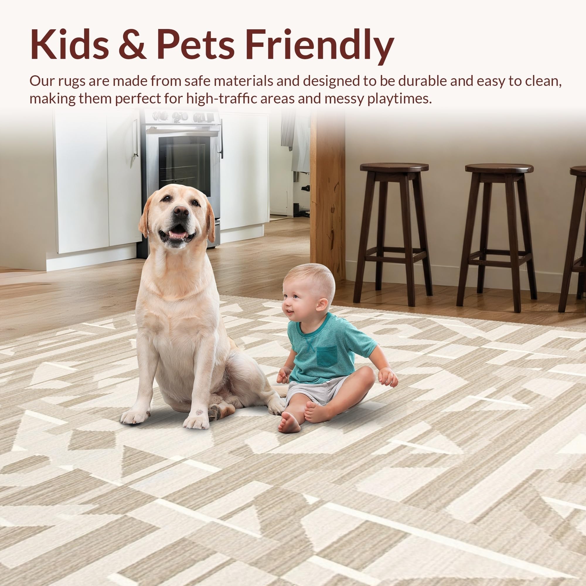 Ultra Soft Area Rug, Non Slip, Stain Resistant, Washable Area Rugs for Living Room, Bedroom, Contemporary Geometric Khaki Aesthetic(Beige) Overview:
