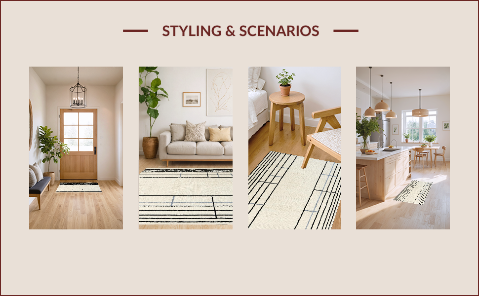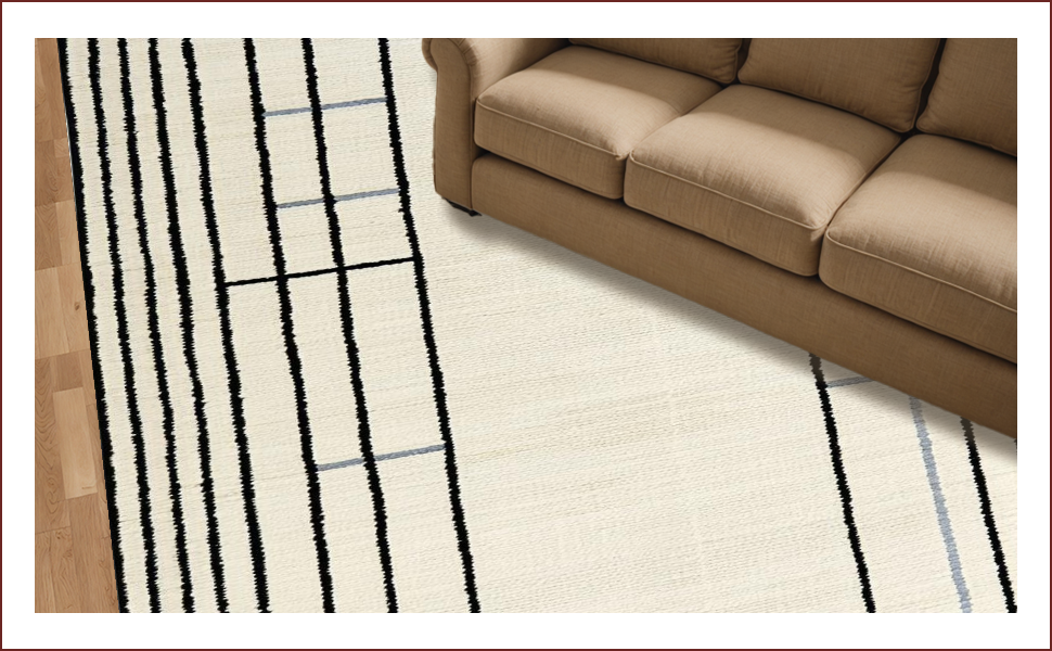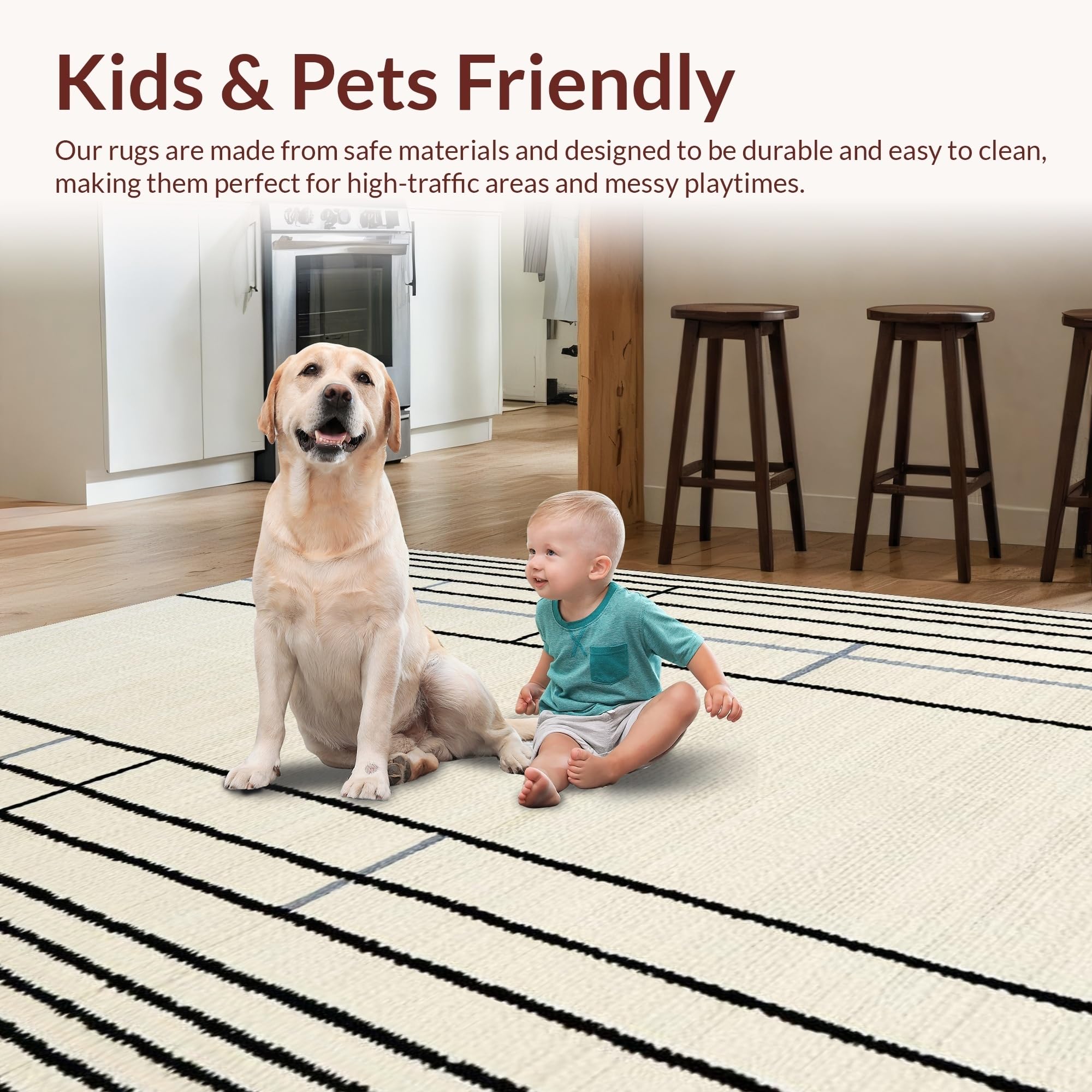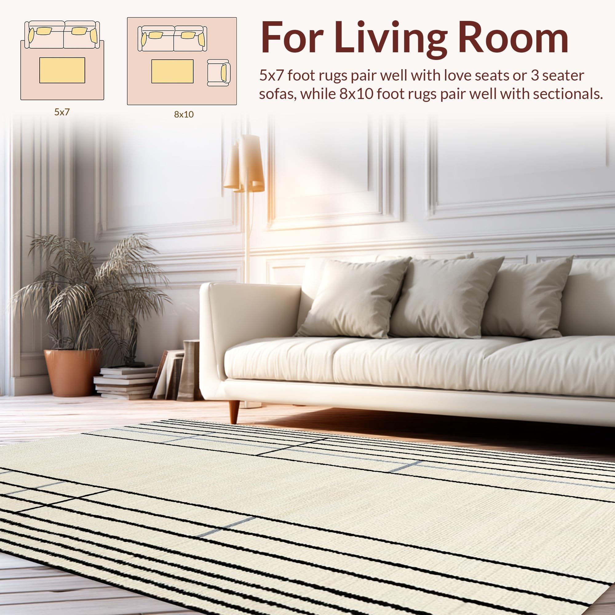 Ultra Soft Area Rug, Non Slip, Stain Resistant, Washable Area Rugs for Living Room, Bedroom, Contemporary Geometric Stripe Elegance(Beige) Overview: