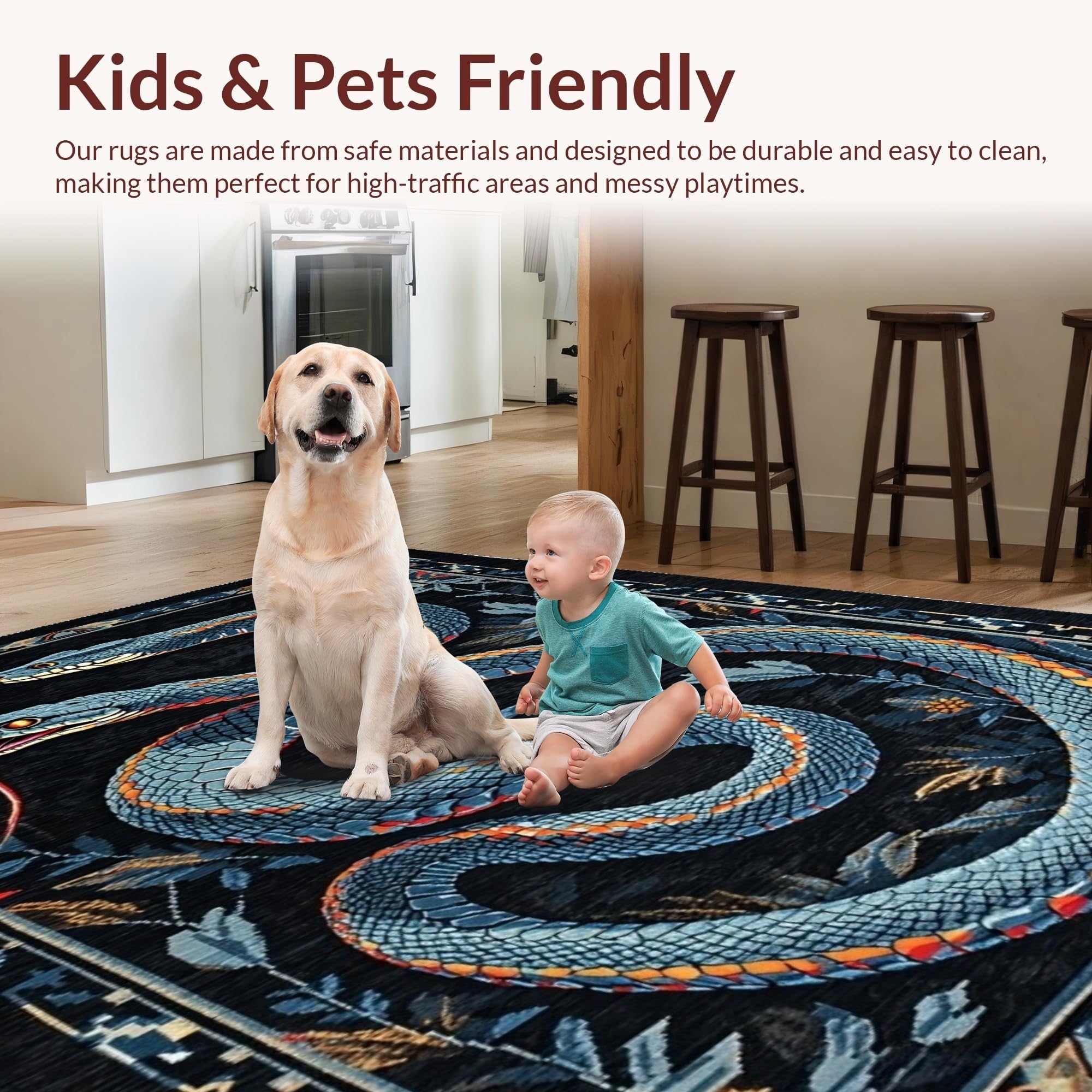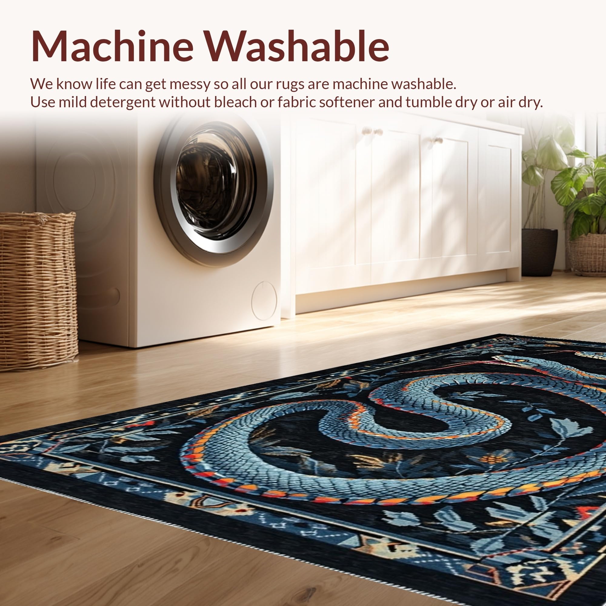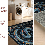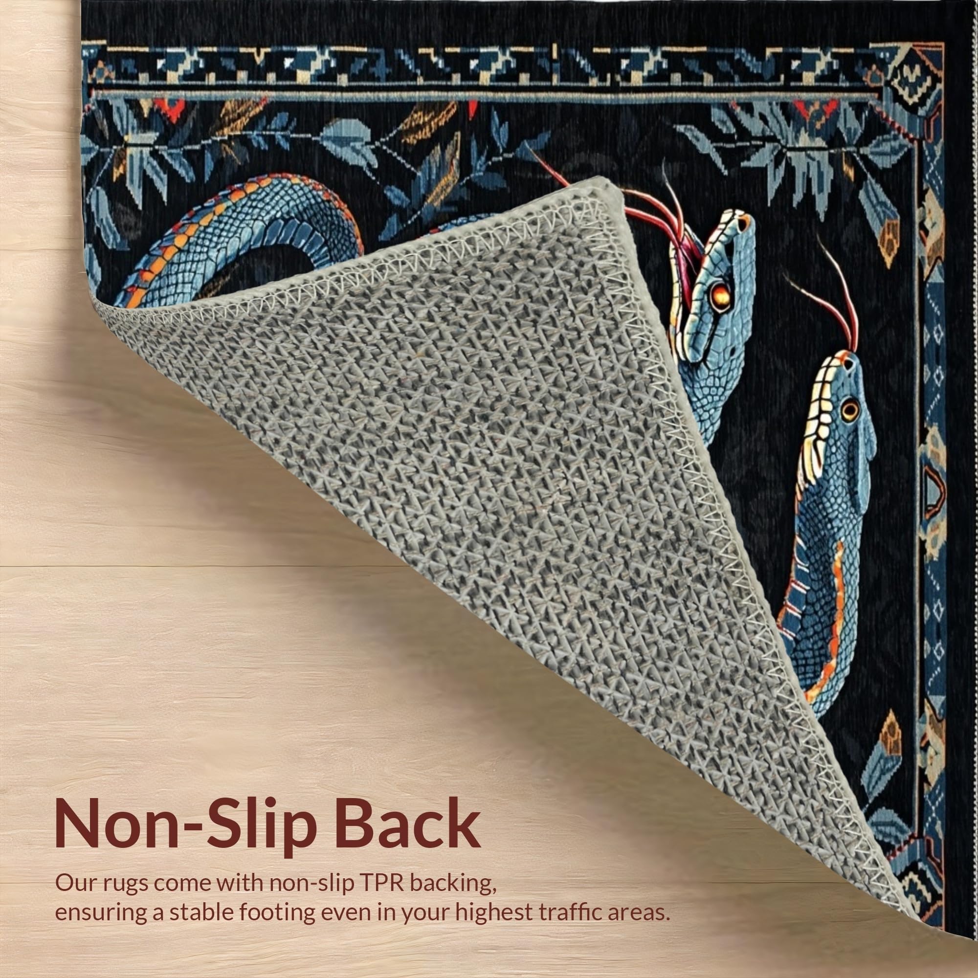 Ultra Soft Area Rug, Non Slip, Stain Resistant, Washable Area Rugs for Living Room, Bedroom, Contemporary Gothic Serpent Art(Blue) Overview: