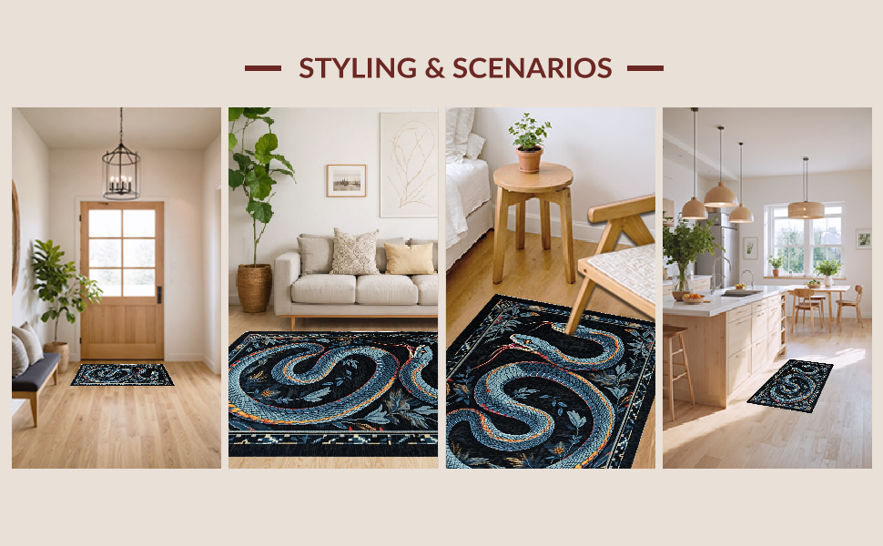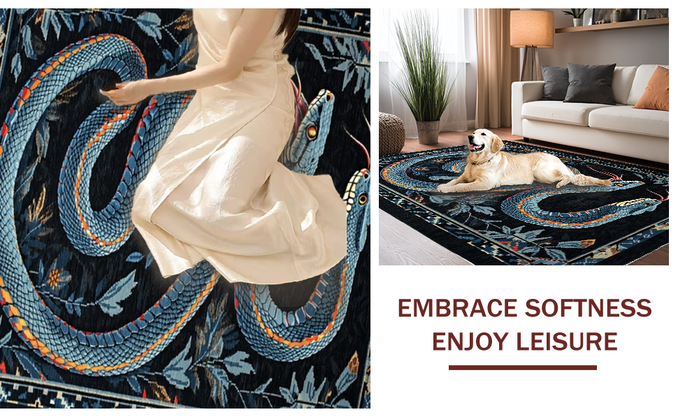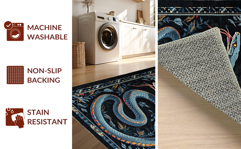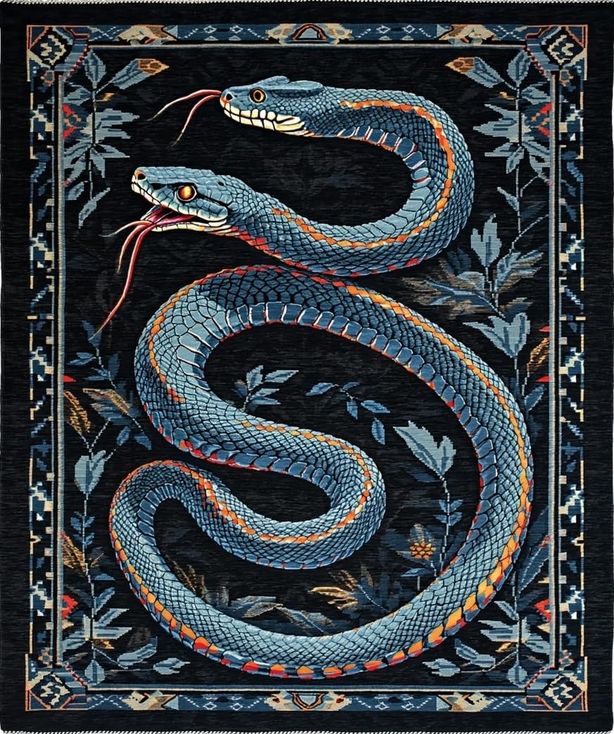 Ultra Soft Area Rug, Non Slip, Stain Resistant, Washable Area Rugs for Living Room, Bedroom, Contemporary Gothic Serpent Art(Blue) Overview: