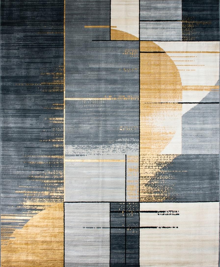Ultra Soft Area Rug, Non Slip, Stain Resistant, Washable Area Rugs for Living Room, Bedroom, Contemporary Grey Tiled Composition(Gray) Overview: