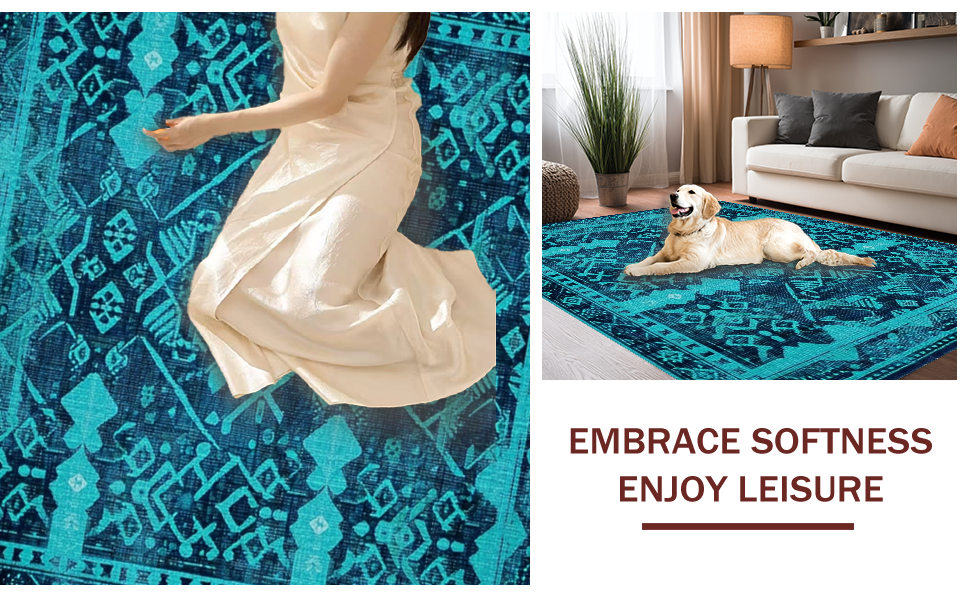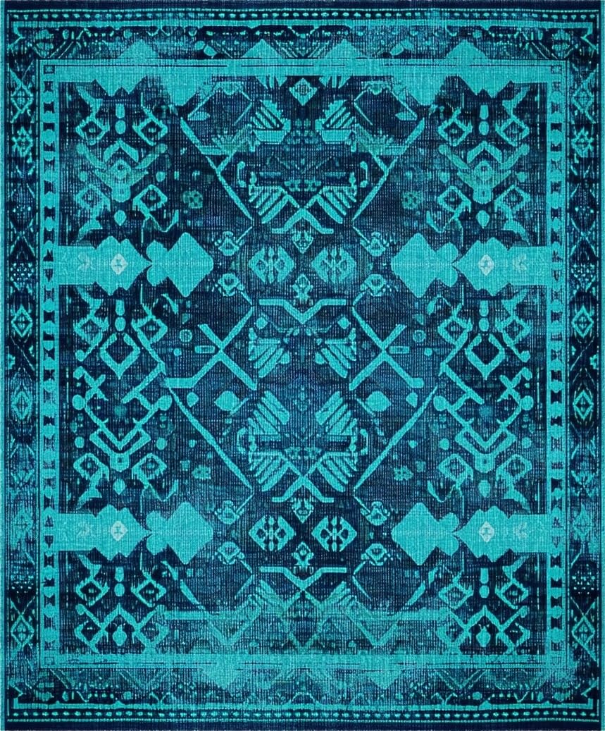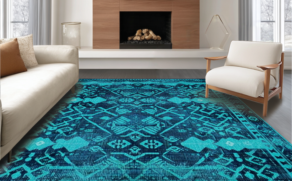 Ultra Soft Area Rug, Non Slip, Stain Resistant, Washable Area Rugs for Living Room, Bedroom, Contemporary Lattice Patterned Style(Blue) Overview: