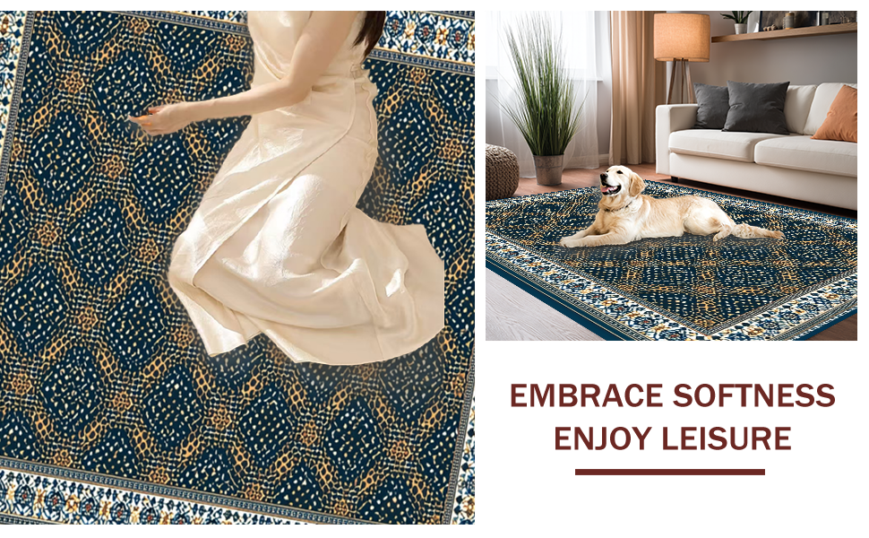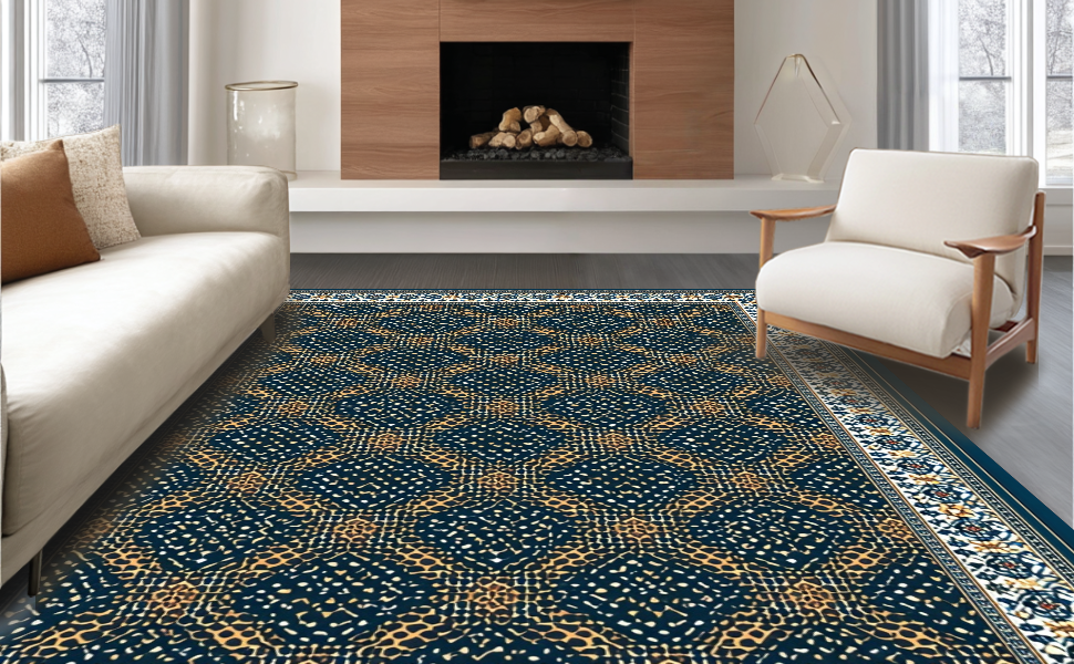 Ultra Soft Area Rug, Non Slip, Stain Resistant, Washable Area Rugs for Living Room, Bedroom, Contemporary Lattice Print with Depth(Blue) Overview: