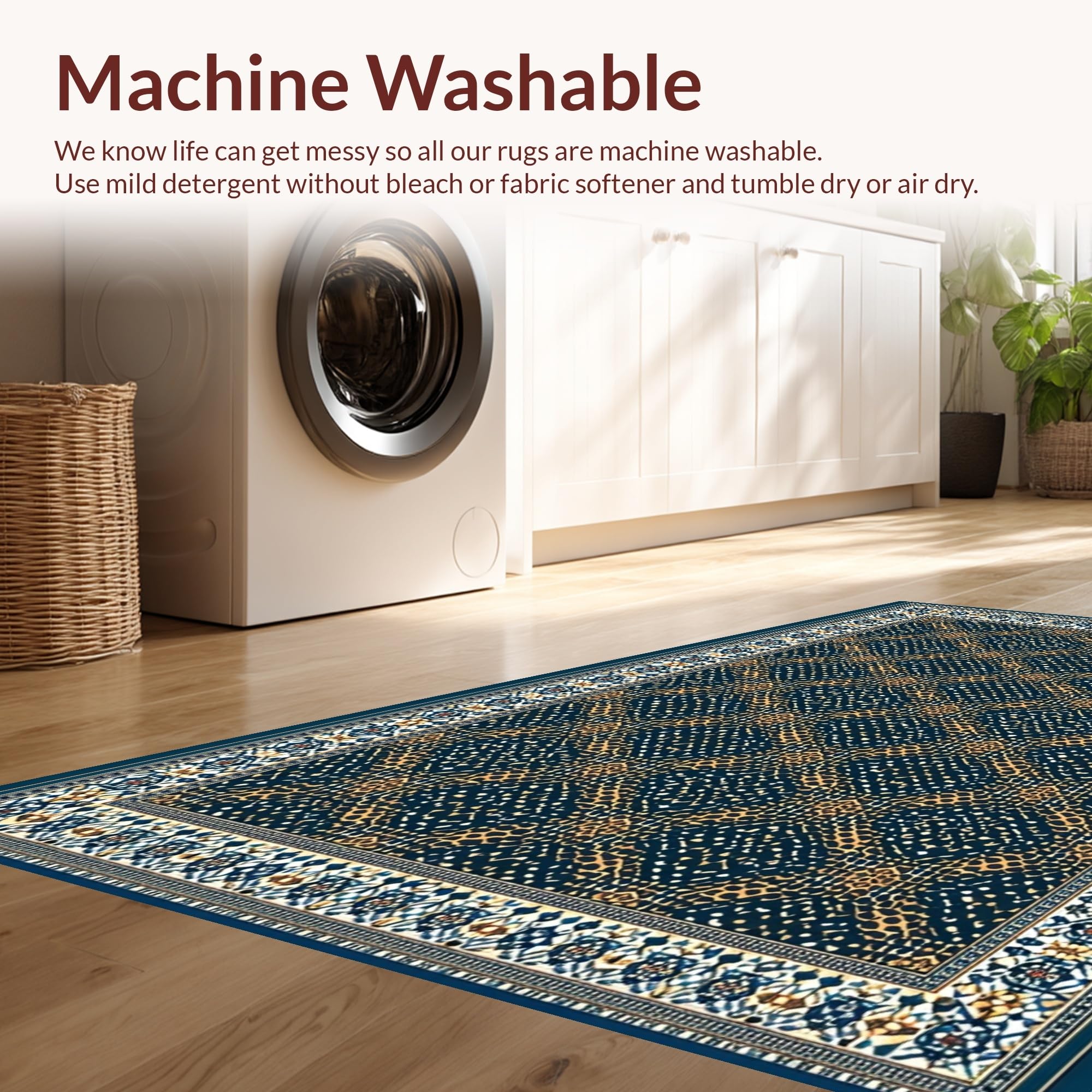 - Machine Washable: Our rugs can be easily thrown in the wash machine.