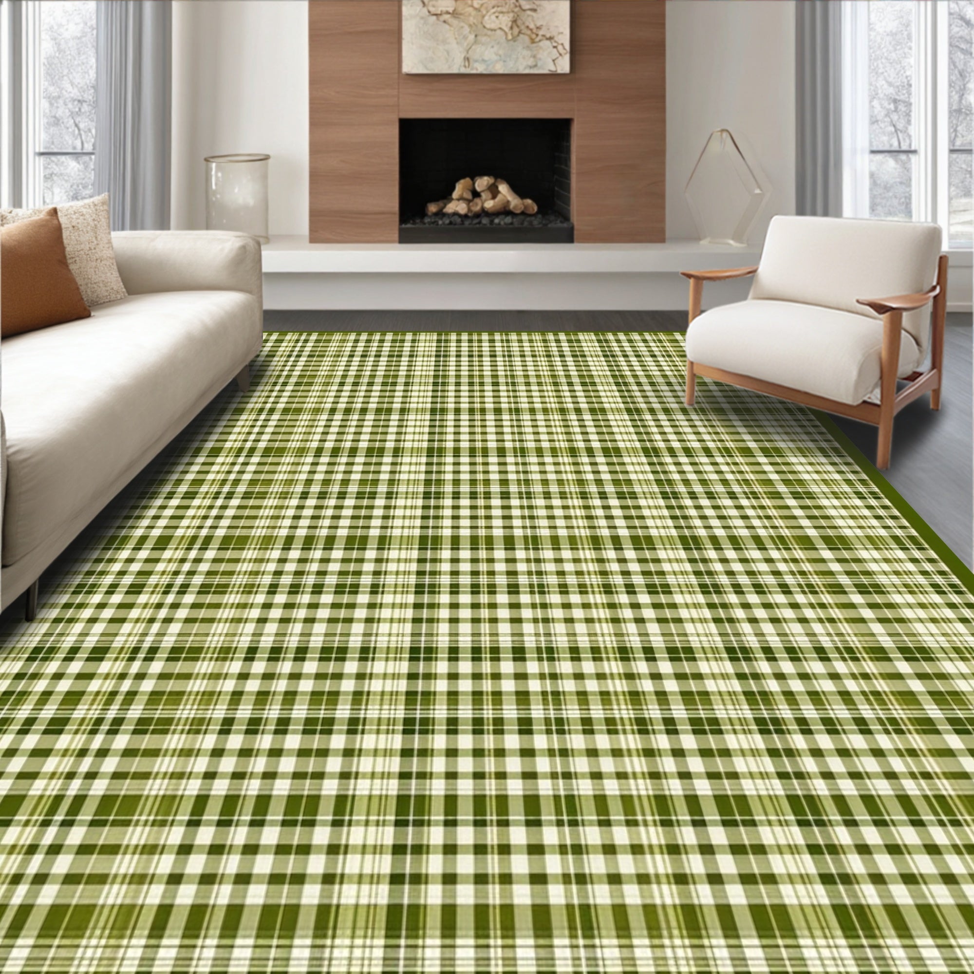 Flatwoven High Traffic Area Rug, Contemporary Layered Graphic Design, Non Slip, Stain Resistant, Washable Area Rugs for Living Room, Bedroom (Green) Overview: