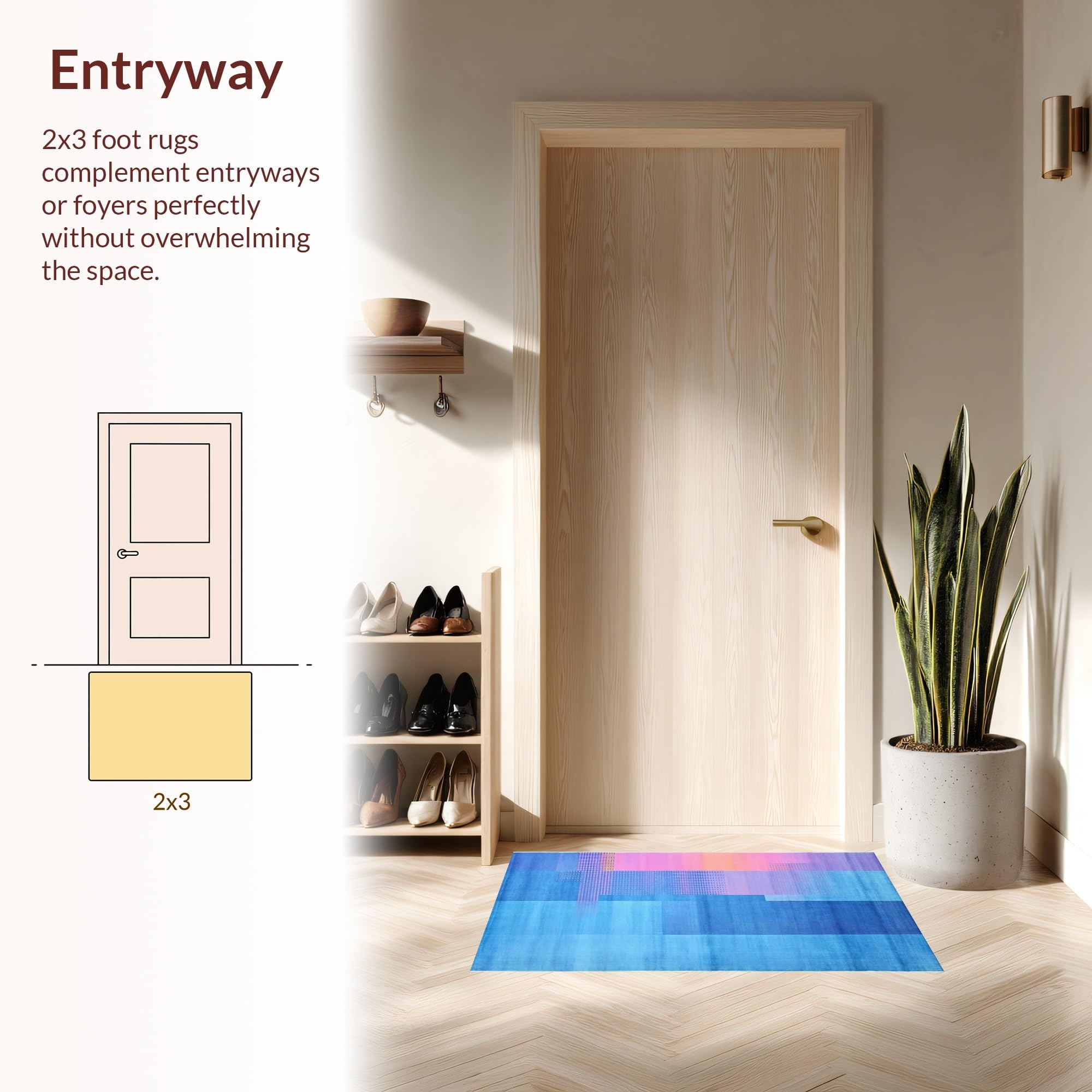 Ultra Soft Area Rug, Non Slip, Stain Resistant, Washable Area Rugs for Living Room, Bedroom, Contemporary Light Blue Geometric Fusion(Blue) Overview: