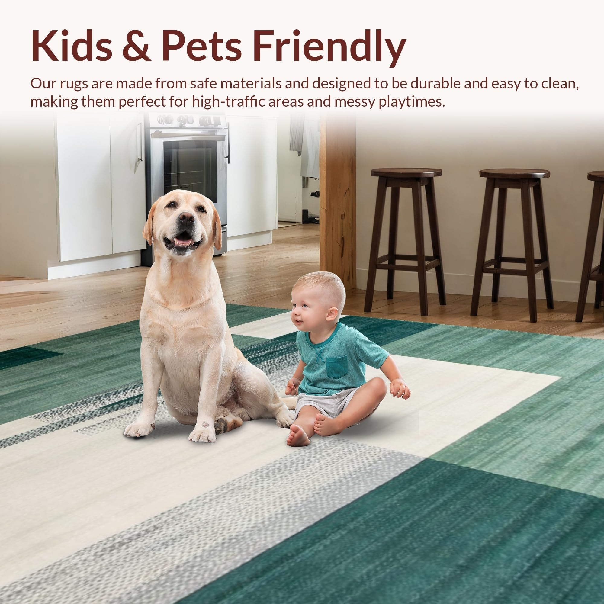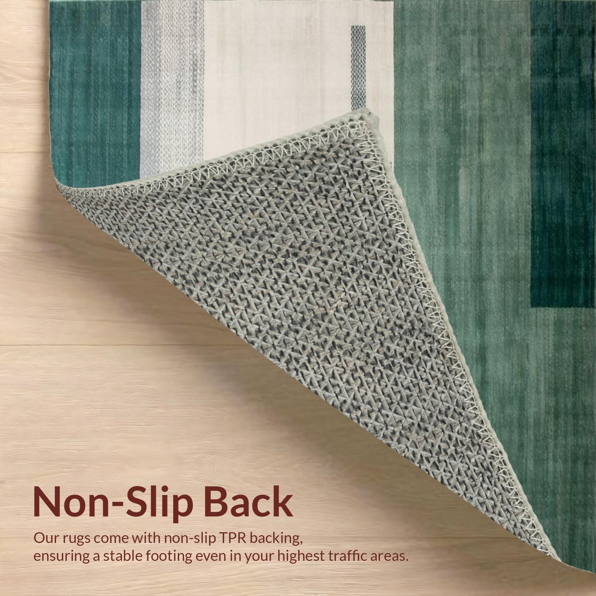 Ultra Soft Area Rug, Non Slip, Stain Resistant, Washable Area Rugs for Living Room, Bedroom, Contemporary Light Blue Swirl Design(Green) Overview: