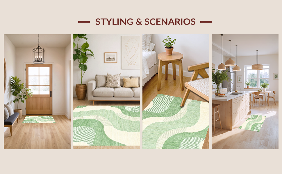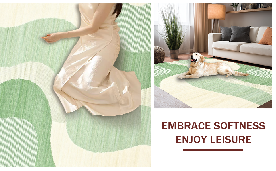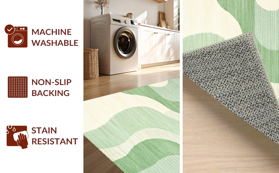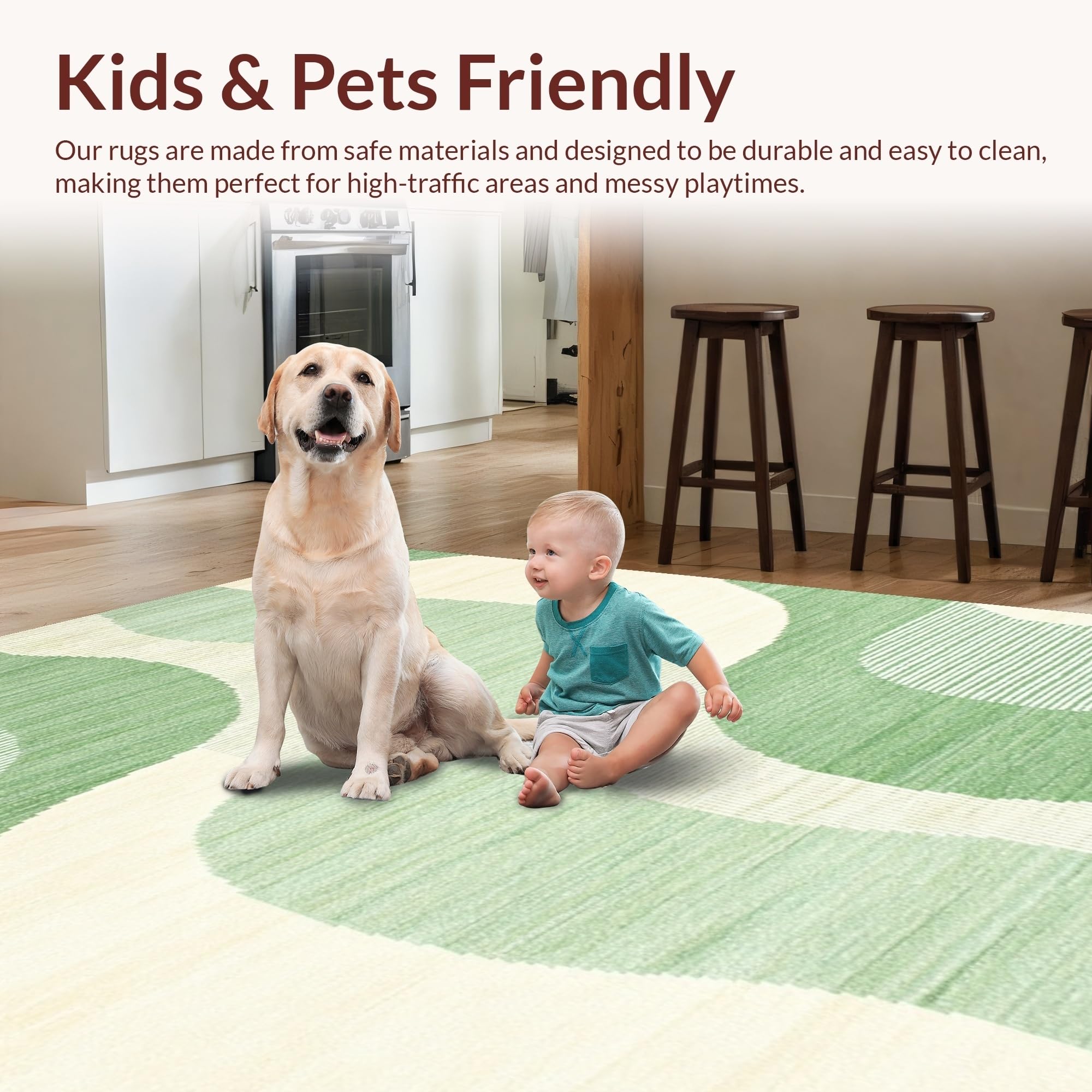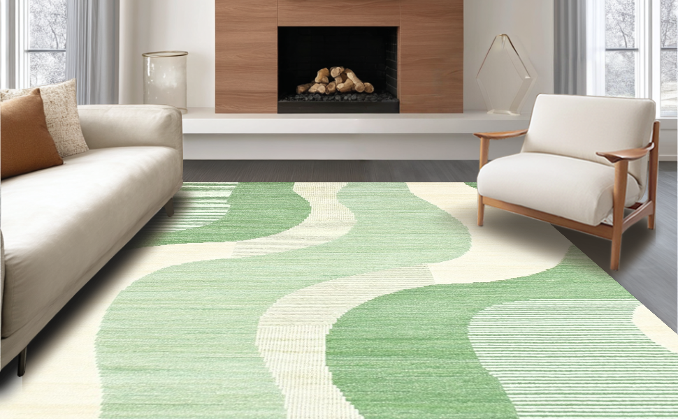 Ultra Soft Area Rug, Non Slip, Stain Resistant, Washable Area Rugs for Living Room, Bedroom, Contemporary Light Green Linear Elements(Beige) Overview: