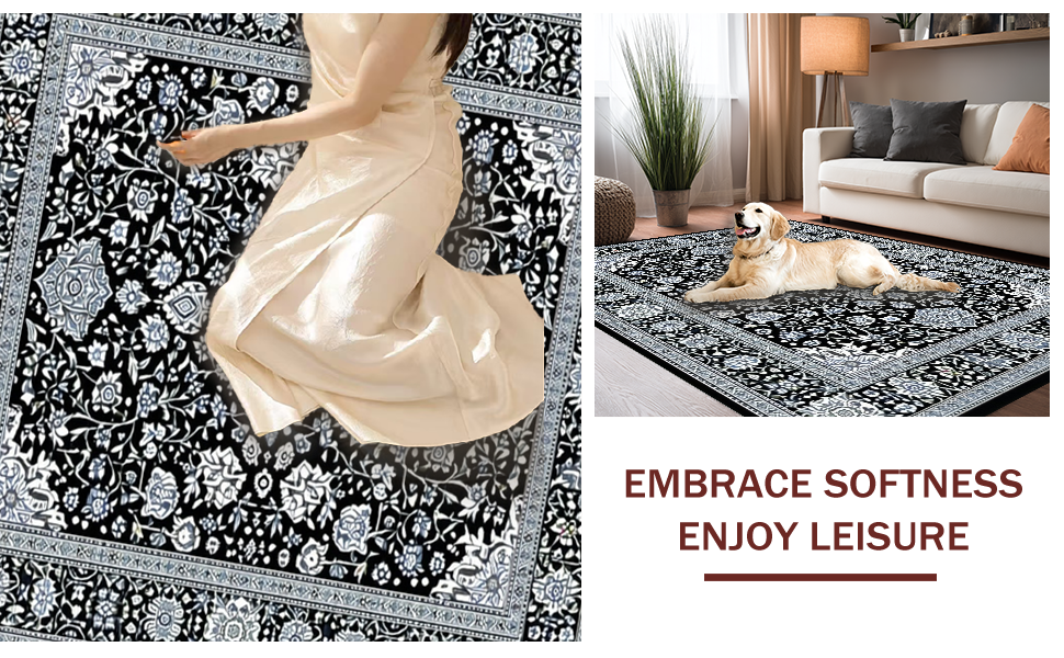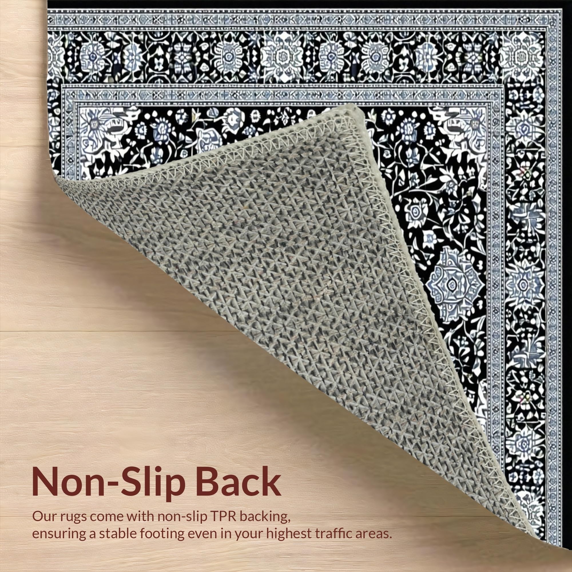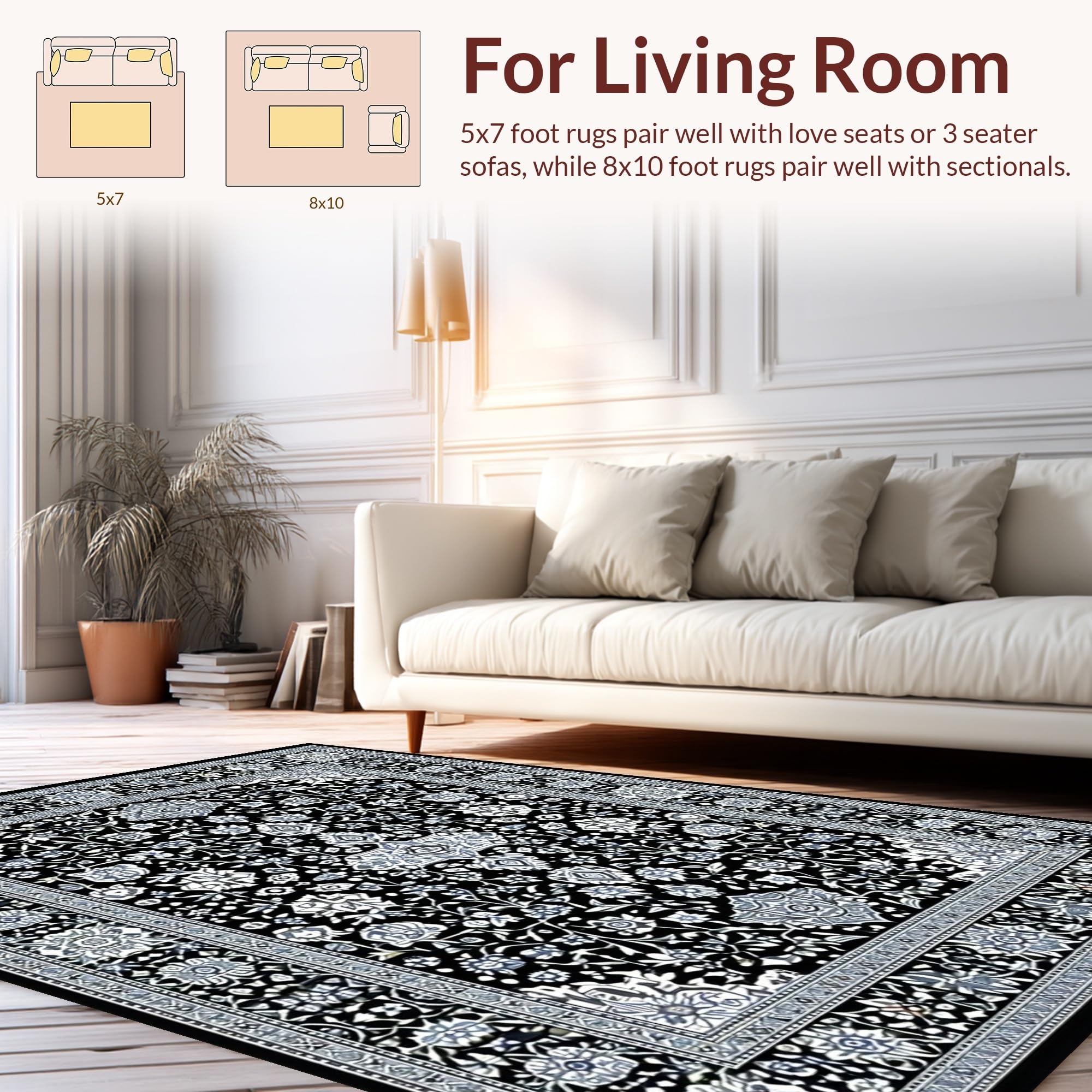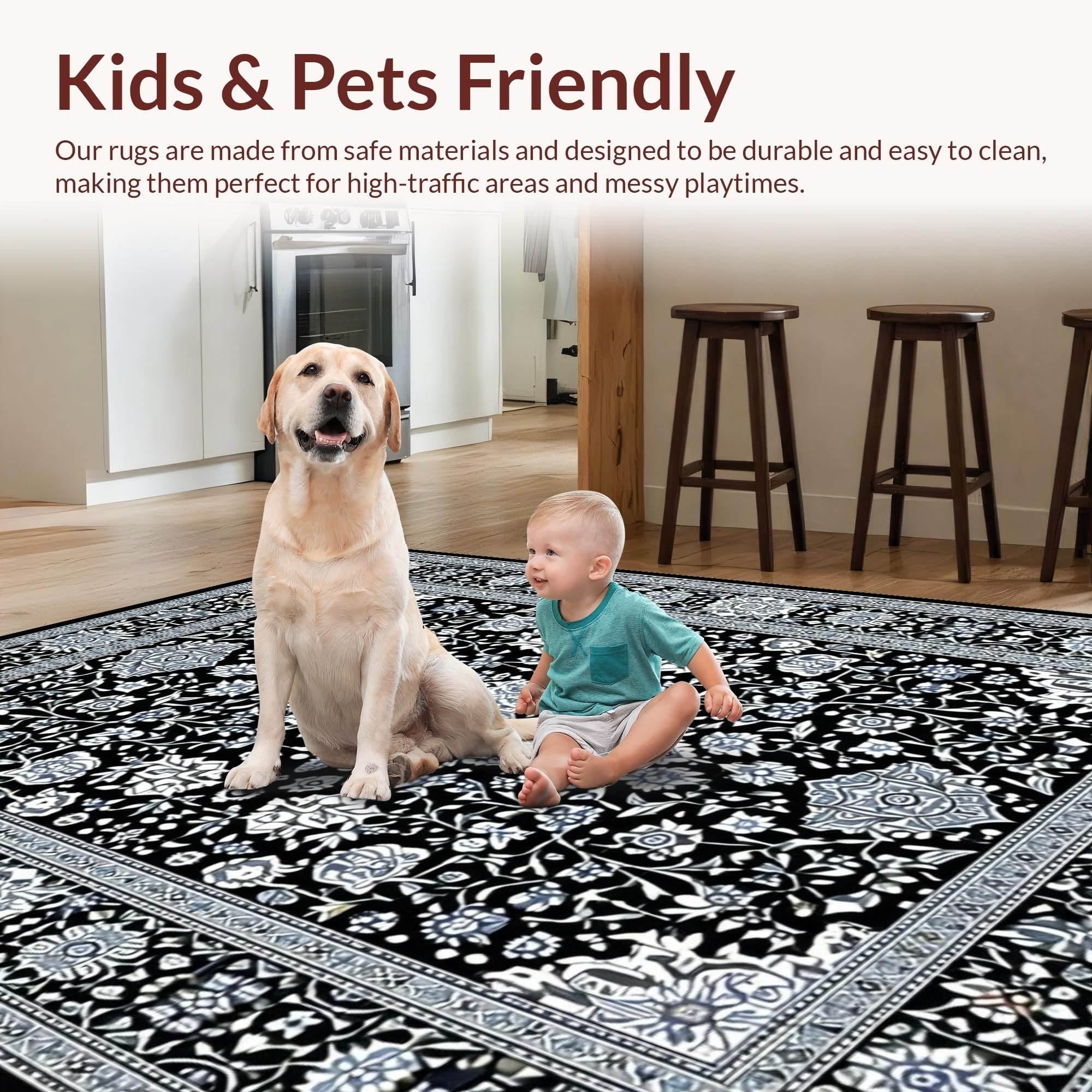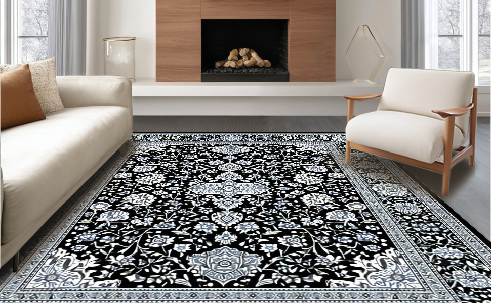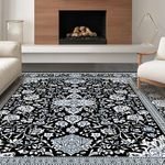 Ultra Soft Area Rug, Non Slip, Stain Resistant, Washable Area Rugs for Living Room, Bedroom, Contemporary Lightweight Medallion Style(Black) Overview: