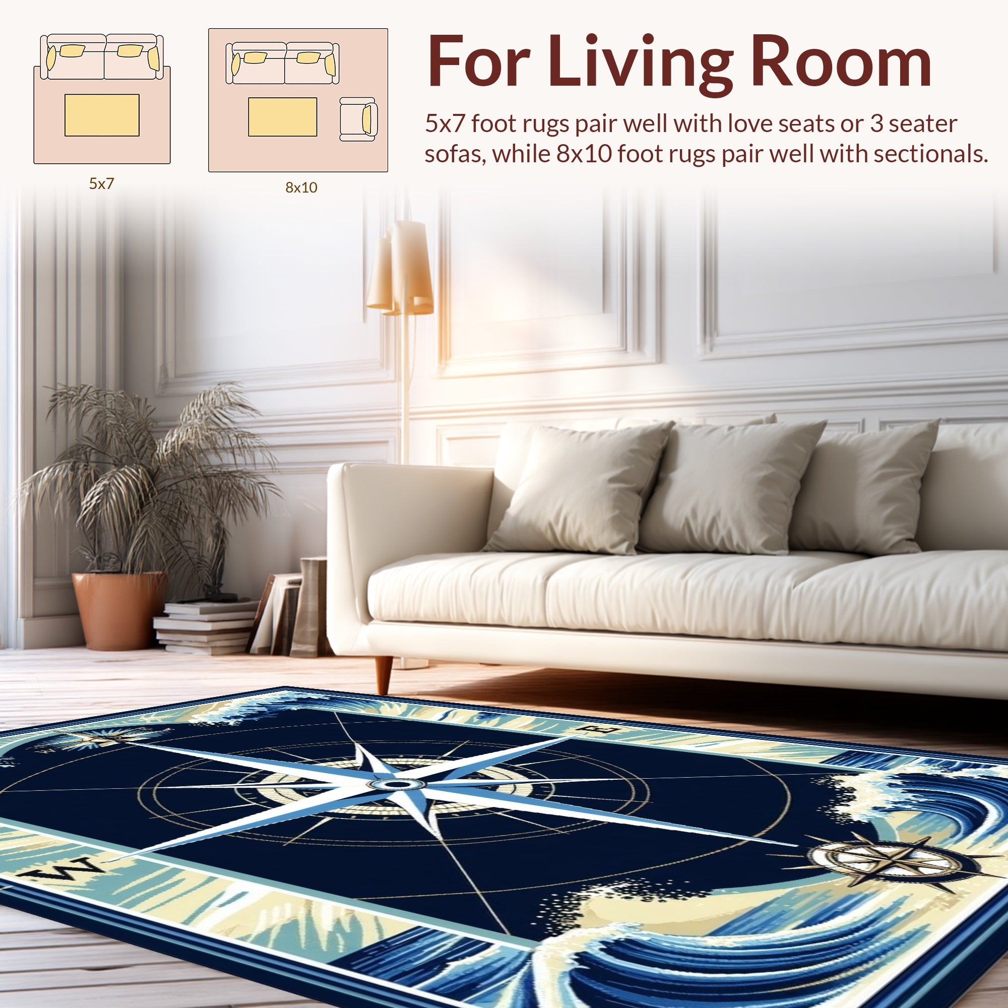Flatwoven High Traffic Area Rug, Contemporary Marine Inspired Design, Non Slip, Stain Resistant, Washable Area Rugs for Living Room, Bedroom (Blue) Overview:
