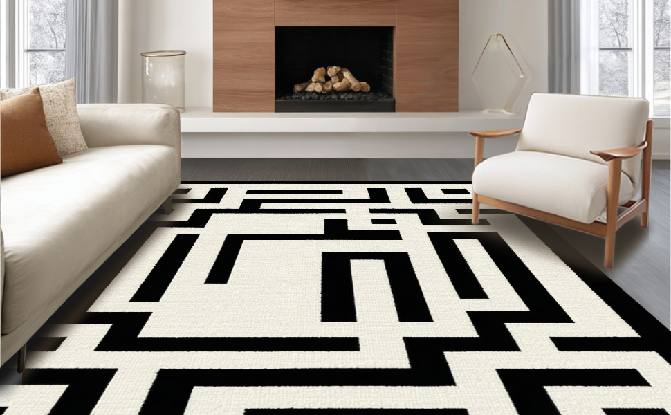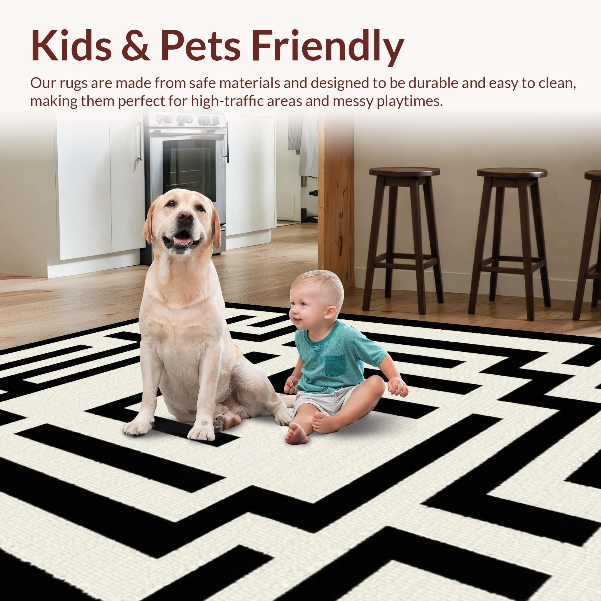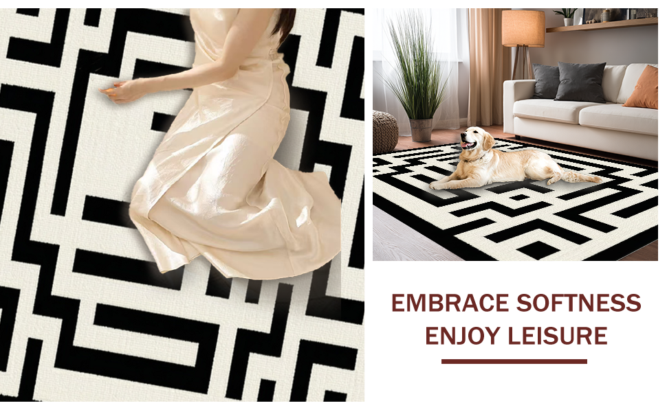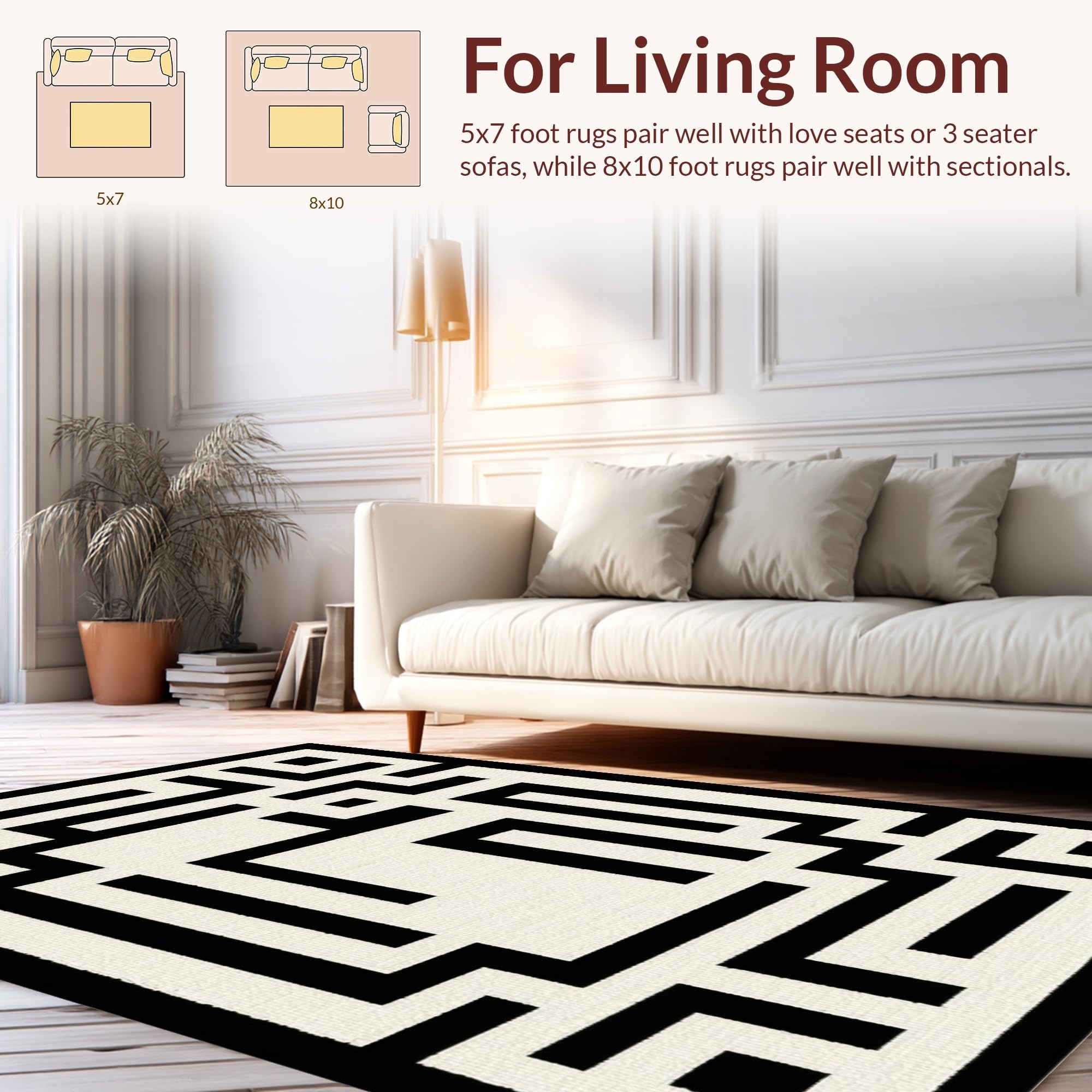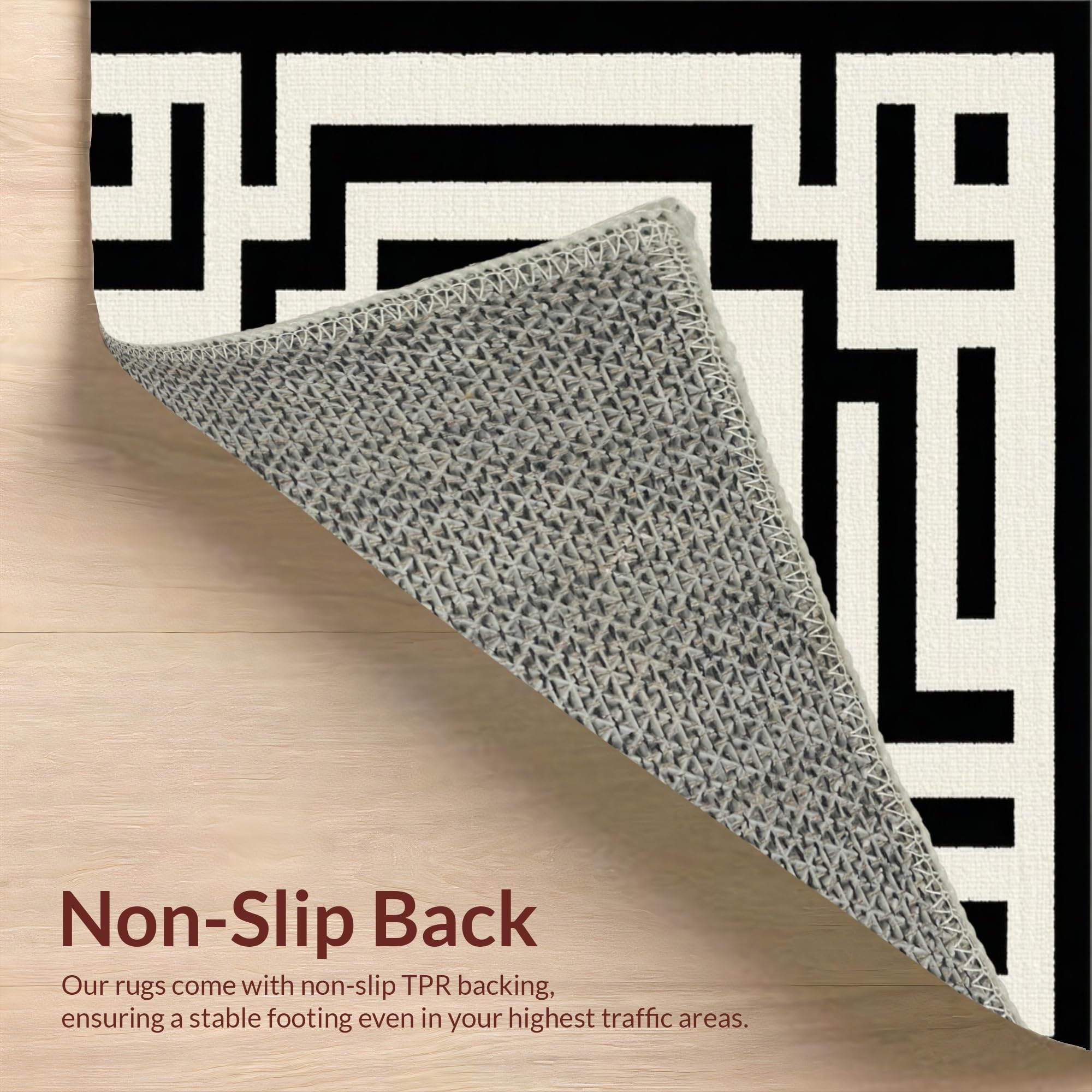 Ultra Soft Area Rug, Non Slip, Stain Resistant, Washable Area Rugs for Living Room, Bedroom, Contemporary Minimalist Greek Key Motif(Beige) Overview: