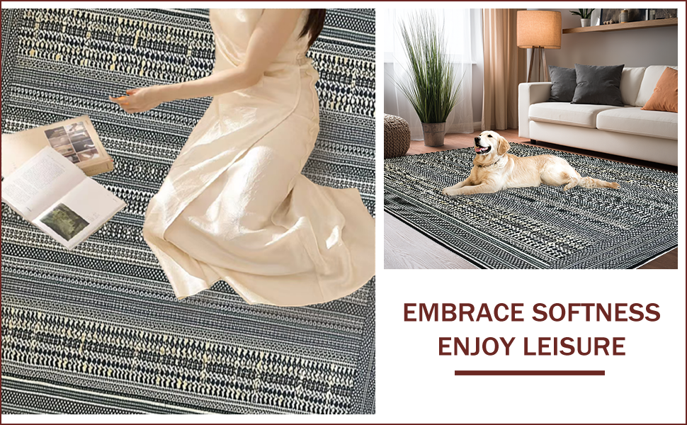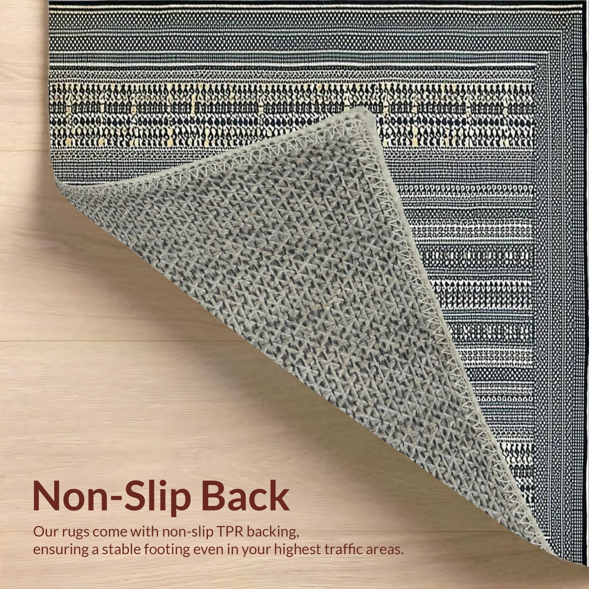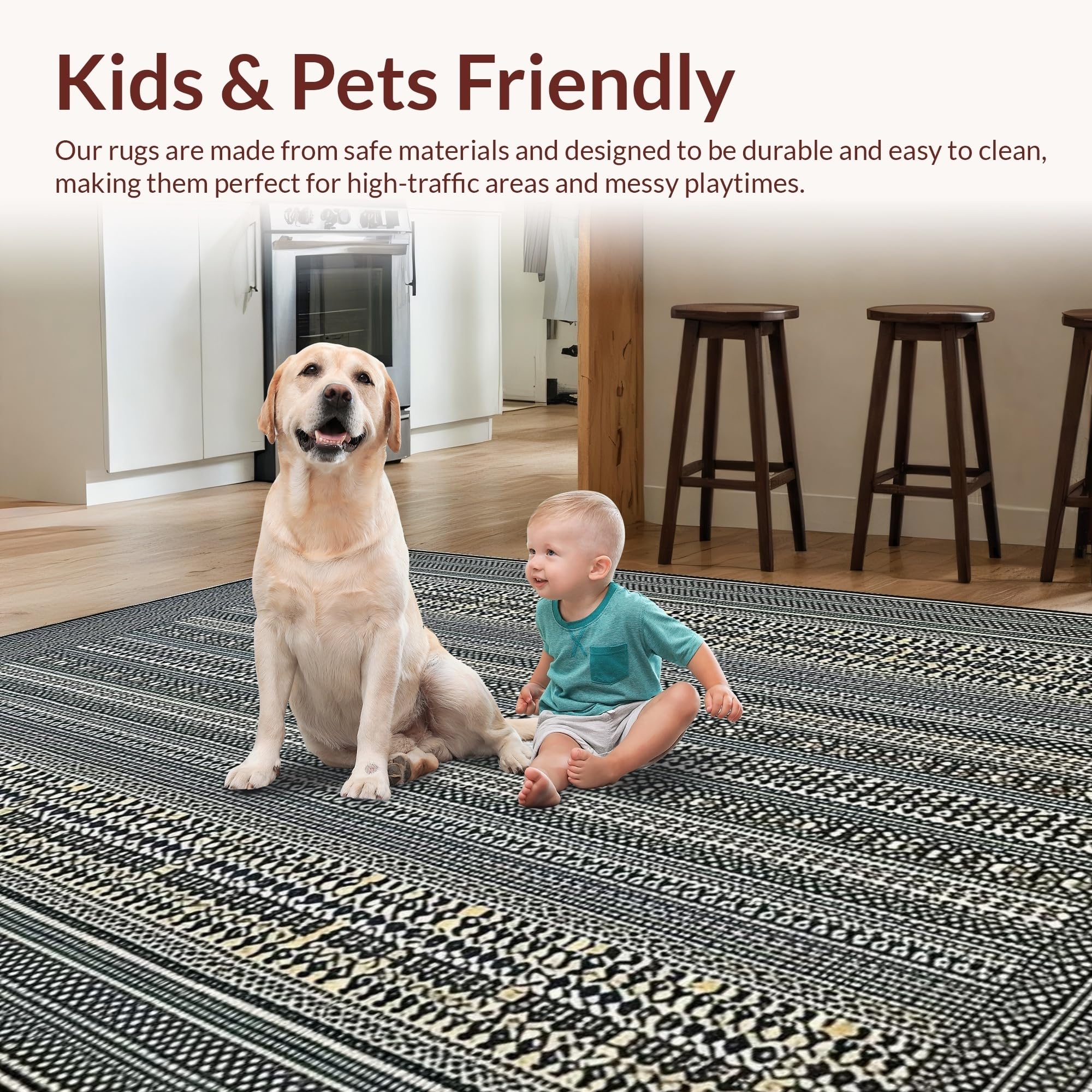 Ultra Soft Area Rug, Non Slip, Stain Resistant, Washable Area Rugs for Living Room, Bedroom, Contemporary Monochrome Geometric Fusion(Black) Overview: