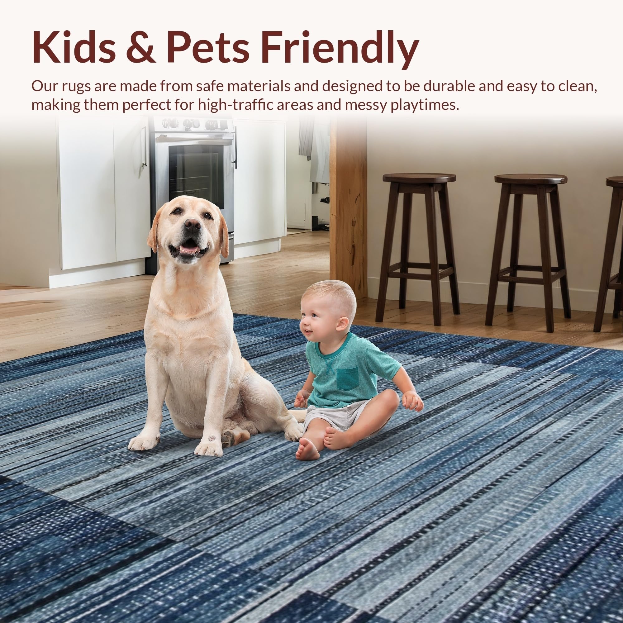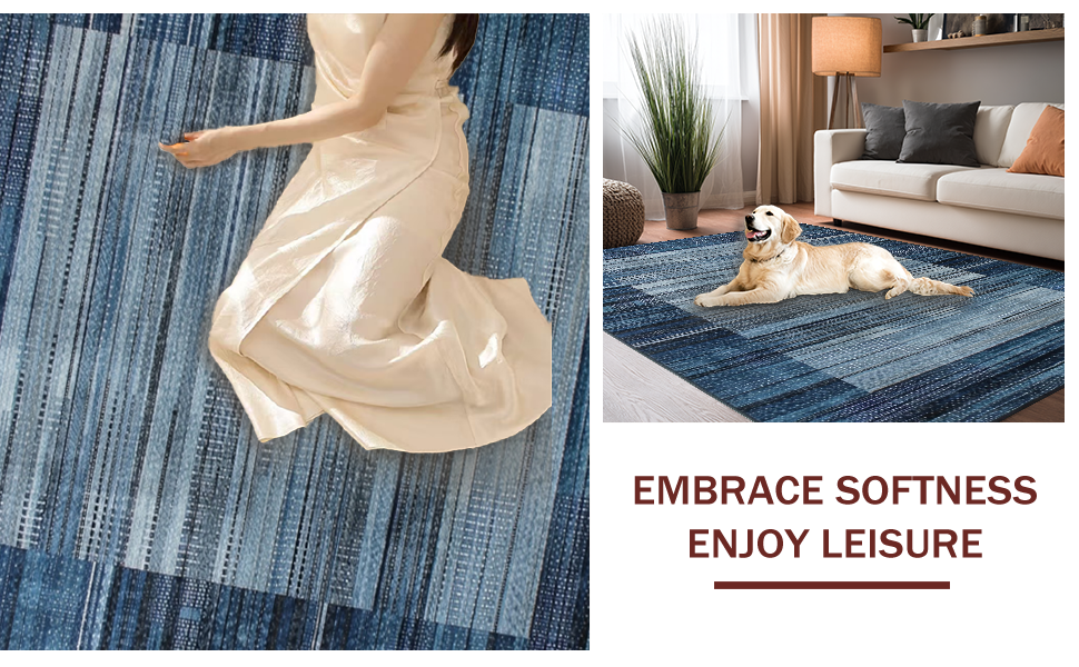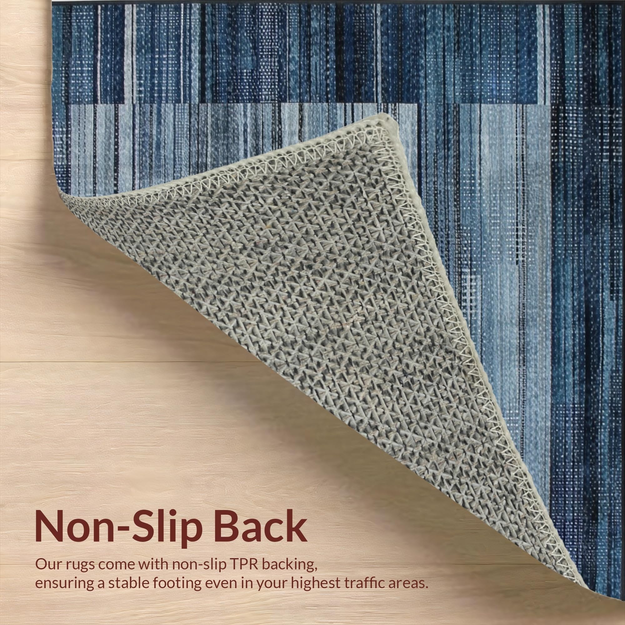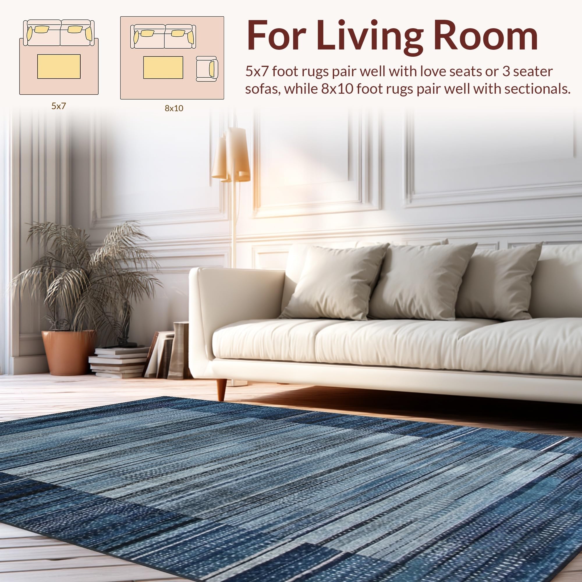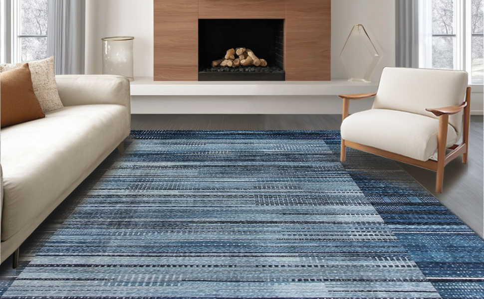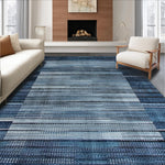 Ultra Soft Area Rug, Non Slip, Stain Resistant, Washable Area Rugs for Living Room, Bedroom, Contemporary Monochrome Layered Patterns(Blue) Overview: