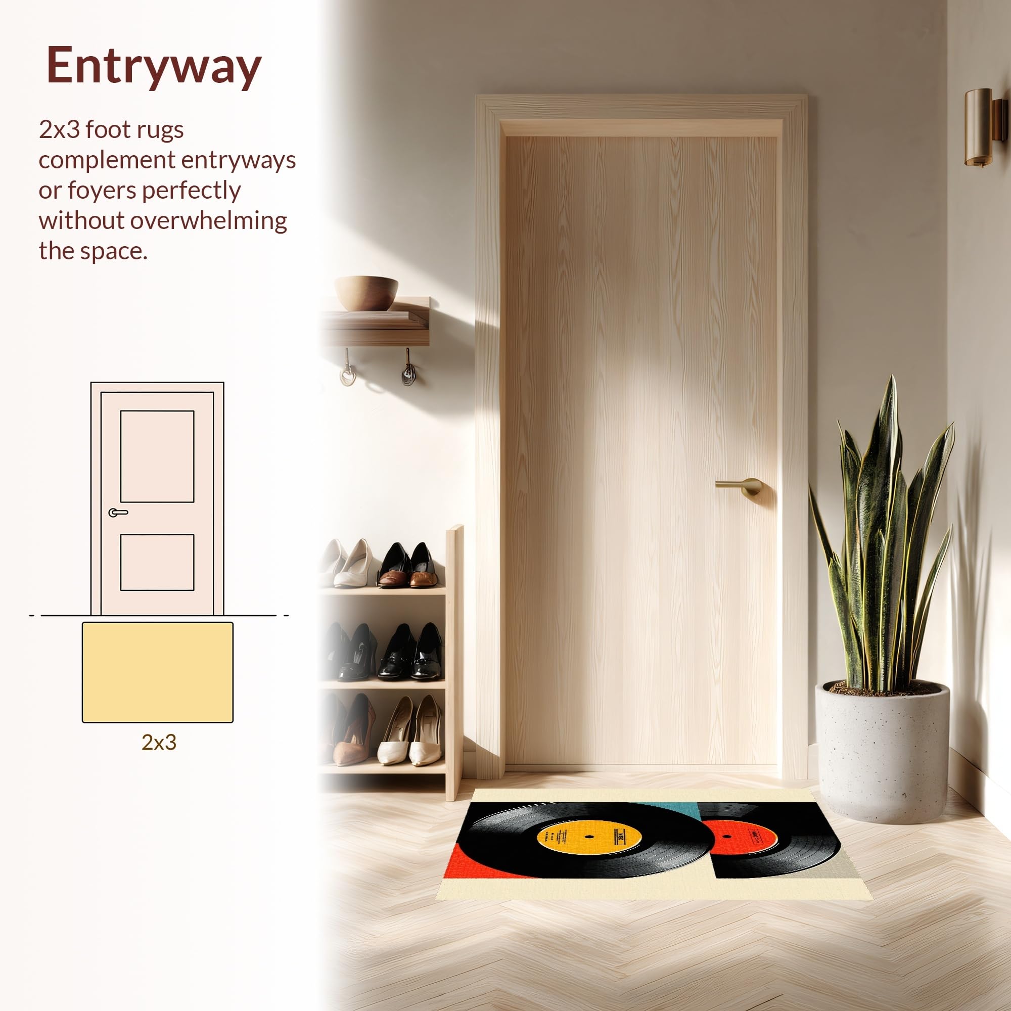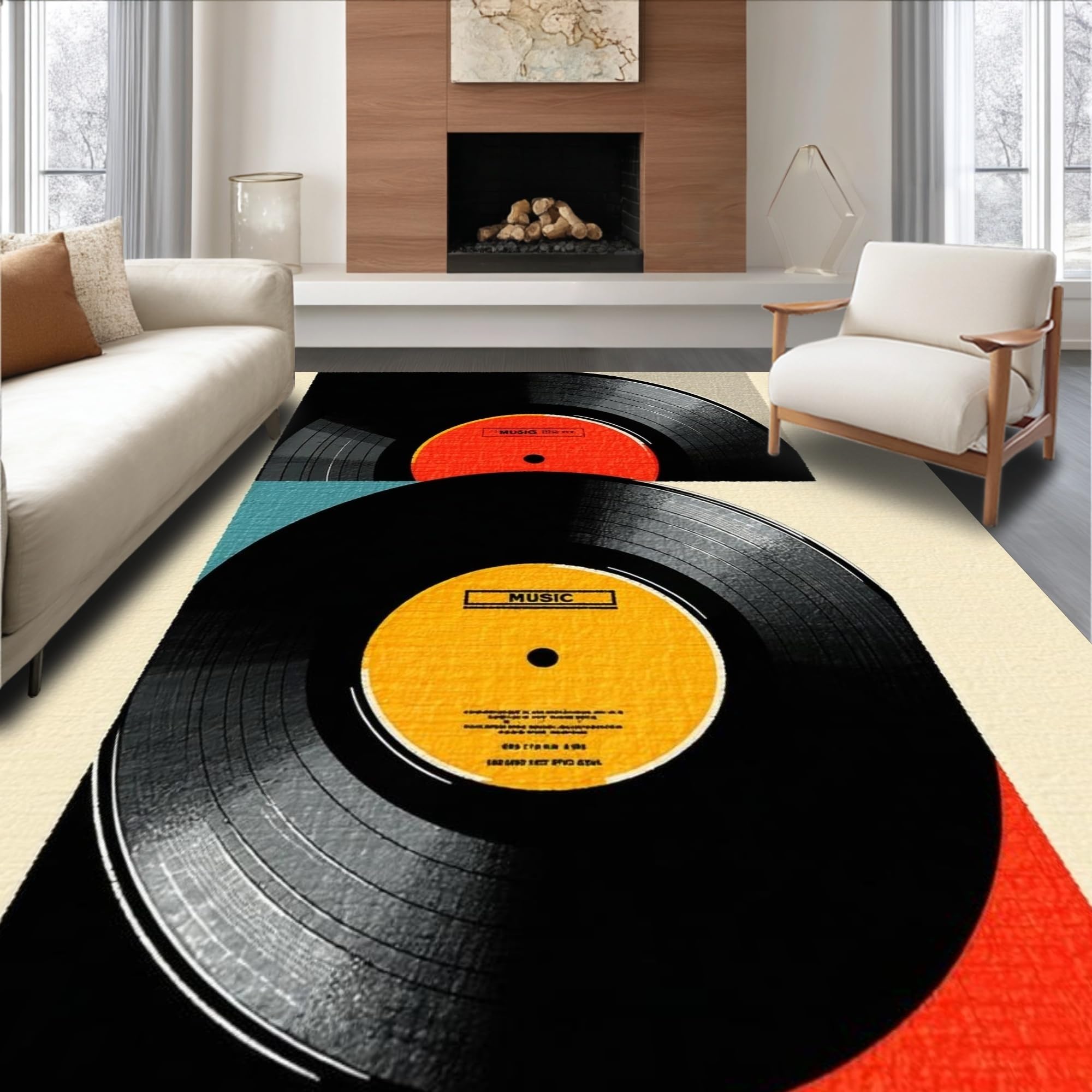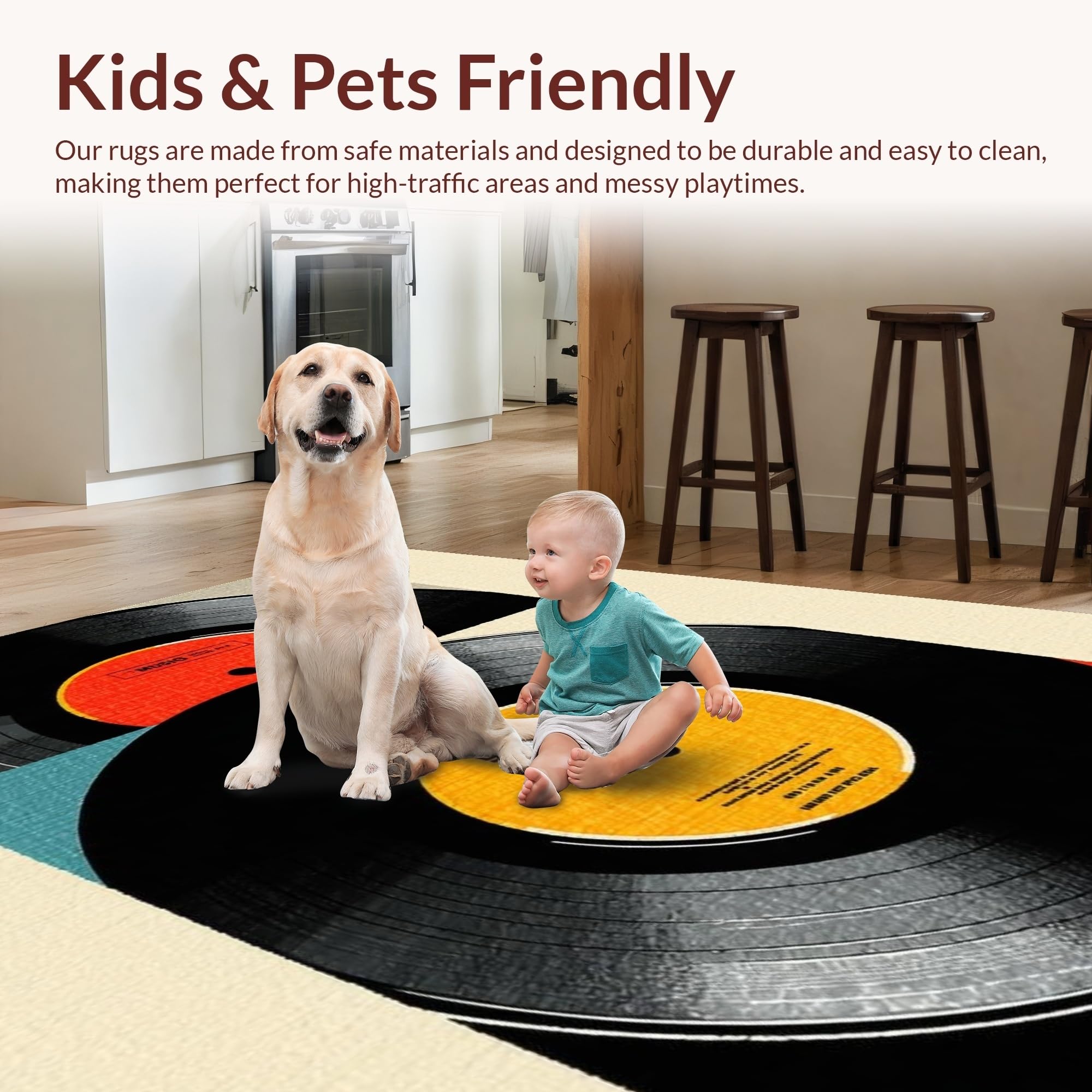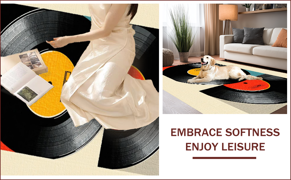 Ultra Soft Area Rug, Non Slip, Stain Resistant, Washable Area Rugs for Living Room, Bedroom, Contemporary Monochrome Vinyl Aesthetic(Black) Overview: