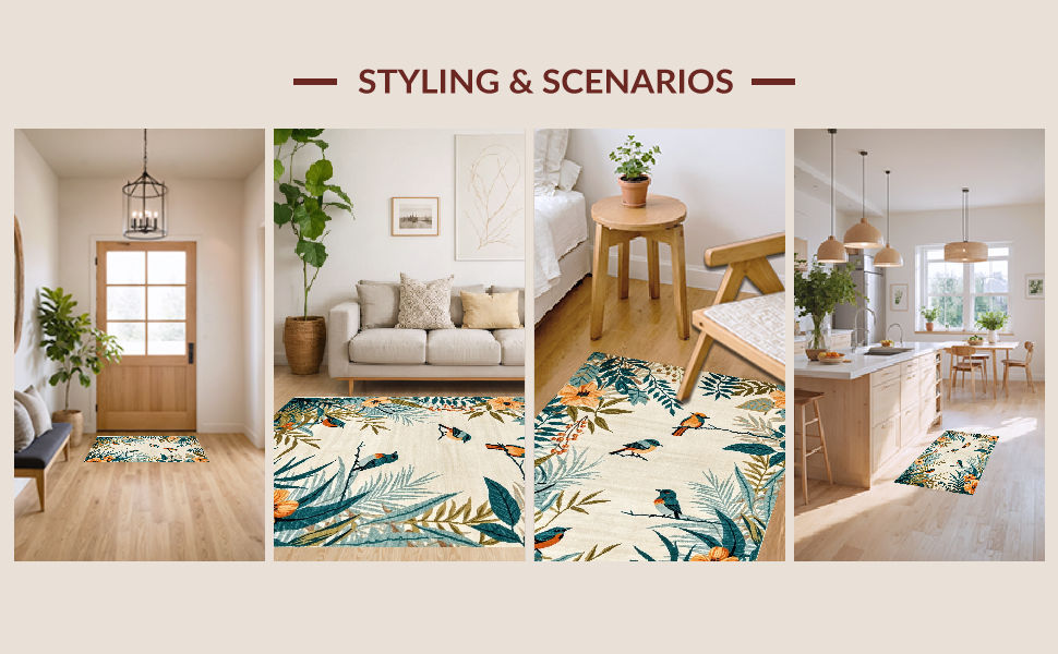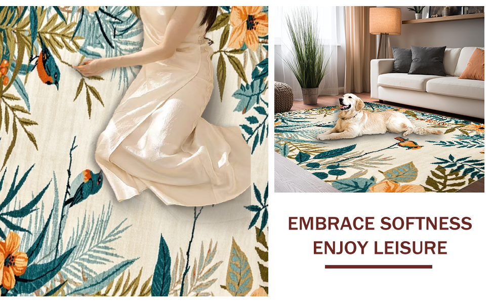 Ultra Soft Area Rug, Non Slip, Stain Resistant, Washable Area Rugs for Living Room, Bedroom, Contemporary Nature-Inspired Aesthetic(Beige) Overview: