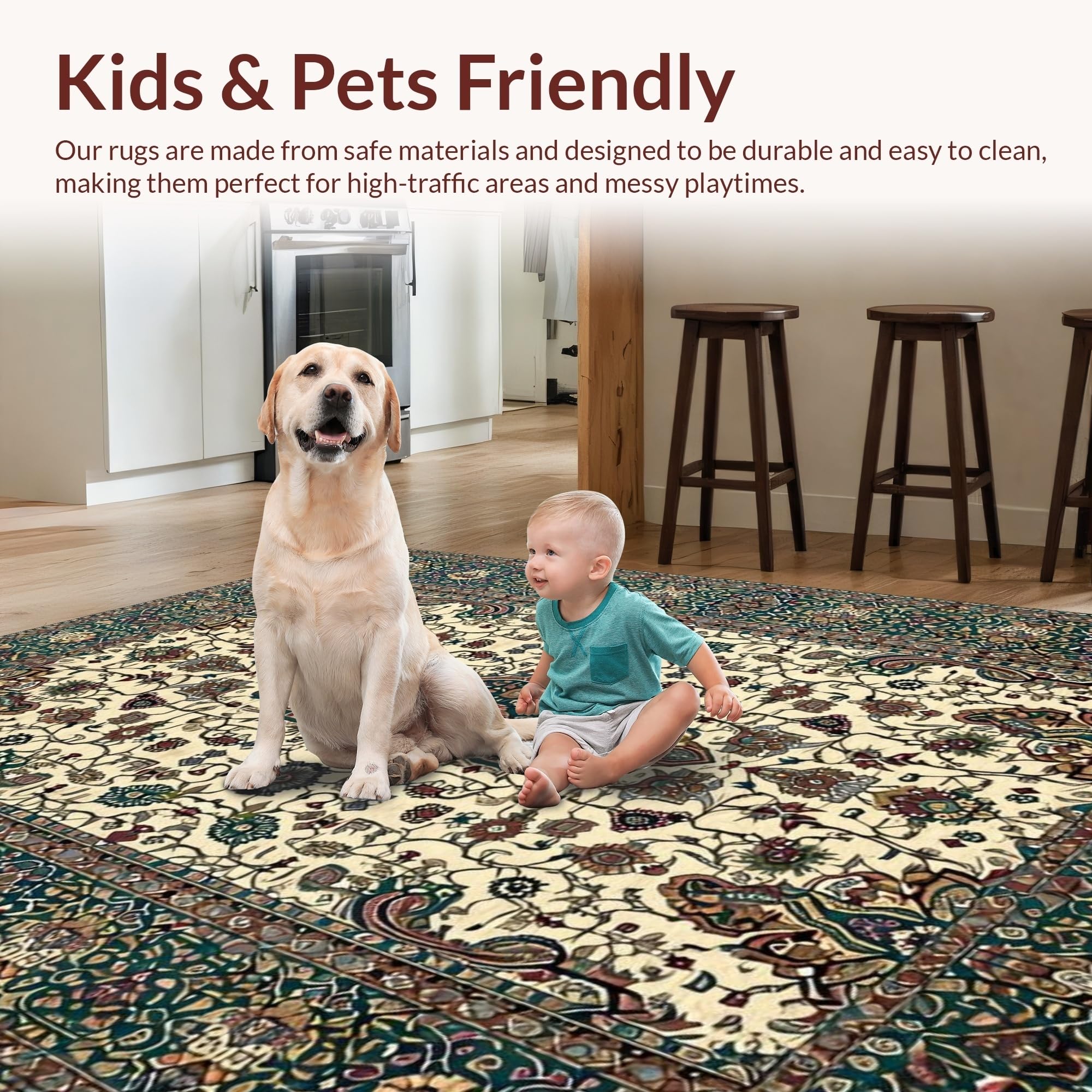 Ultra Soft Area Rug, Non Slip, Stain Resistant, Washable Area Rugs for Living Room, Bedroom, Contemporary Neutral Tiled Design(Beige) Overview: