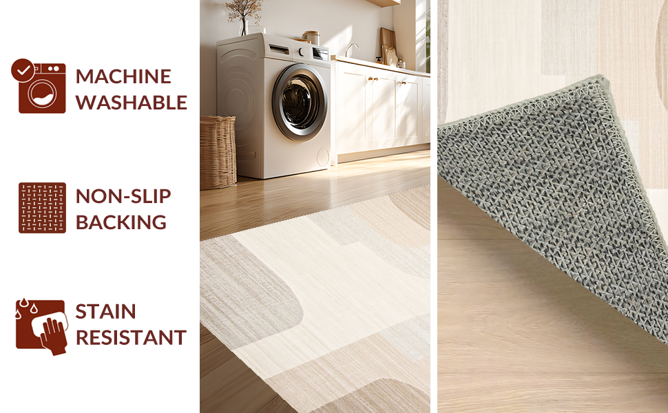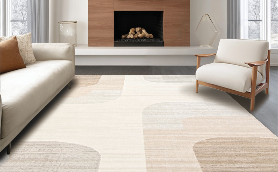 Ultra Soft Area Rug, Non Slip, Stain Resistant, Washable Area Rugs for Living Room, Bedroom, Contemporary Ombre Organic Flow(Beige) Overview: