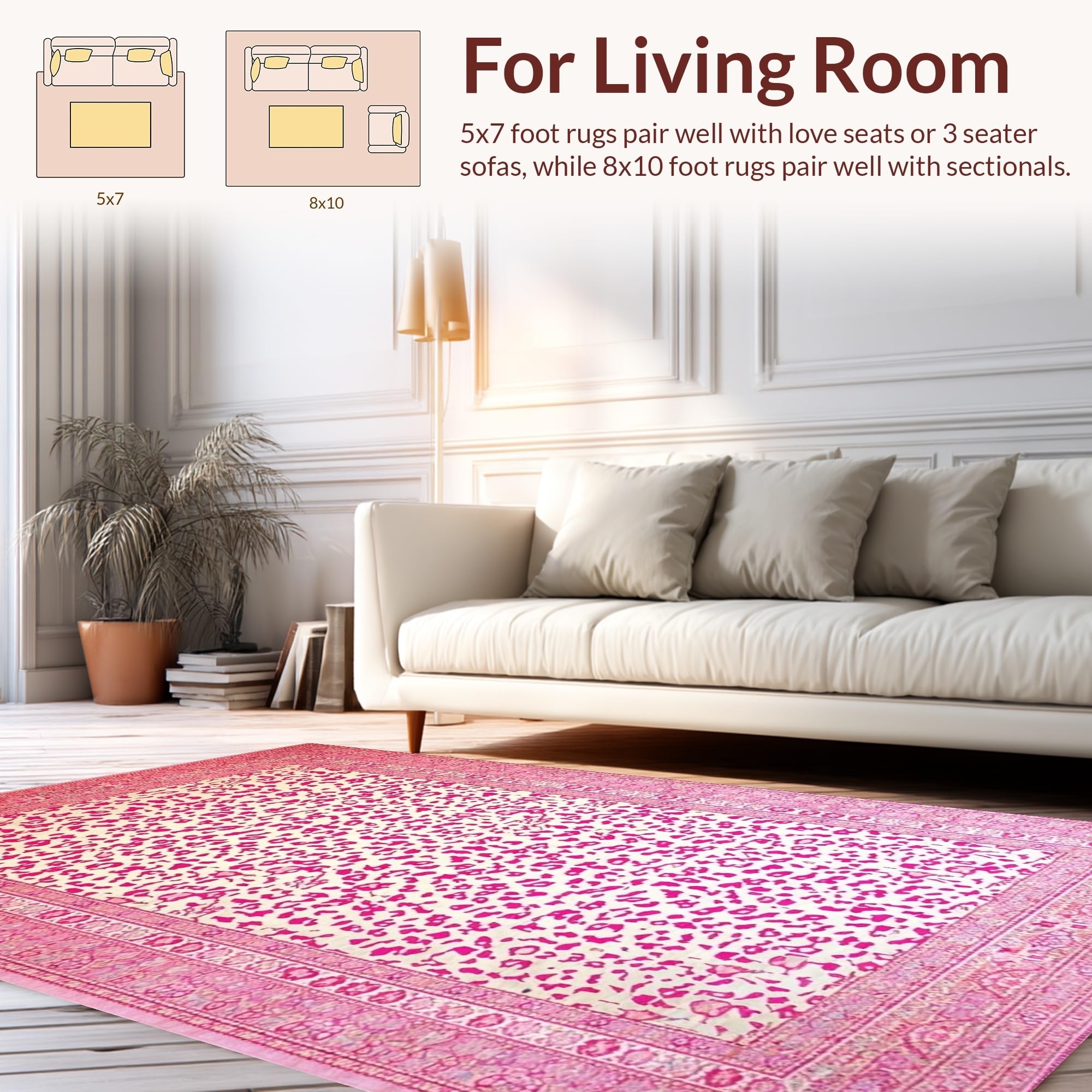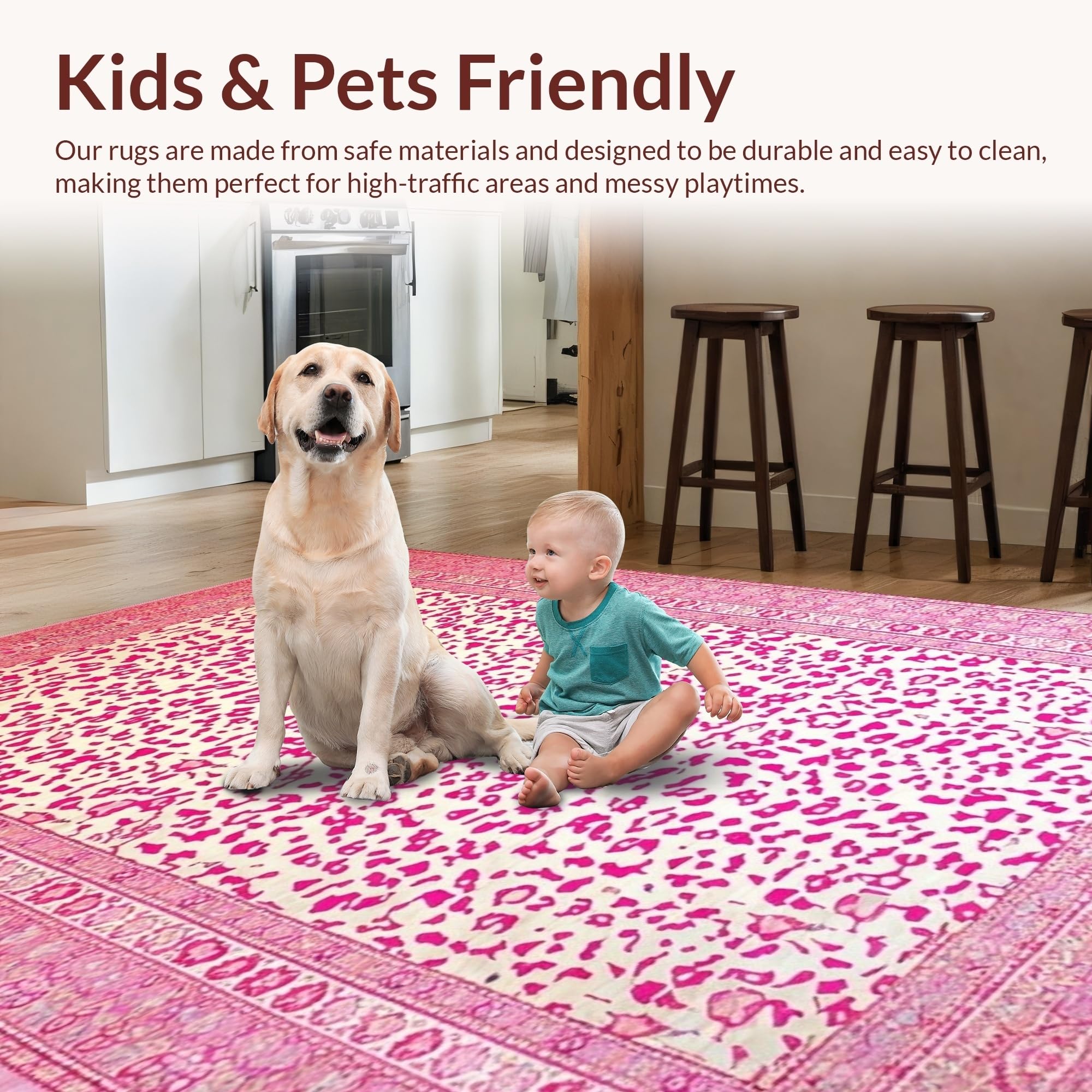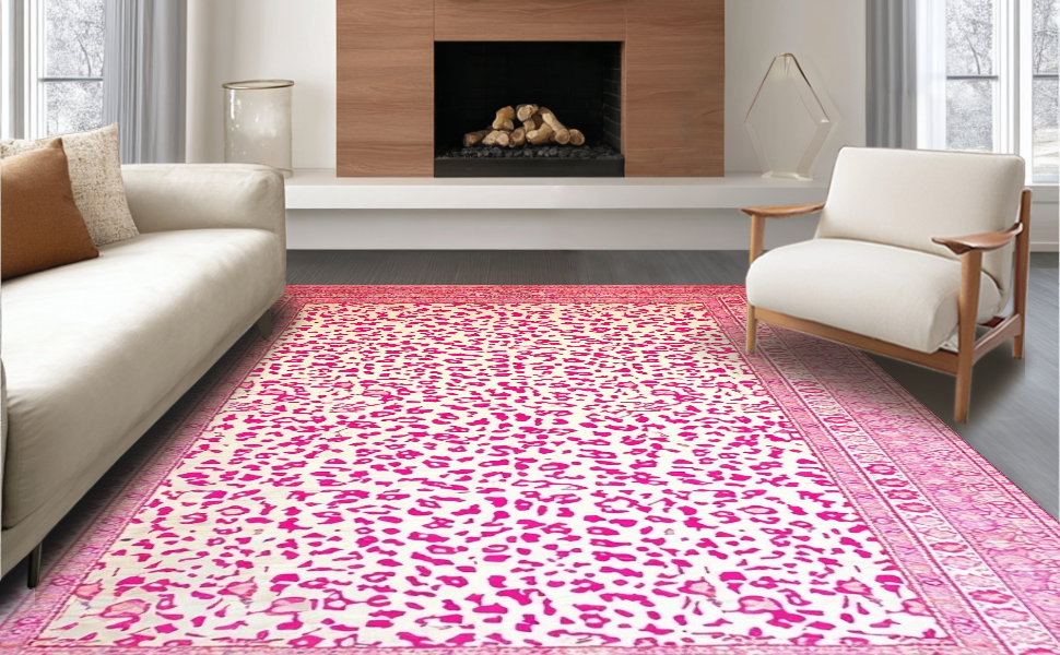 Ultra Soft Area Rug, Non Slip, Stain Resistant, Washable Area Rugs for Living Room, Bedroom, Contemporary Pastel Leopard Aesthetic(Pink) Overview: