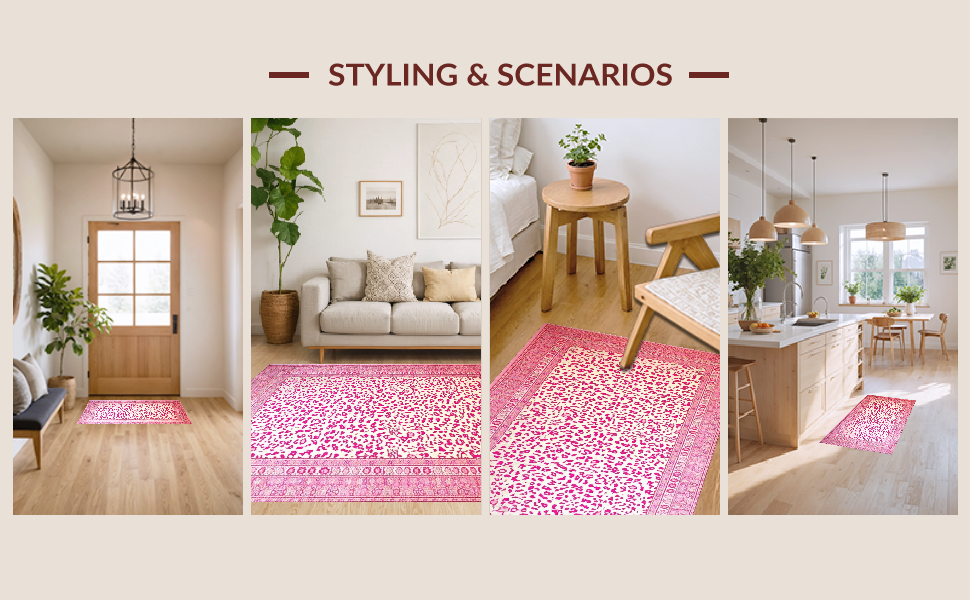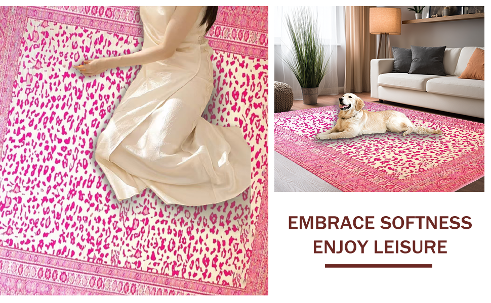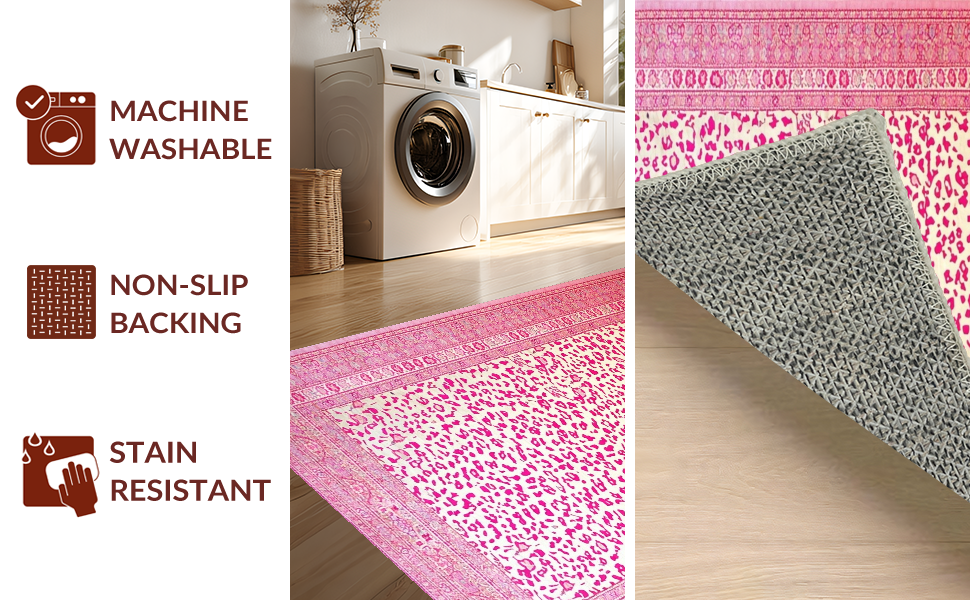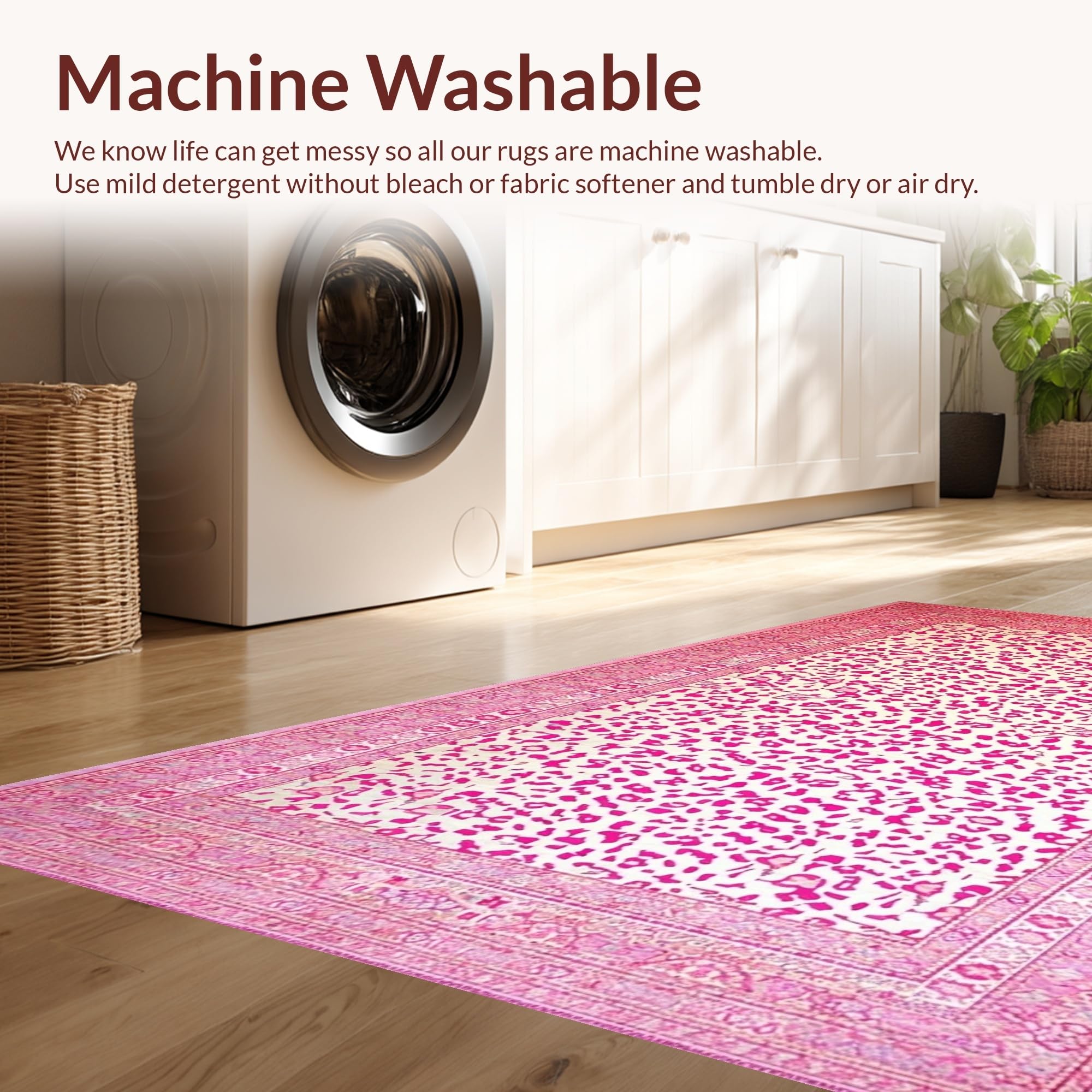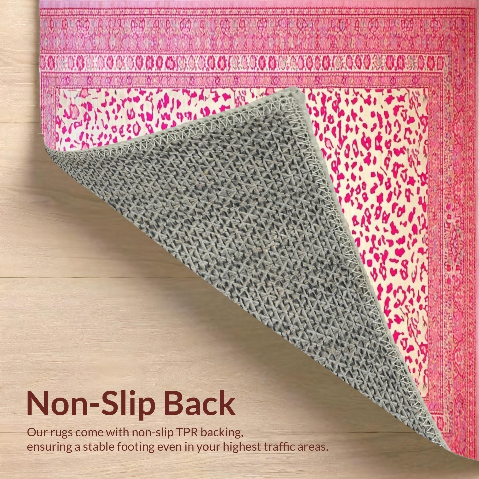 Ultra Soft Area Rug, Non Slip, Stain Resistant, Washable Area Rugs for Living Room, Bedroom, Contemporary Pastel Leopard Aesthetic(Pink) Overview: