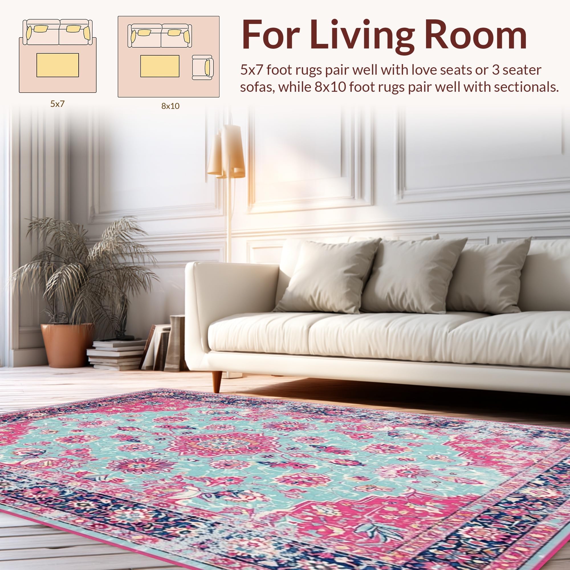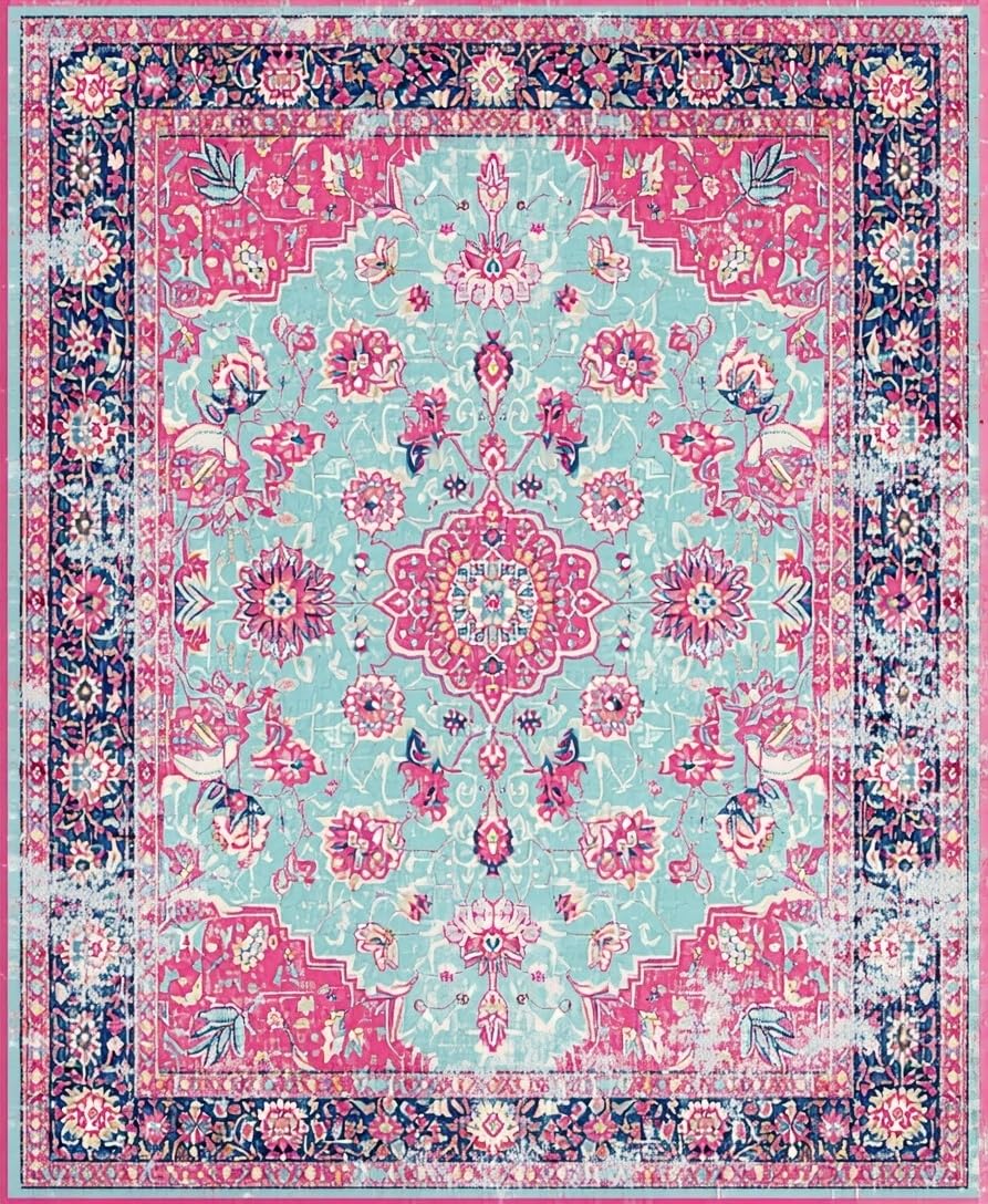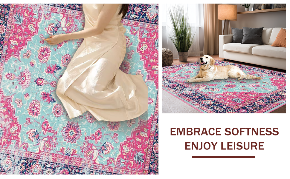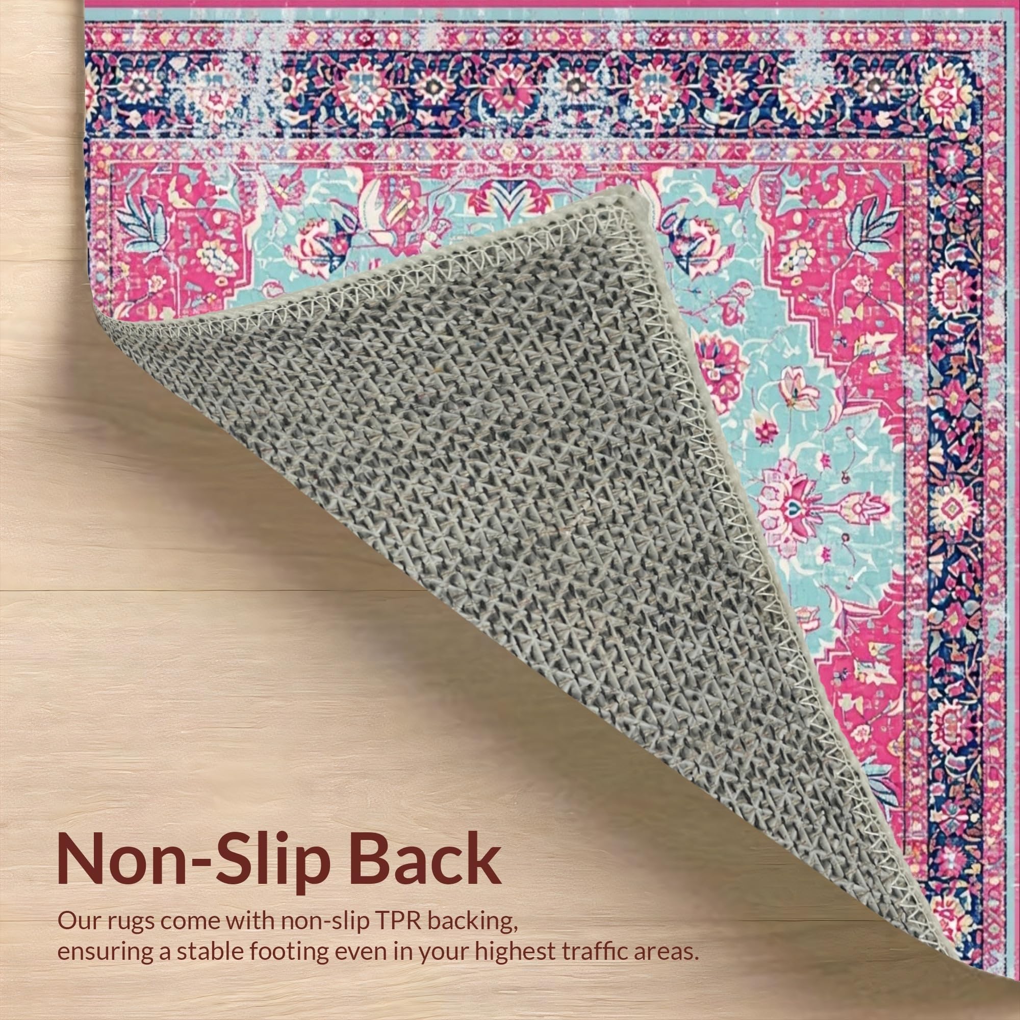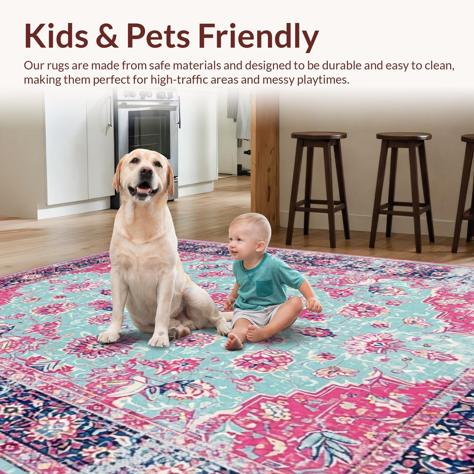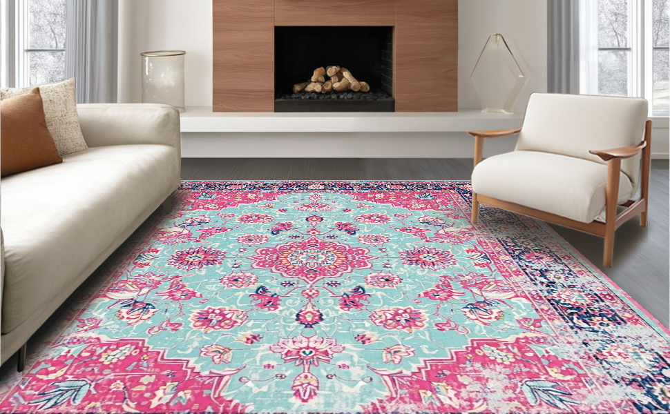 Ultra Soft Area Rug, Non Slip, Stain Resistant, Washable Area Rugs for Living Room, Bedroom, Contemporary Pastel Medallion Design(Pink) Overview:
