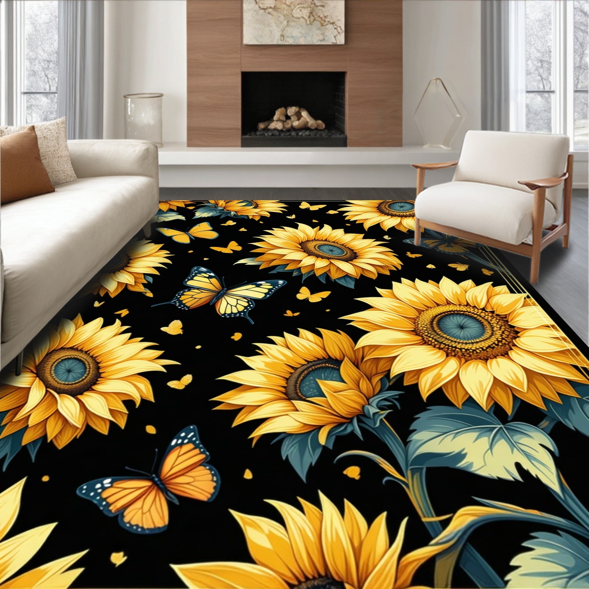 Flatwoven High Traffic Area Rug, Contemporary Rustic Floral, Non Slip, Stain Resistant, Washable Area Rugs for Living Room, Bedroom (Yellow) Overview: