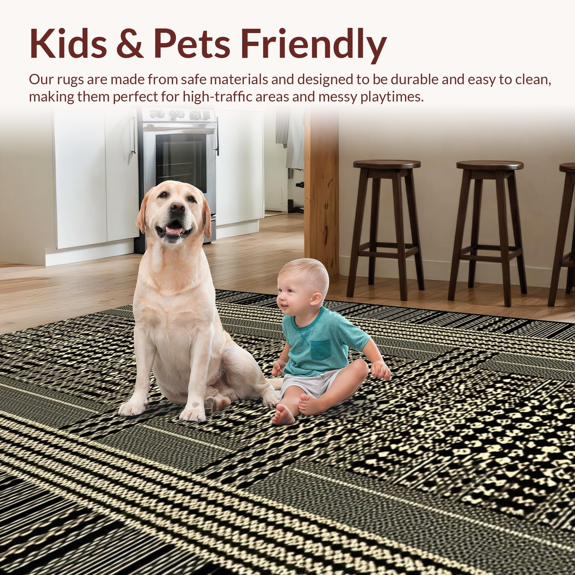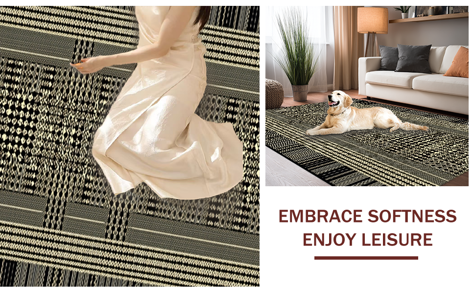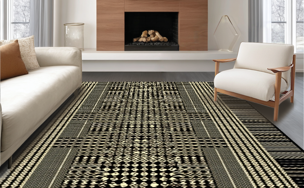 Ultra Soft Area Rug, Non Slip, Stain Resistant, Washable Area Rugs for Living Room, Bedroom, Contemporary Safari Style Accent(Black) Overview: