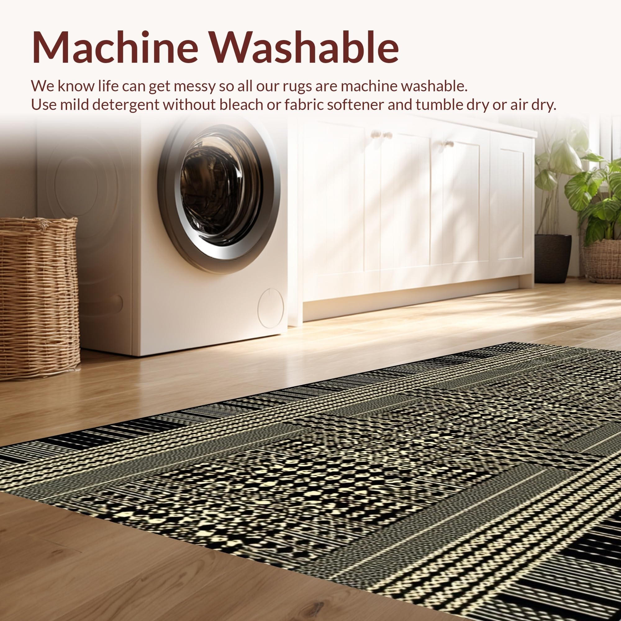 - Machine Washable: Our rugs can be easily thrown in the wash machine.