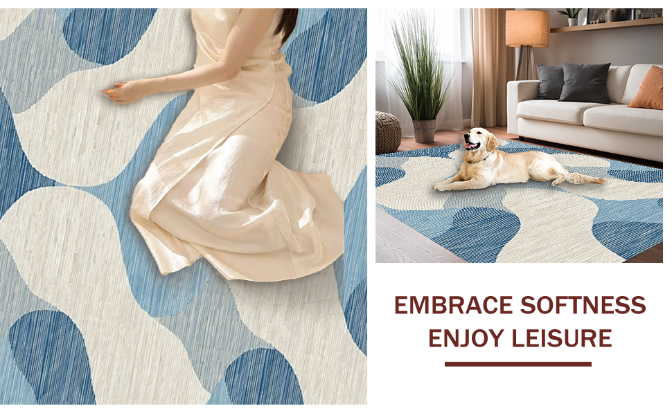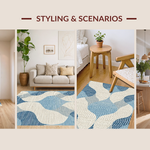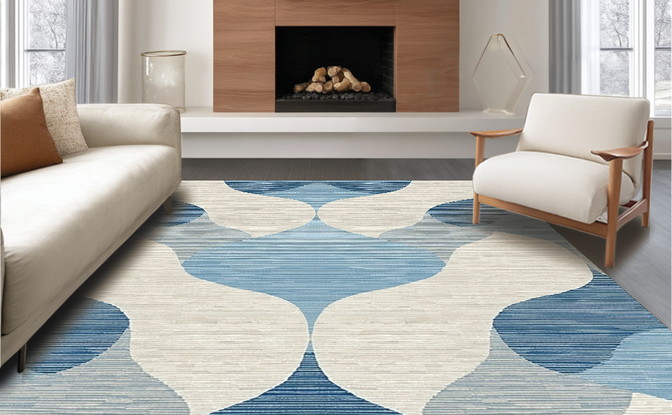 Ultra Soft Area Rug, Non Slip, Stain Resistant, Washable Area Rugs for Living Room, Bedroom, Contemporary Scalloped Textural Appeal(Blue) Overview: