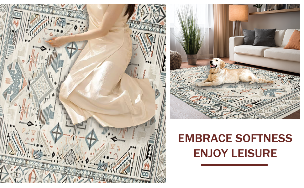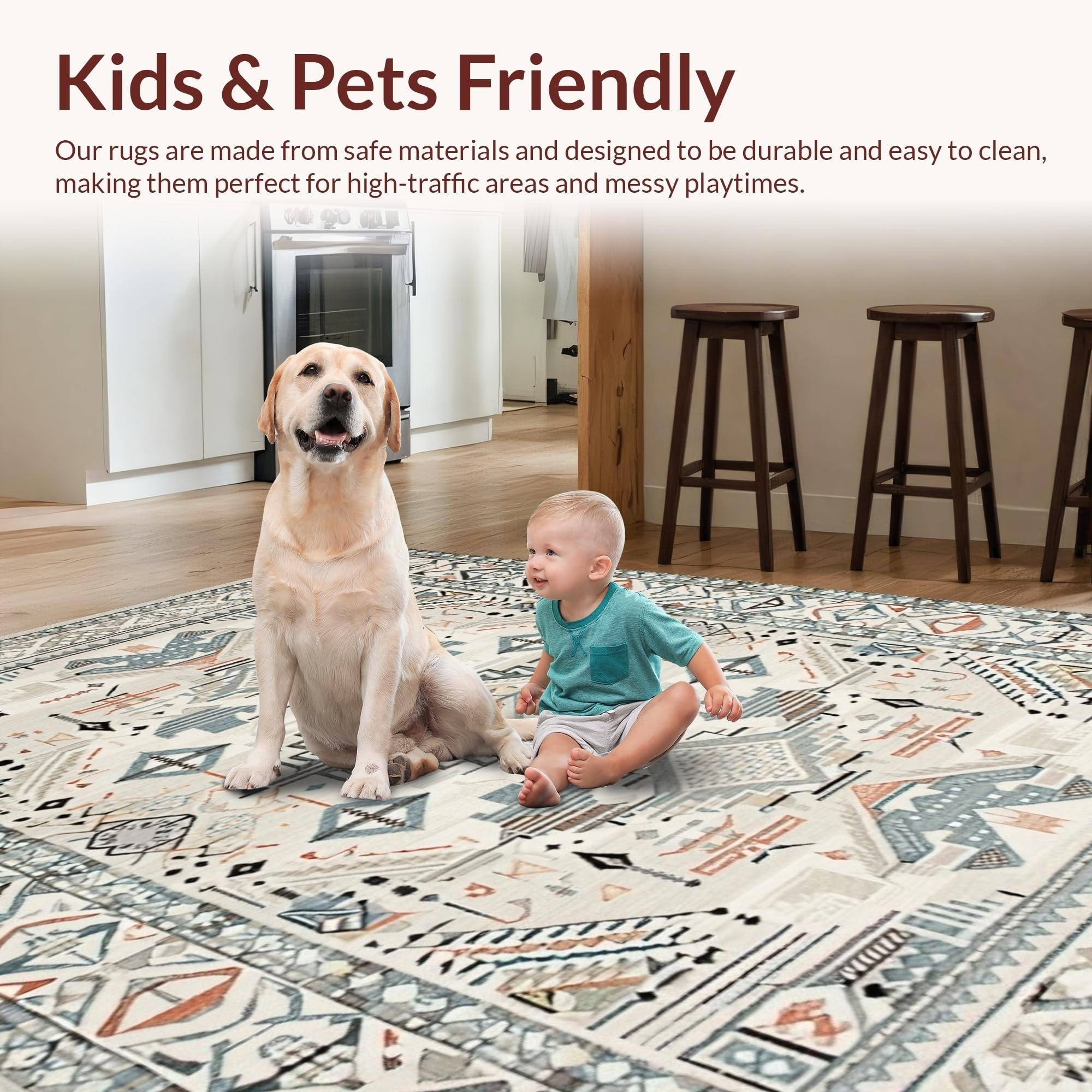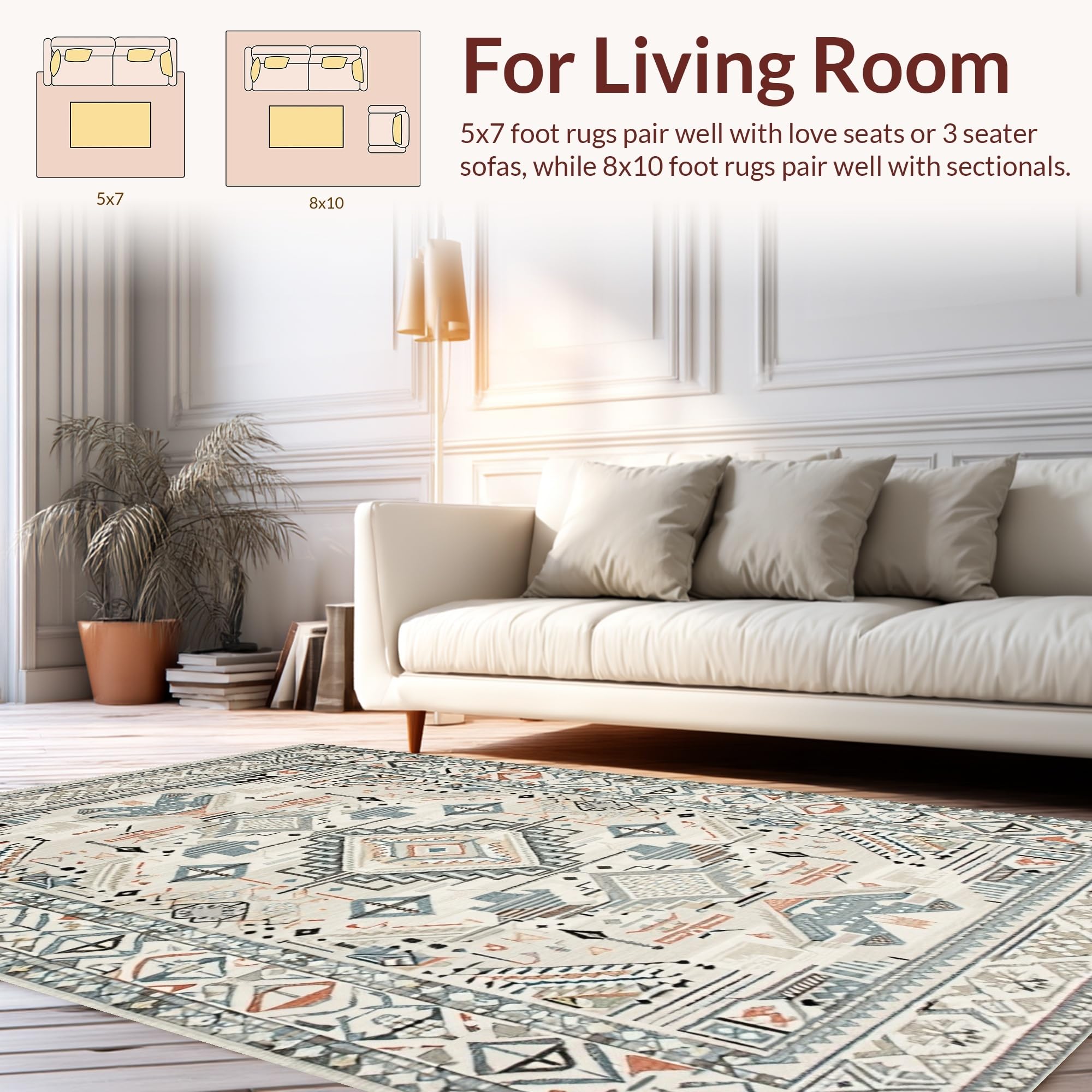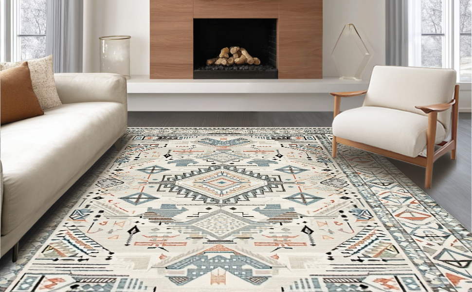 Ultra Soft Area Rug, Non Slip, Stain Resistant, Washable Area Rugs for Living Room, Bedroom, Contemporary Sky-Toned Symmetrical Design(Beige) Overview:
