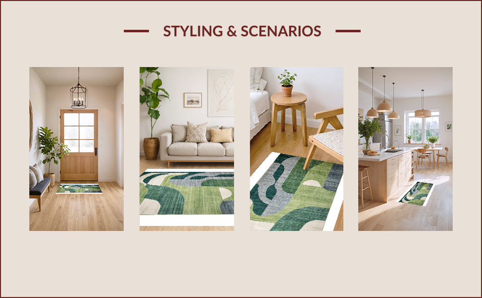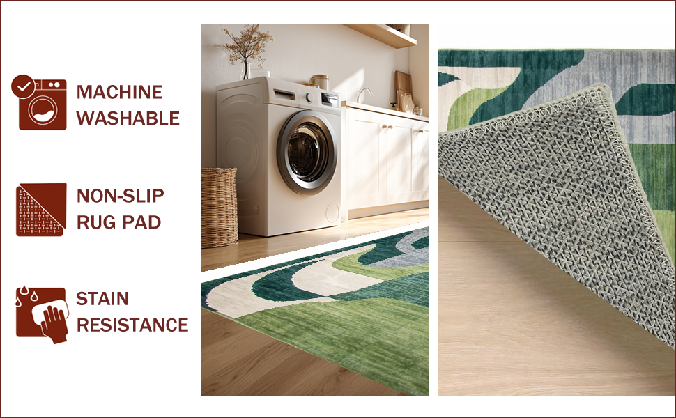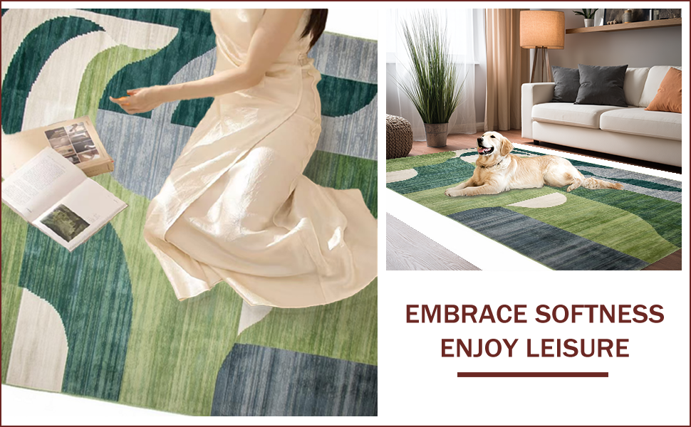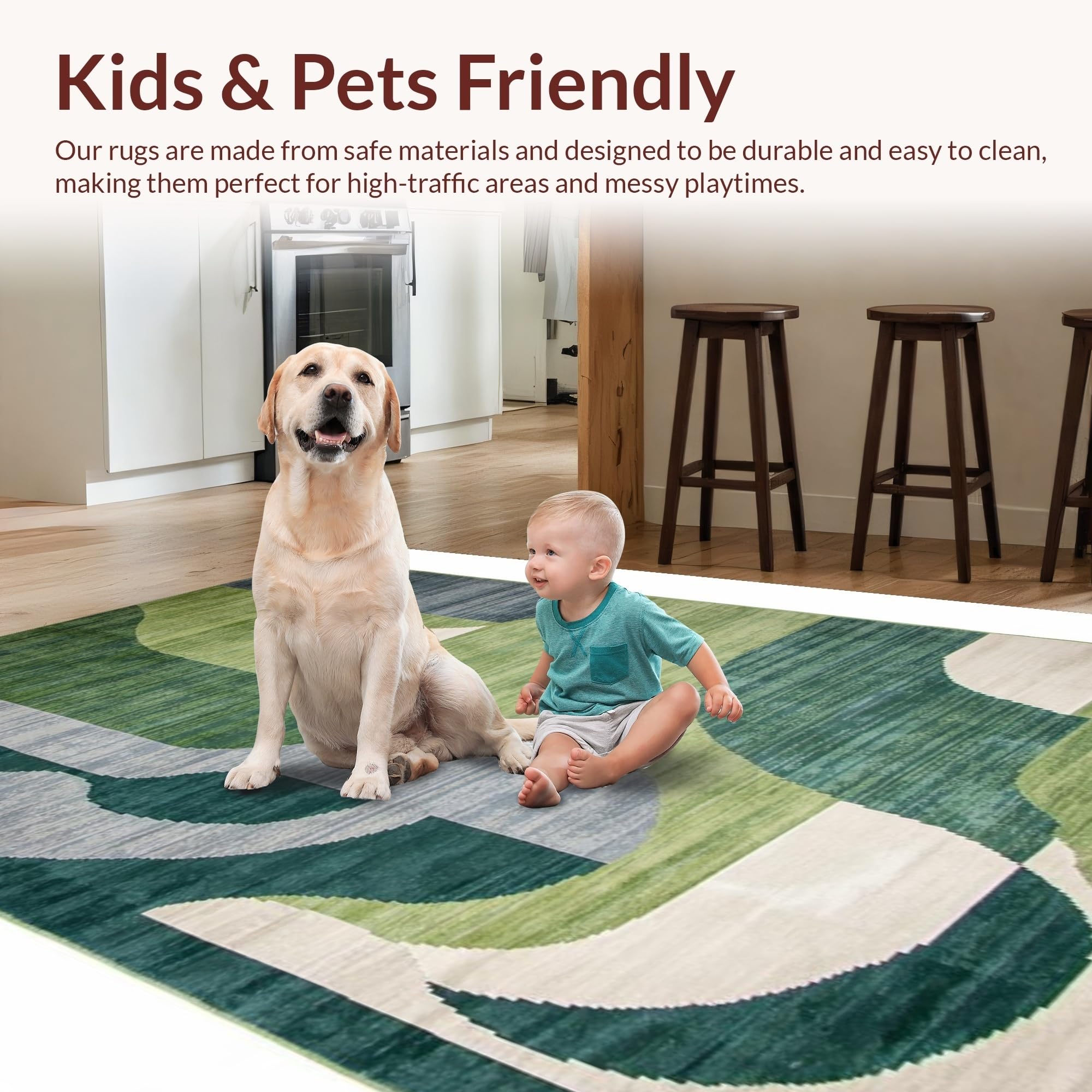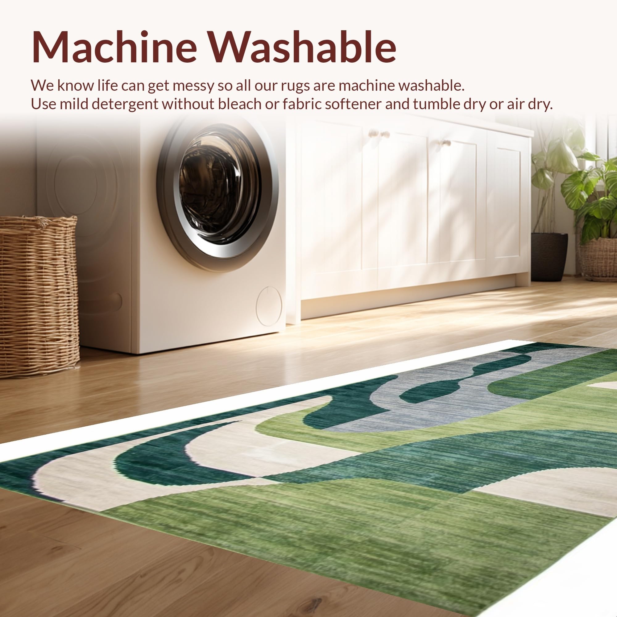 Ultra Soft Area Rug, Non Slip, Stain Resistant, Washable Area Rugs for Living Room, Bedroom, Contemporary Soft Abstract Aesthetic(Green) Overview: