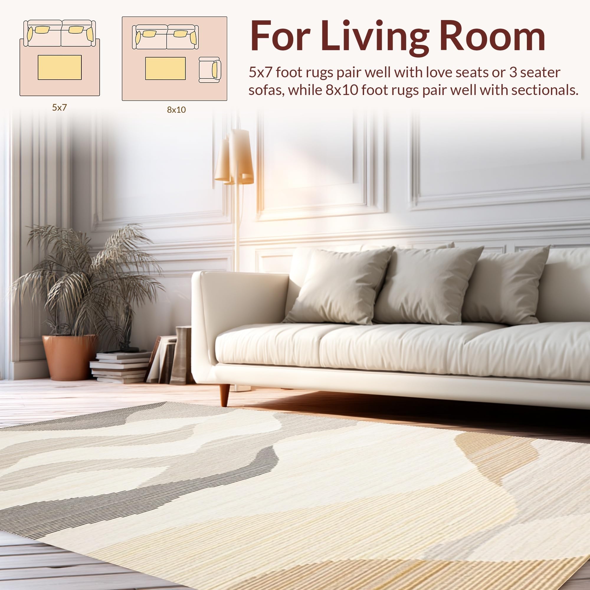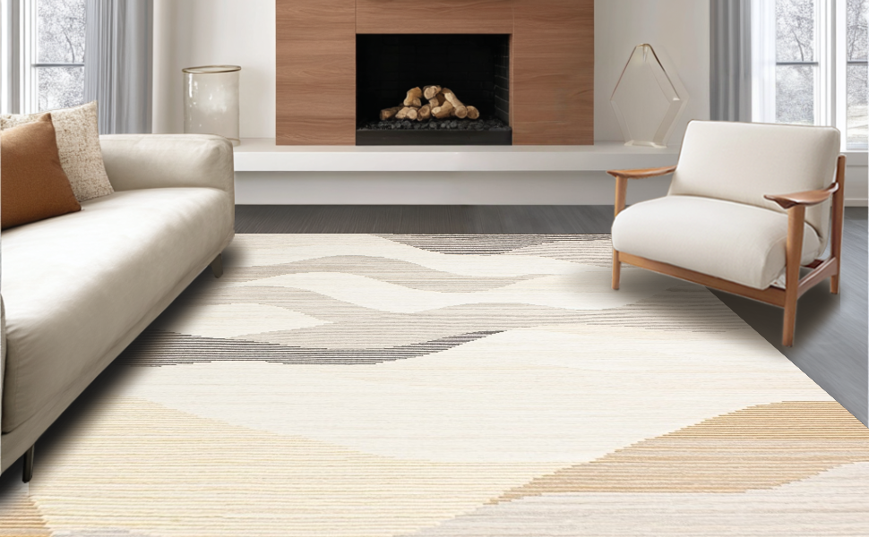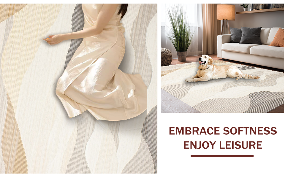 Ultra Soft Area Rug, Non Slip, Stain Resistant, Washable Area Rugs for Living Room, Bedroom, Contemporary Soft Abstract Textures(Beige) Overview: