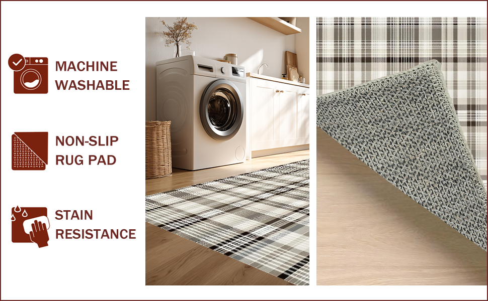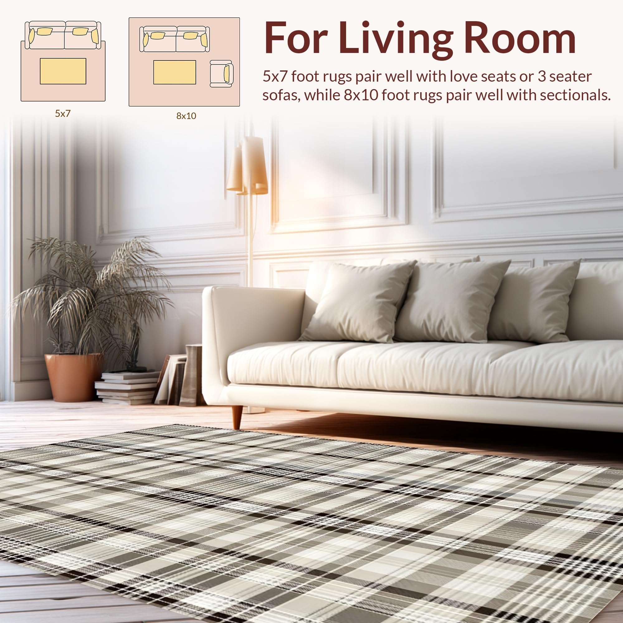Ultra Soft Area Rug, Non Slip, Stain Resistant, Washable Area Rugs for Living Room, Bedroom, Contemporary Soft Beige Checkers(Beige) Overview: