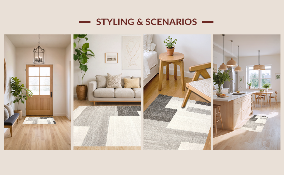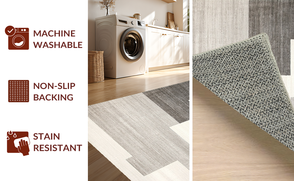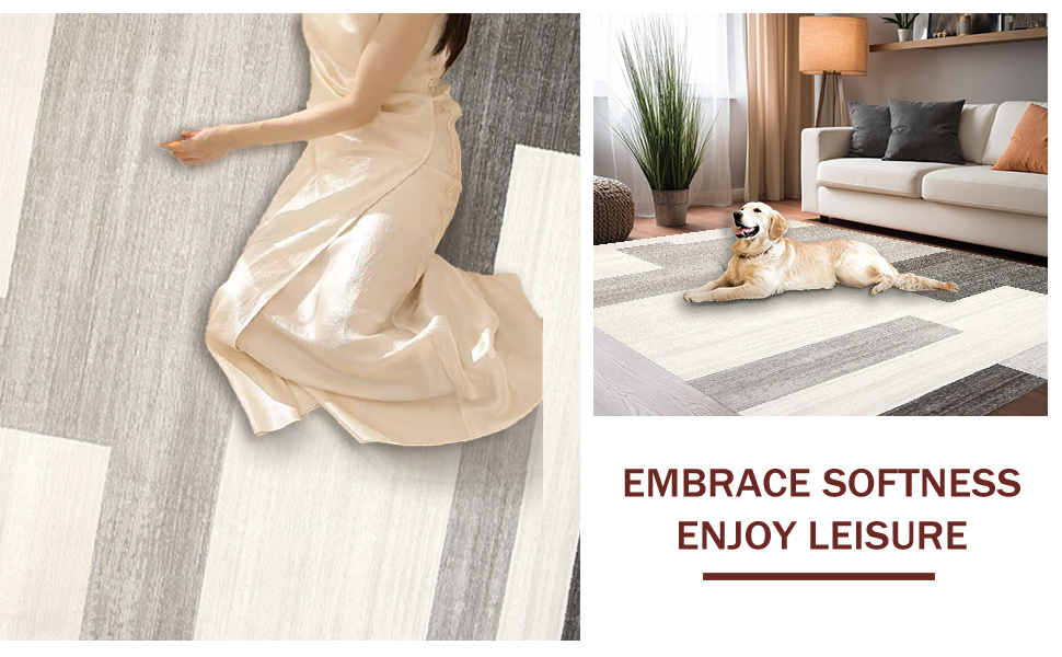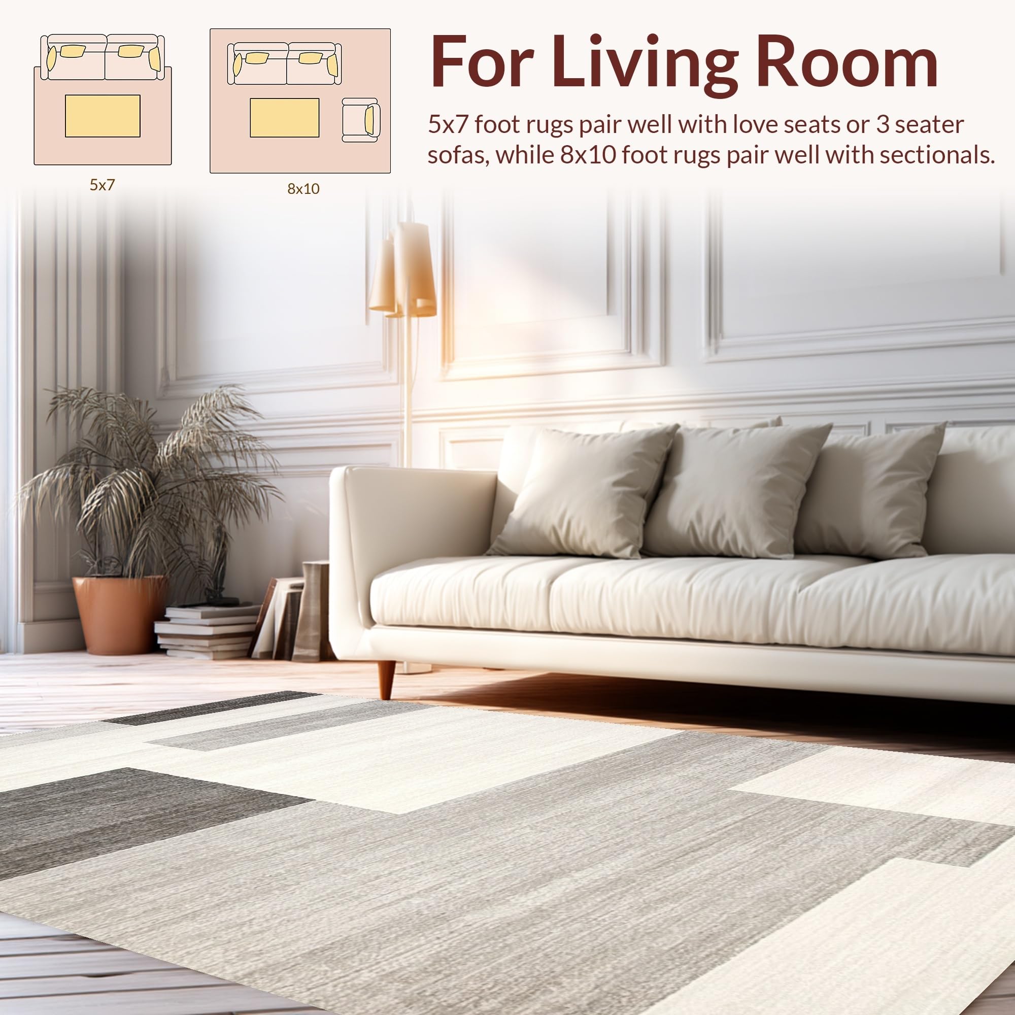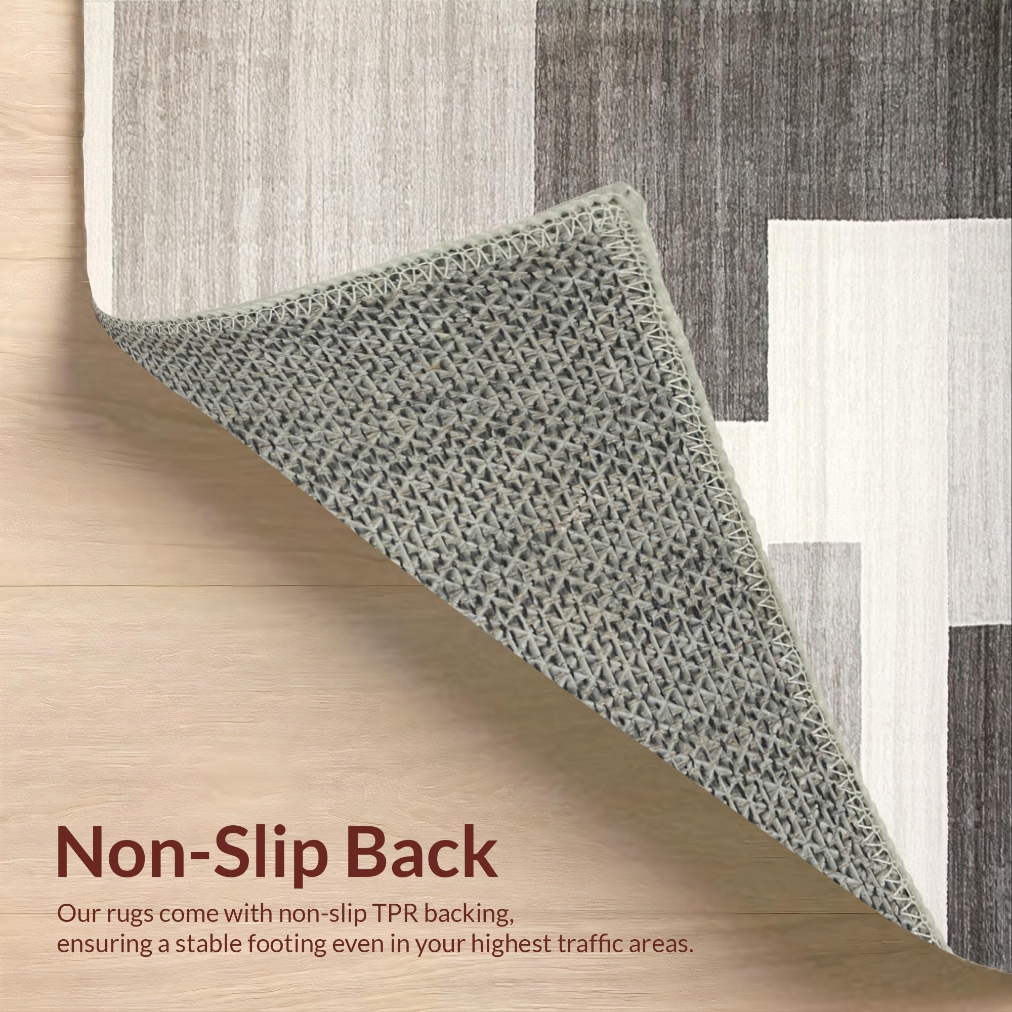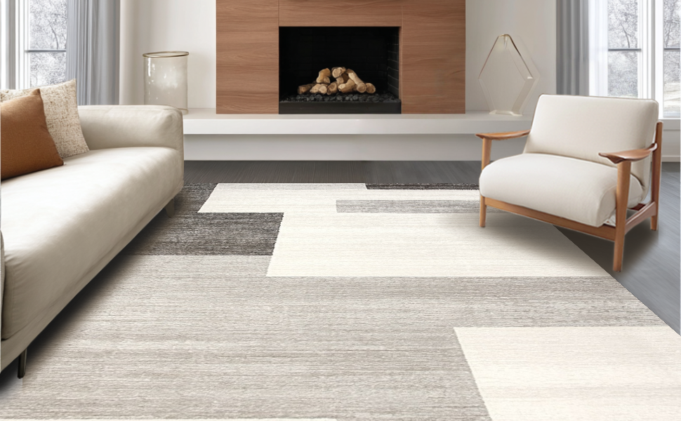 Ultra Soft Area Rug, Non Slip, Stain Resistant, Washable Area Rugs for Living Room, Bedroom, Contemporary Soft Beige Layers(Gray) Overview: