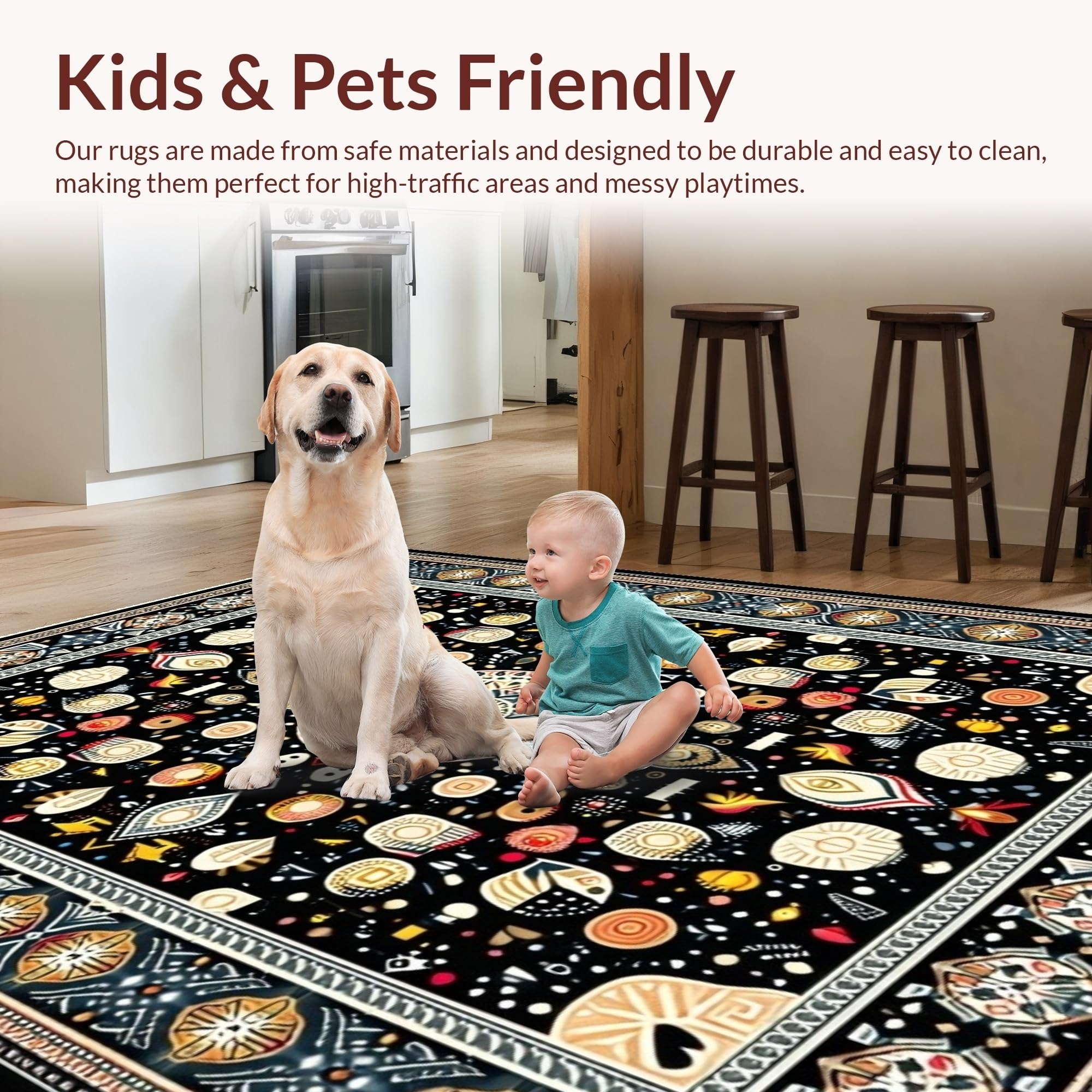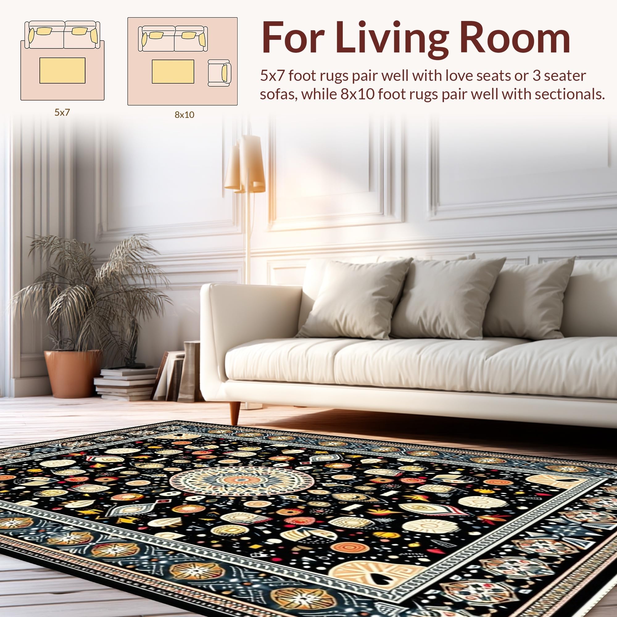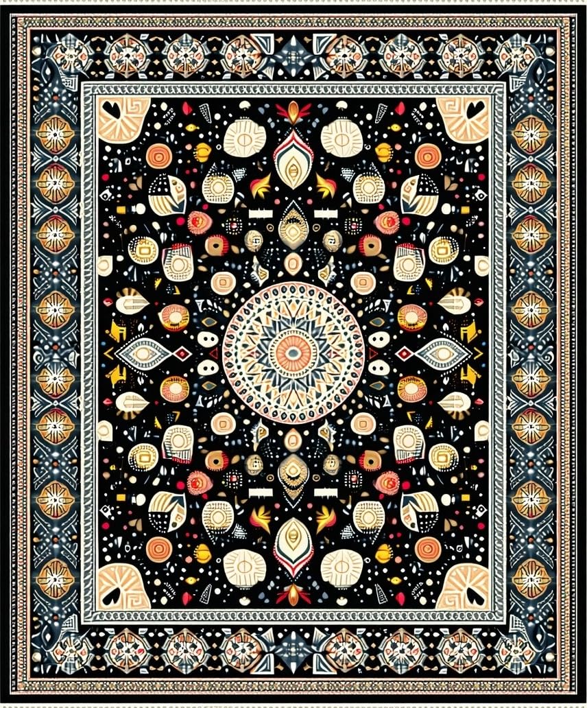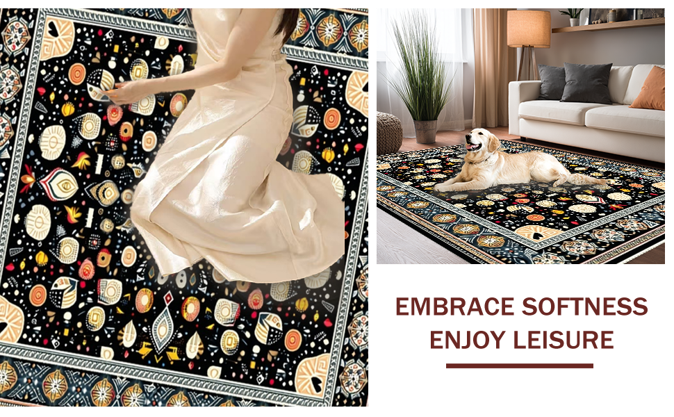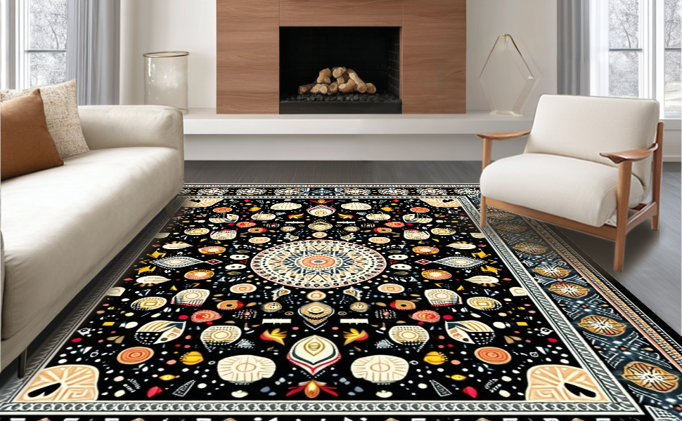 Ultra Soft Area Rug, Non Slip, Stain Resistant, Washable Area Rugs for Living Room, Bedroom, Contemporary Soft Color Palette Circle(Black) Overview: