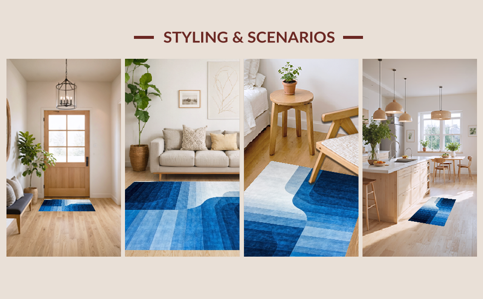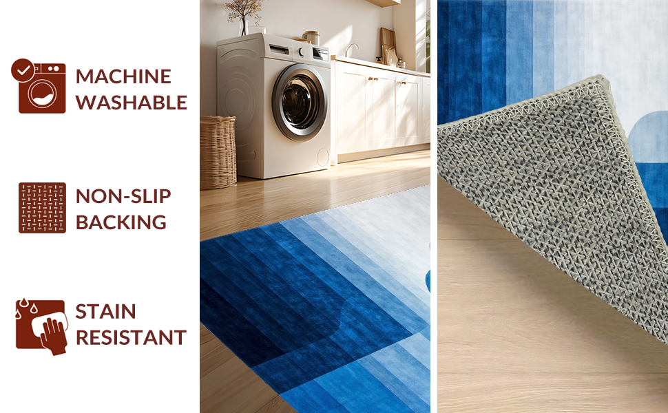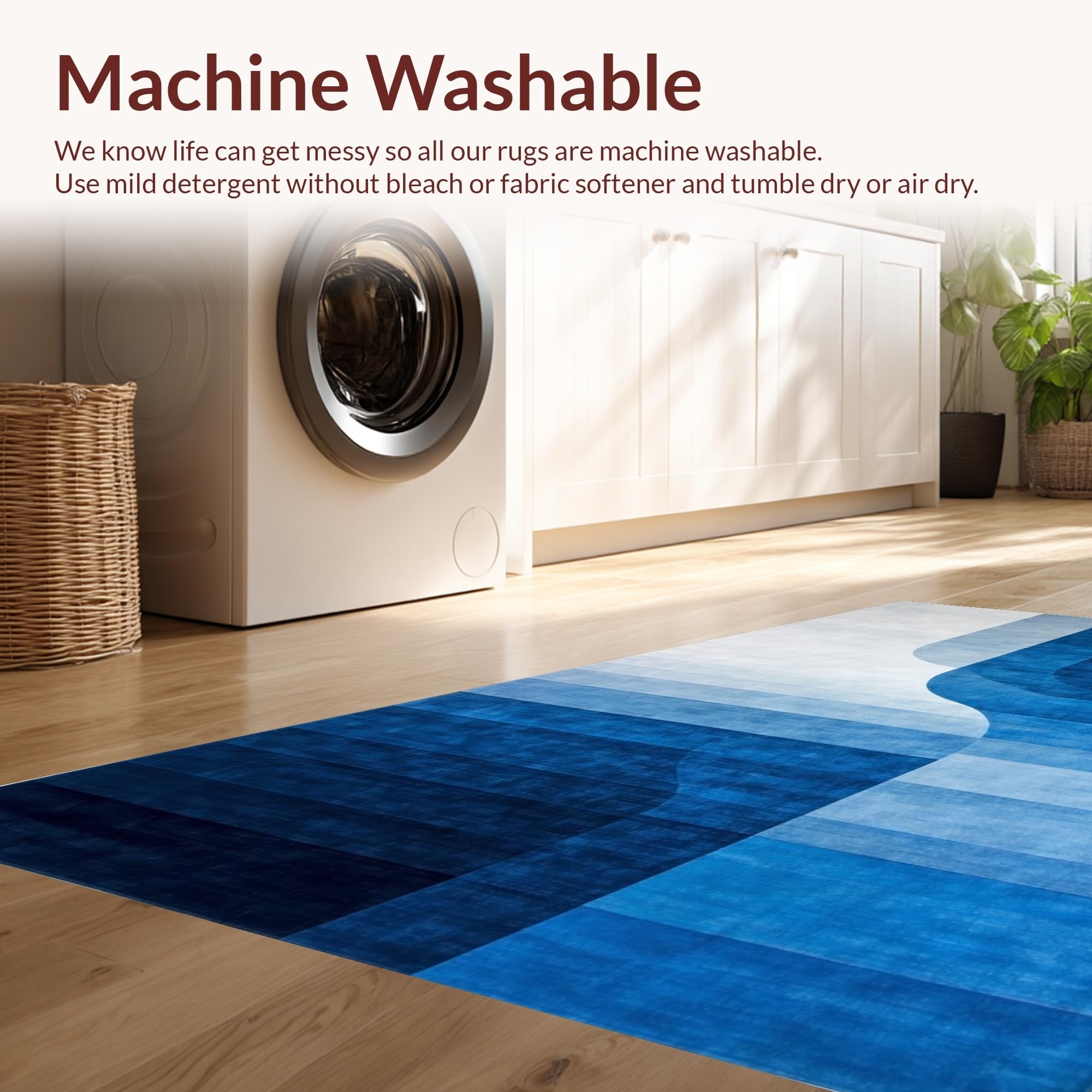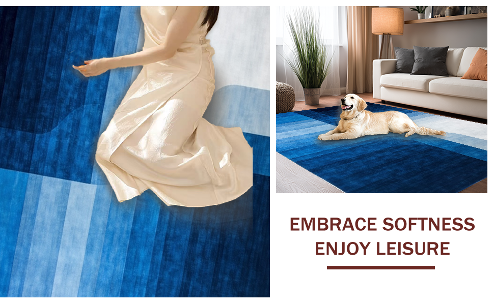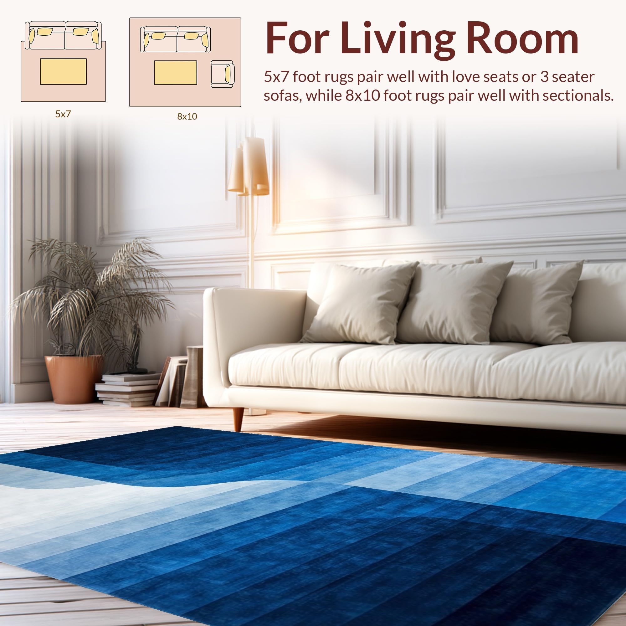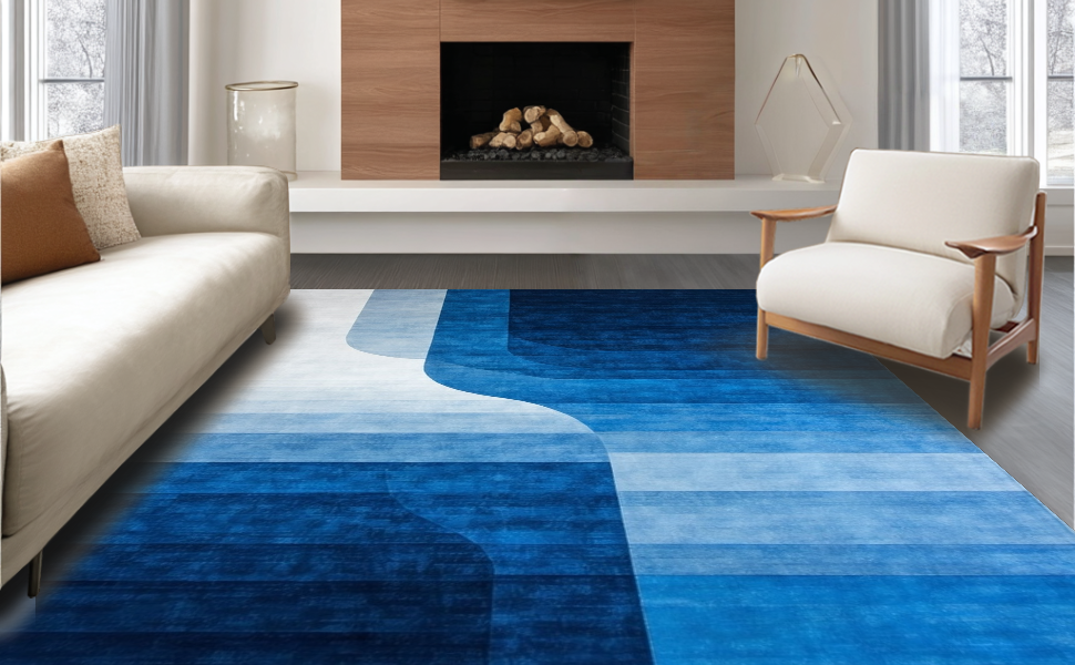 Ultra Soft Area Rug, Non Slip, Stain Resistant, Washable Area Rugs for Living Room, Bedroom, Contemporary Soft Gradient Aesthetic(Blue) Overview: