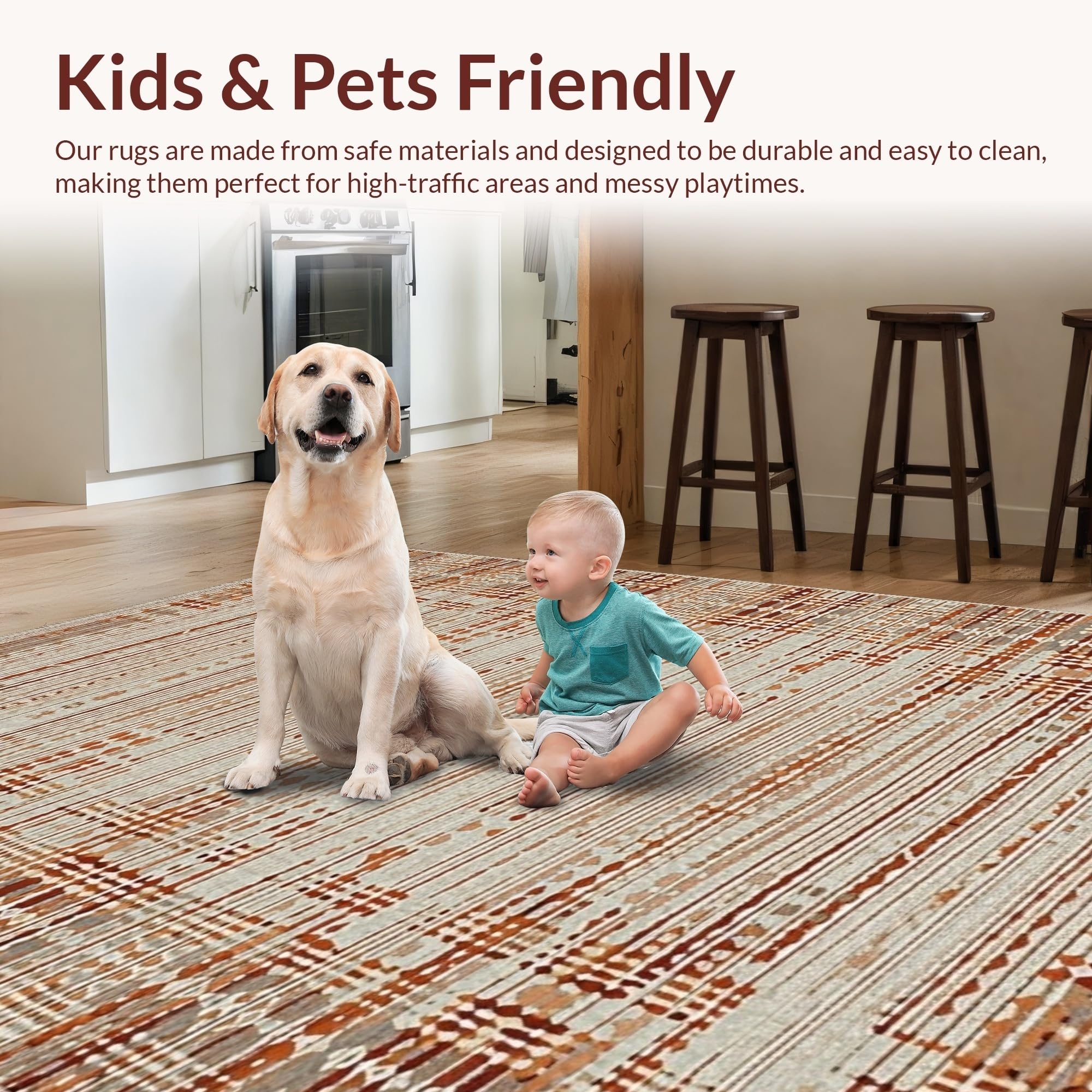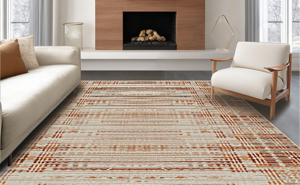 Ultra Soft Area Rug, Non Slip, Stain Resistant, Washable Area Rugs for Living Room, Bedroom, Contemporary Soft Hue Patterned Piece(Beige) Overview: