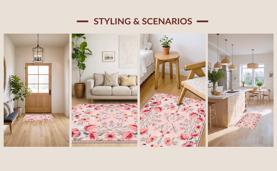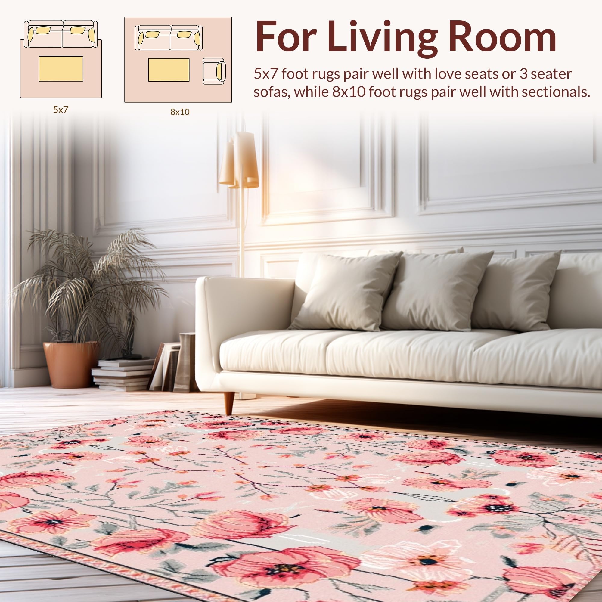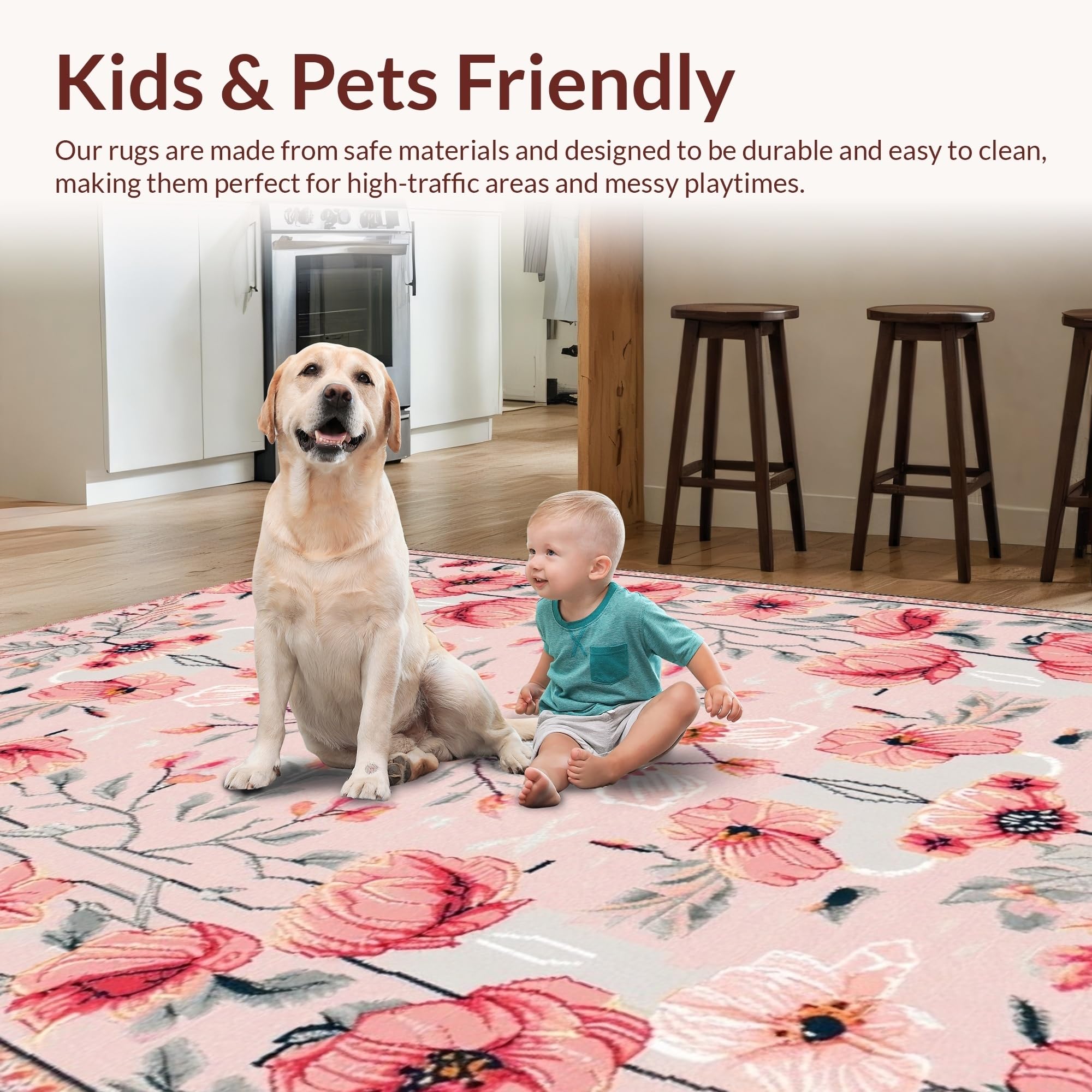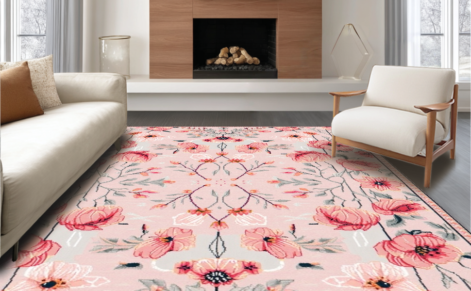 Ultra Soft Area Rug, Non Slip, Stain Resistant, Washable Area Rugs for Living Room, Bedroom, Contemporary Soft Petal Design(Pink) Overview: