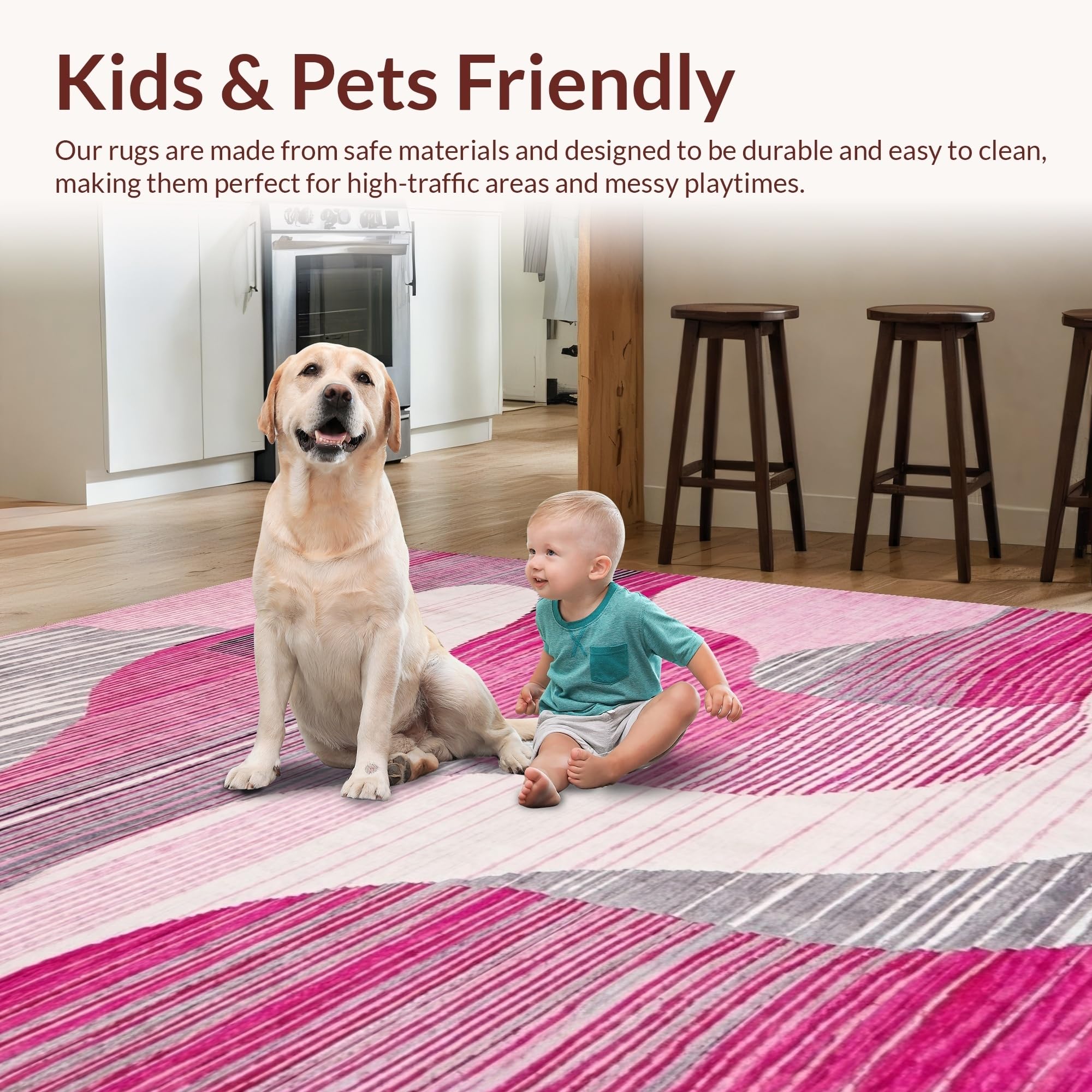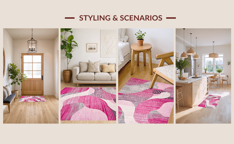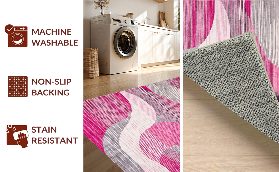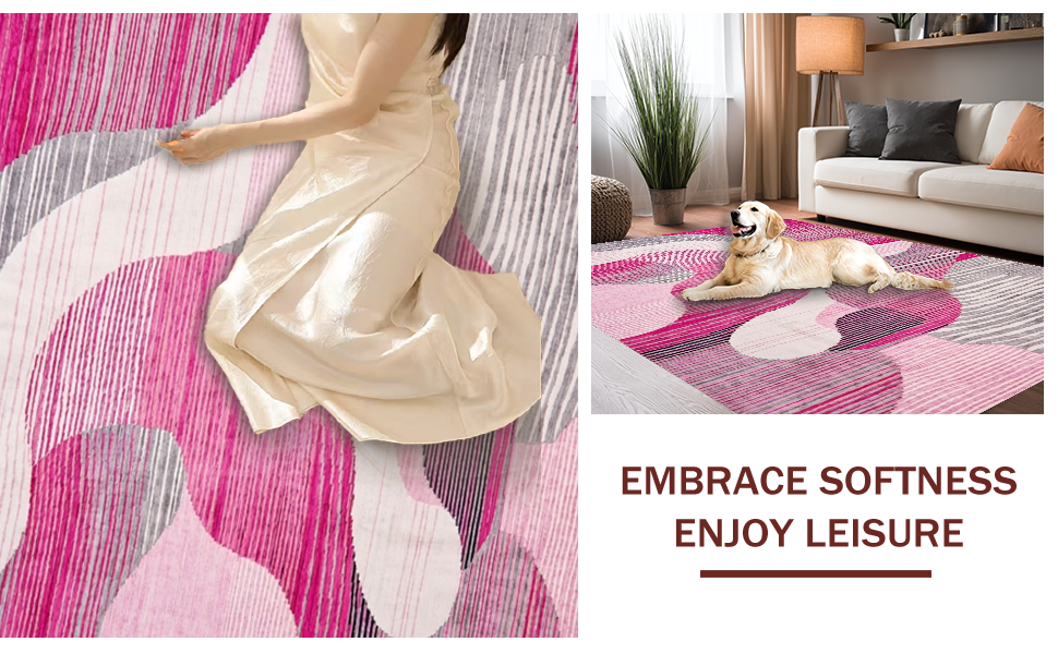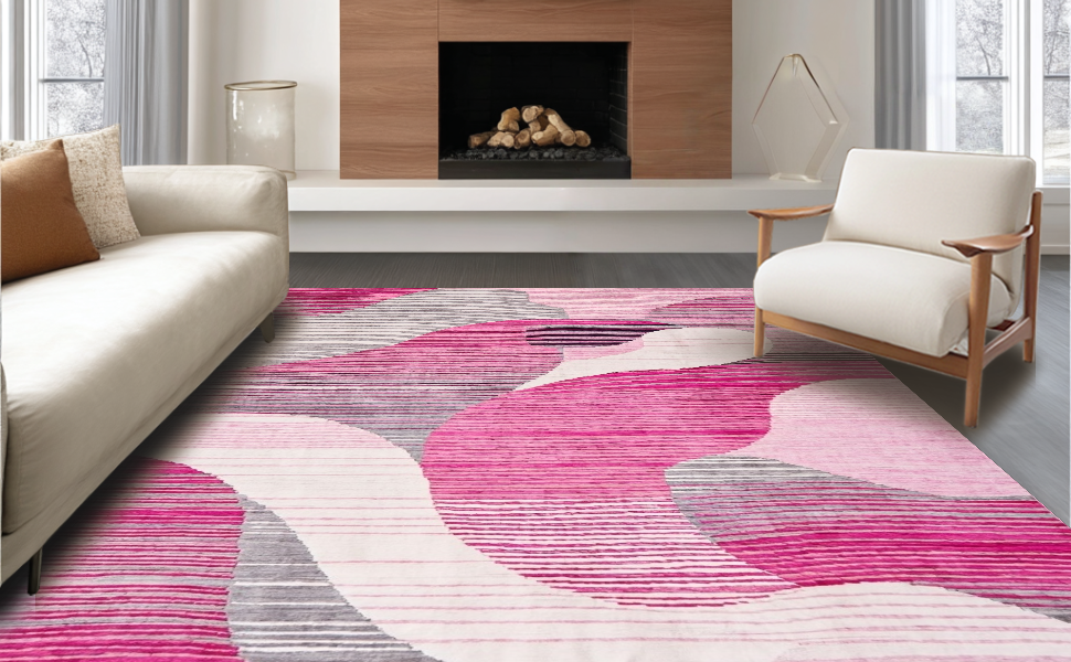 Ultra Soft Area Rug, Non Slip, Stain Resistant, Washable Area Rugs for Living Room, Bedroom, Contemporary Soft Pink Aesthetic(Pink) Overview: