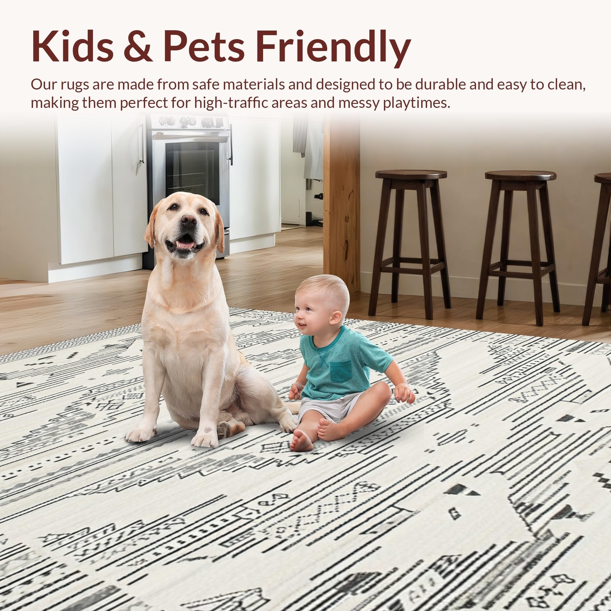 Ultra Soft Area Rug, Non Slip, Stain Resistant, Washable Area Rugs for Living Room, Bedroom, Contemporary Soft Shades with Diamond Accents(Black) Overview: