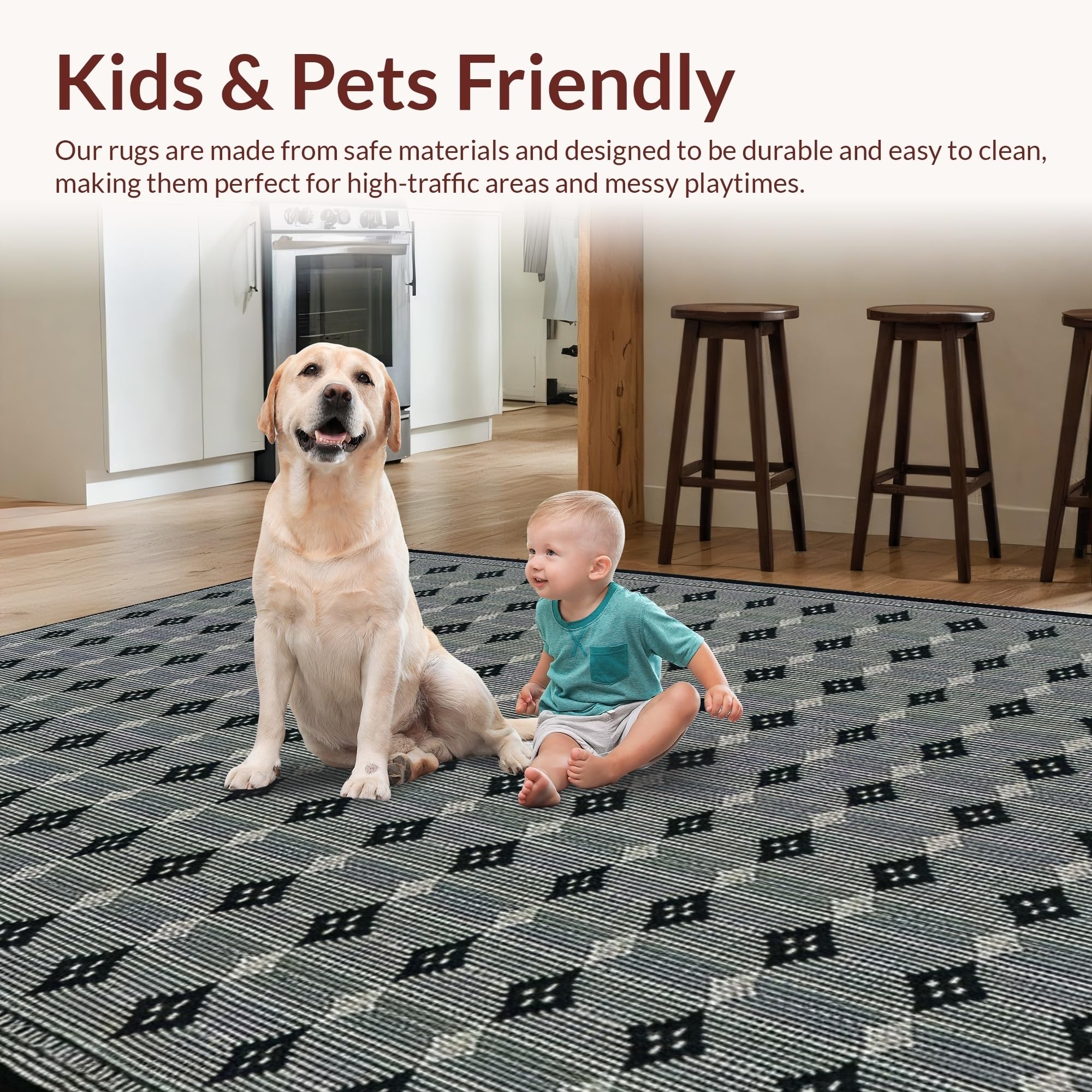 Ultra Soft Area Rug, Non Slip, Stain Resistant, Washable Area Rugs for Living Room, Bedroom, Contemporary Soft Textured Design(Black) Overview:
