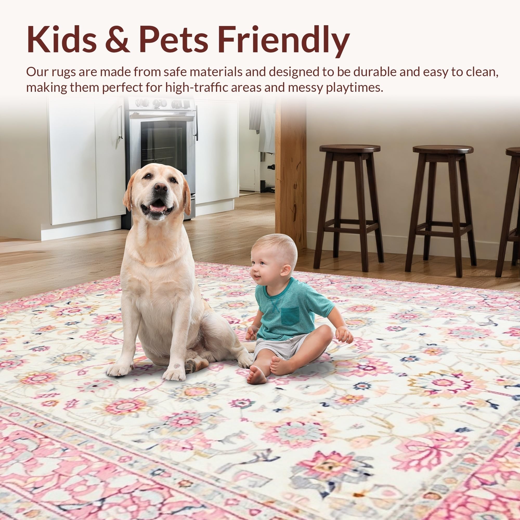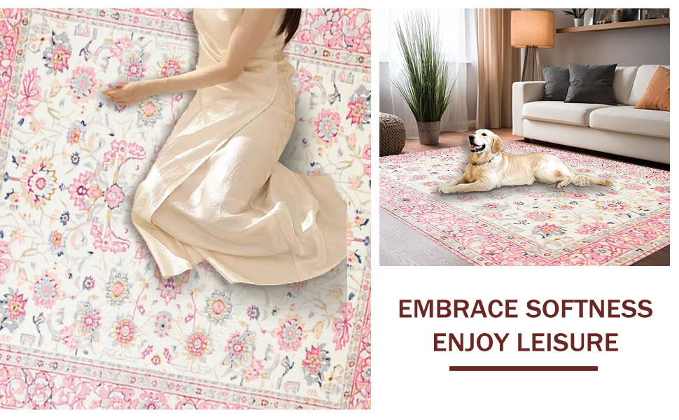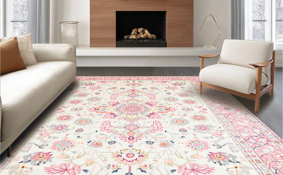 Ultra Soft Area Rug, Non Slip, Stain Resistant, Washable Area Rugs for Living Room, Bedroom, Contemporary Soft-Toned Blossom(Ivory) Overview: