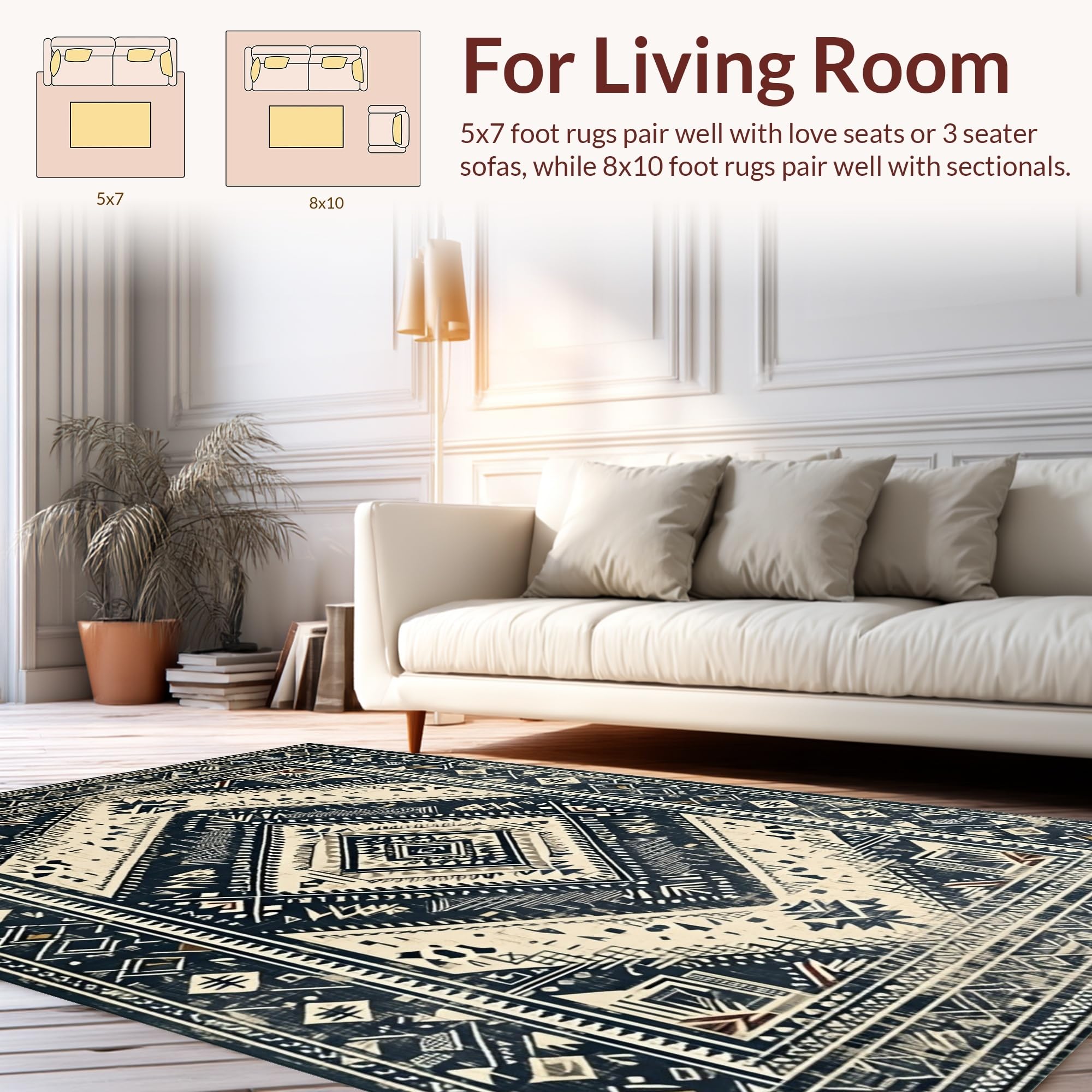 Ultra Soft Area Rug, Non Slip, Stain Resistant, Washable Area Rugs for Living Room, Bedroom, Contemporary Softened Linework(Beige) Overview: