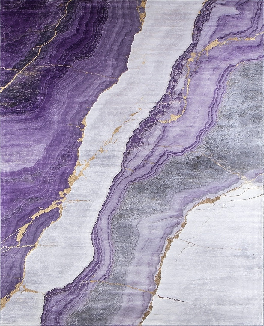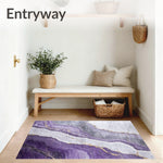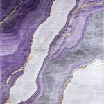 Flatwoven High Traffic Area Rug, Contemporary Stone Purple Veins on Grey Marble Inspired, Non Slip, Stain Resistant, Washable Area Rugs for Living Room, Bedroom (Purple) Overview: