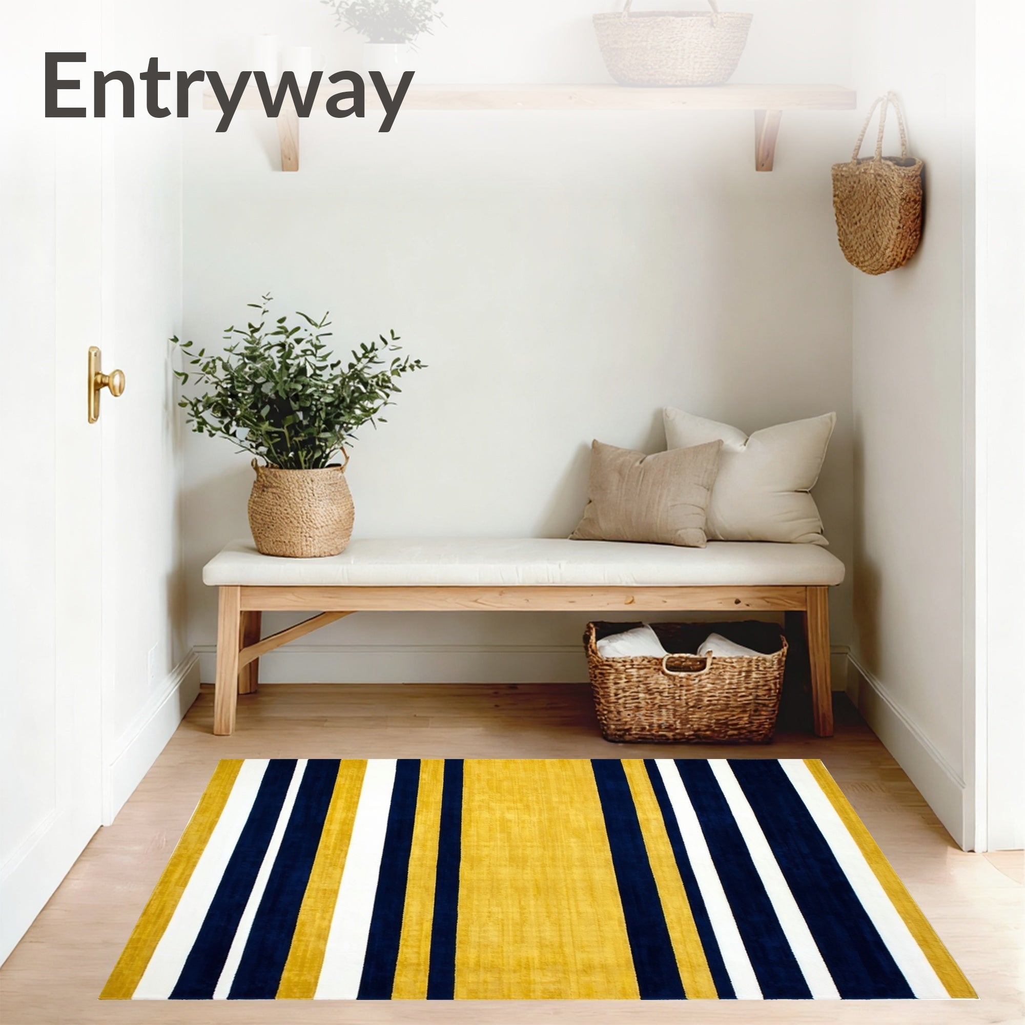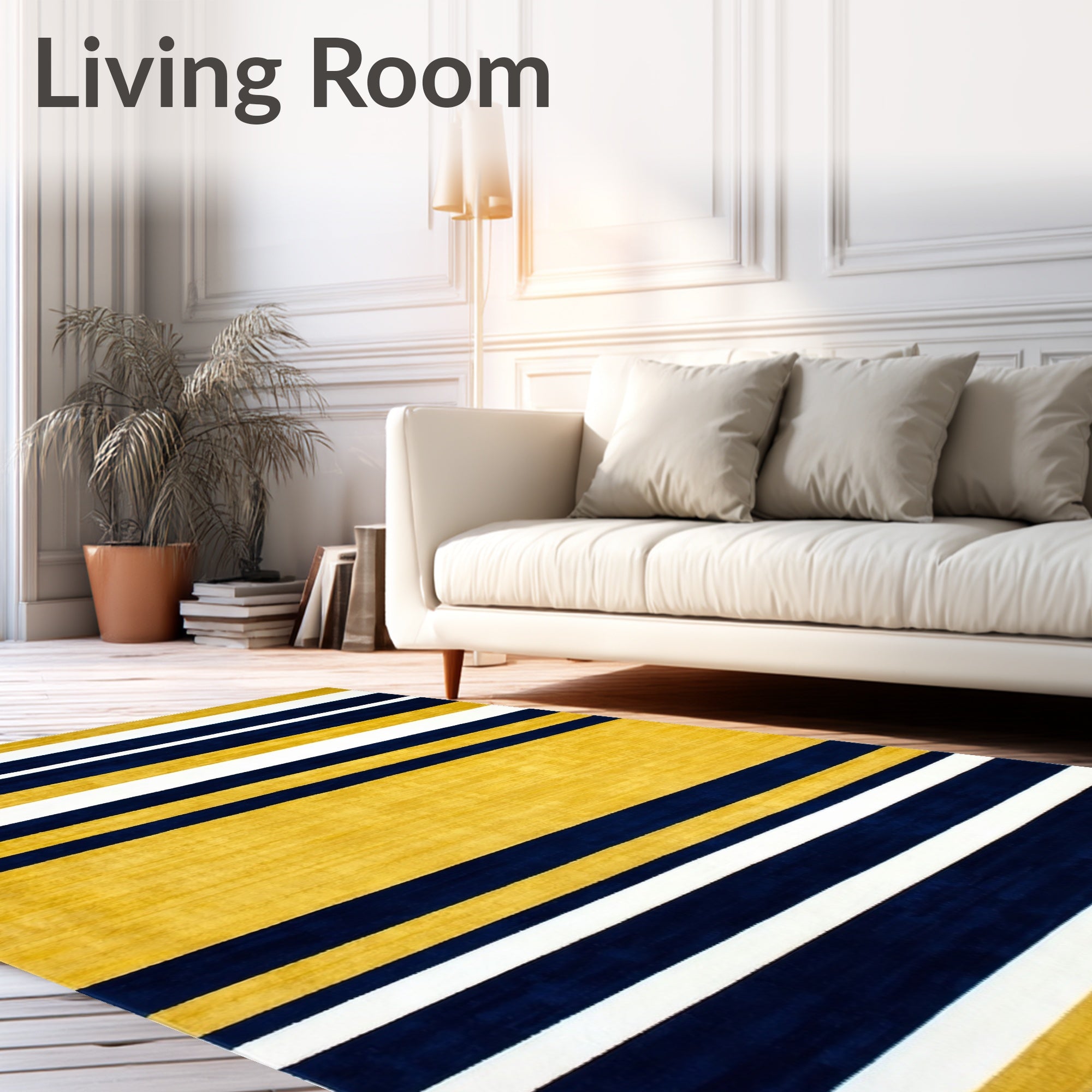 Flatwoven High Traffic Area Rug, Contemporary Striped with Bold Navy and Mustard Yellow Design, Non Slip, Stain Resistant, Washable Area Rugs for Living Room, Bedroom (Yellow) Overview: