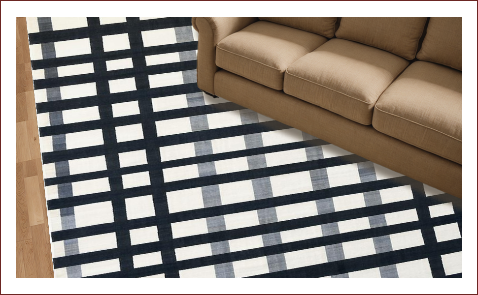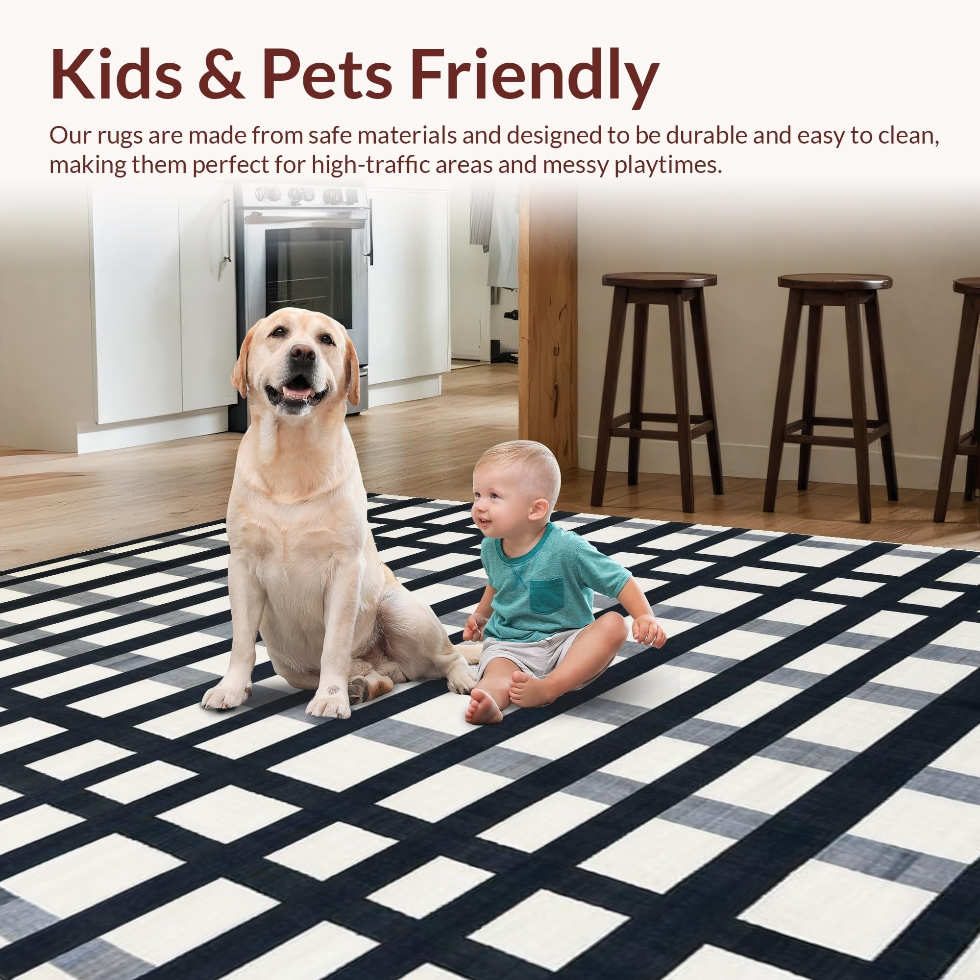Ultra Soft Area Rug, Non Slip, Stain Resistant, Washable Area Rugs for Living Room, Bedroom, Contemporary Striped Black and White Theme(Black) Overview: